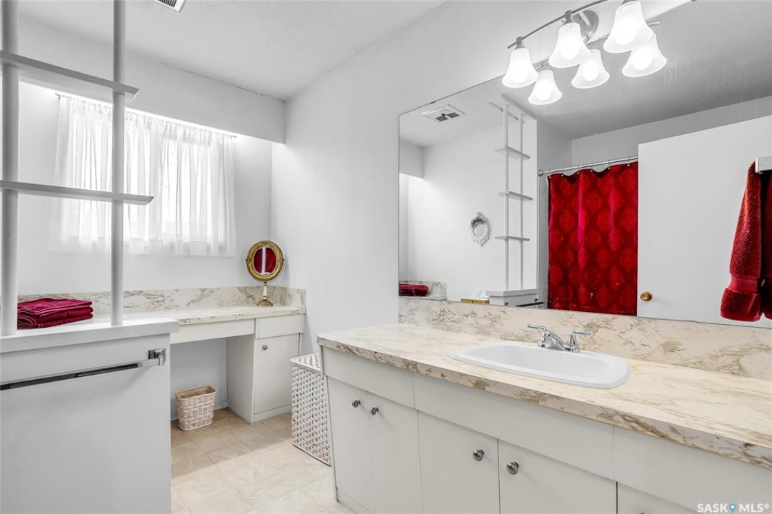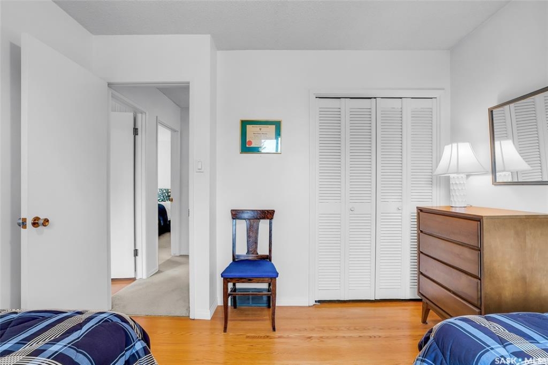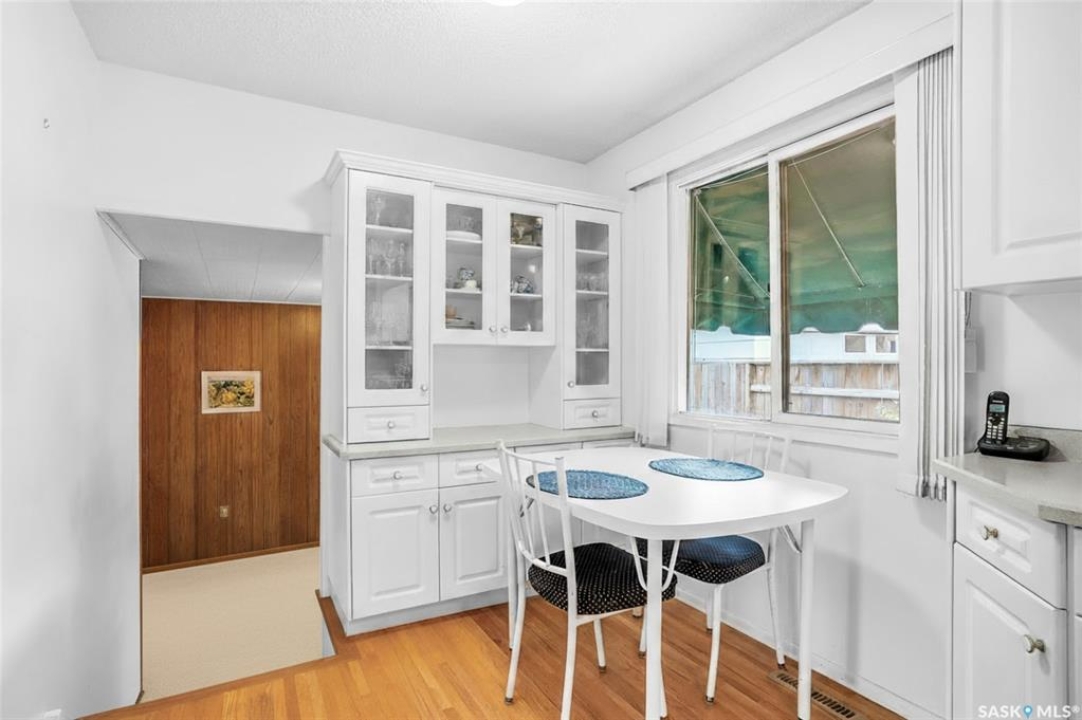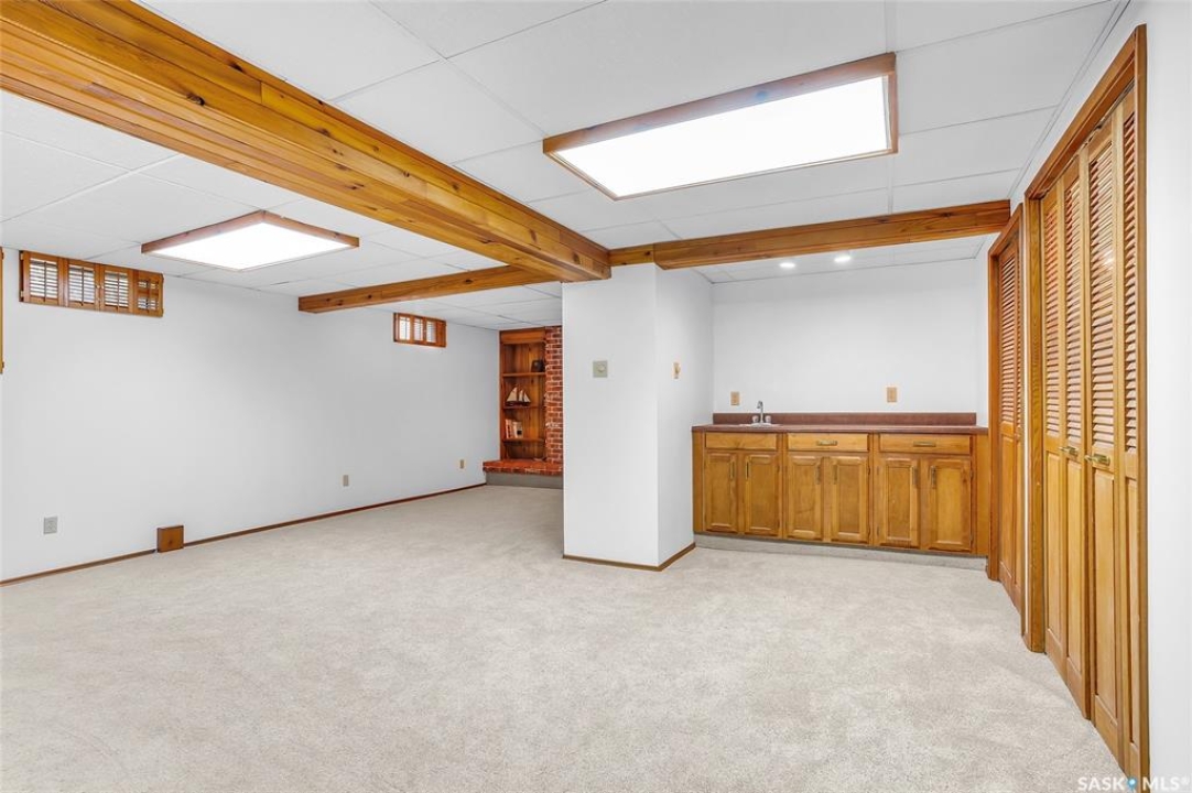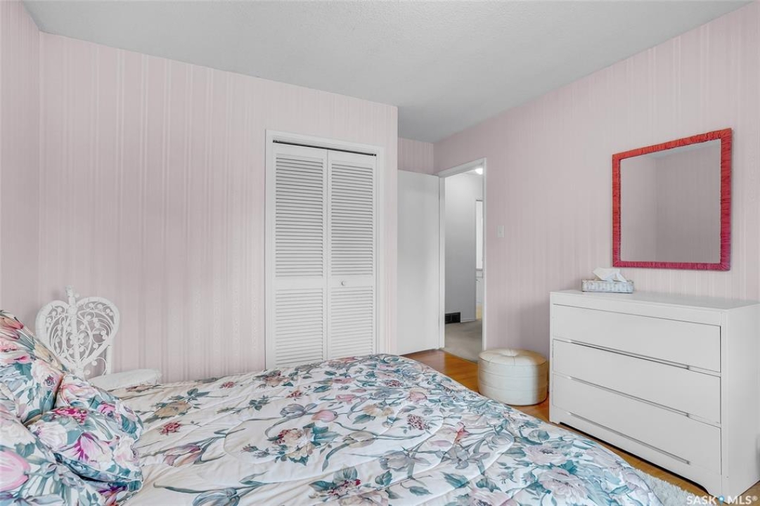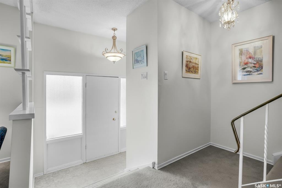 Discover your next home in River Heights, one of Saskatoon's most desirable neighbourhoods. Perfectly set along the Meewasin Valley and South Saskatchewan River. This unique custom-built 4-level split offers over 1,800 sq. ft. of living space with 3 bedrooms and 4 bathrooms. Step into a bright, spacious living room featuring picture windows and a wood-burning, raised-hearth fireplace. Adjacent is the dining room—perfect for large family gatherings—which flows into a kitchen with hardwood floors, eating area, and built-in china cabinet. Just a few steps down, you'll find a cozy den filled with natural light front to back, ideal for reading, watching sports, a home office, or study. This ground level also includes a laundry room with backyard access, 2-pc bathroom, and direct entry to the attached garage. Upstairs, the second level features 3 bright, spacious bedrooms—two with hardwood floors. The primary bedroom includes a convenient 2-pc ensuite. The basement offers another 500 sq. ft. of living space, including a fully finished family room with fresh paint, new carpet, and a feature brick wall with electric fireplace and built-in bookshelves. A wet bar with mini-fridge makes this space perfect for entertaining.Outside, enjoy the newly painted exterior 2025, a private fenced backyard with patio and mature trees on a prime corner lot. The single attached garage provides convenience, with room to add a future double or even triple garage. Front-yard underground sprinklers ensure easy maintenance. Families love River Heights for its scenic river views and easy access to public and Catholic elementary schools, two nearby high schools—plus dog parks, bike paths, and endless walking trails just steps away. Possession: anytime On or after November 19th,2025. Offers presented: Monday, October 6 at 5:00 pm