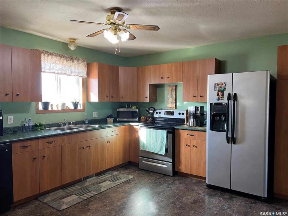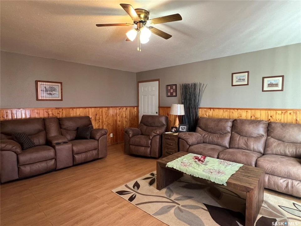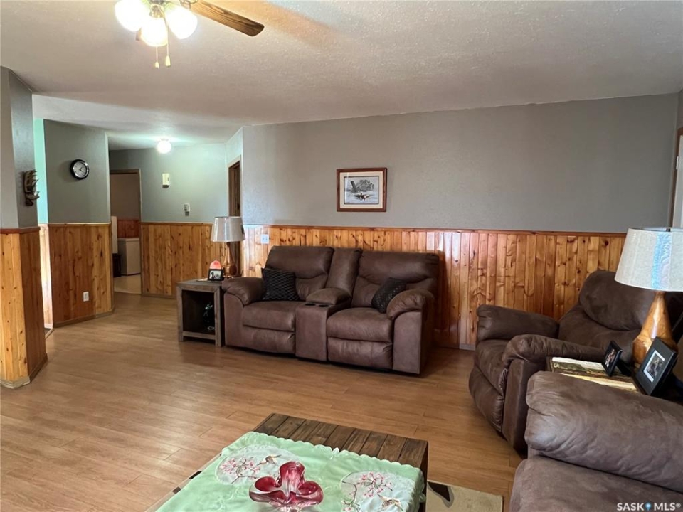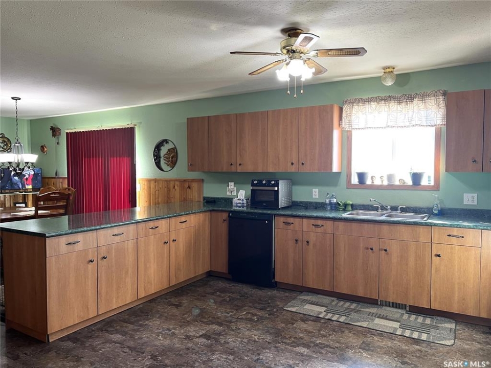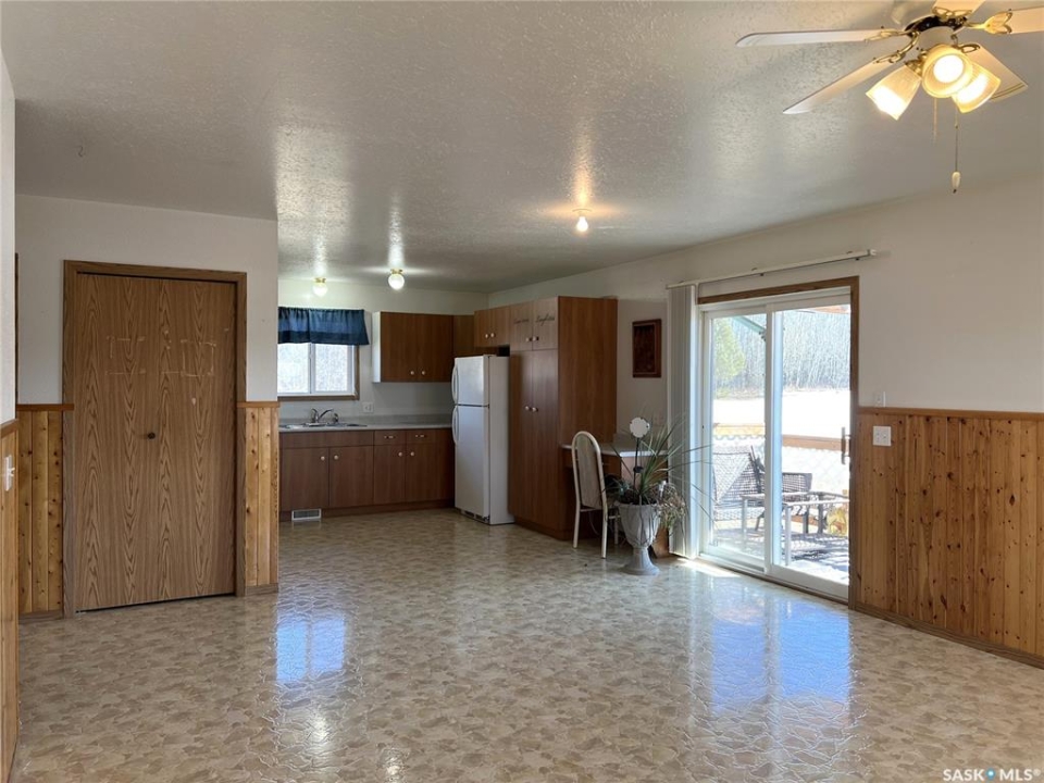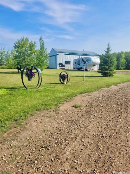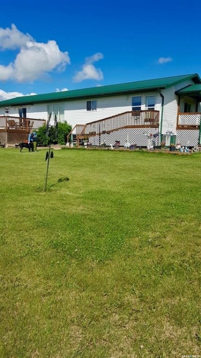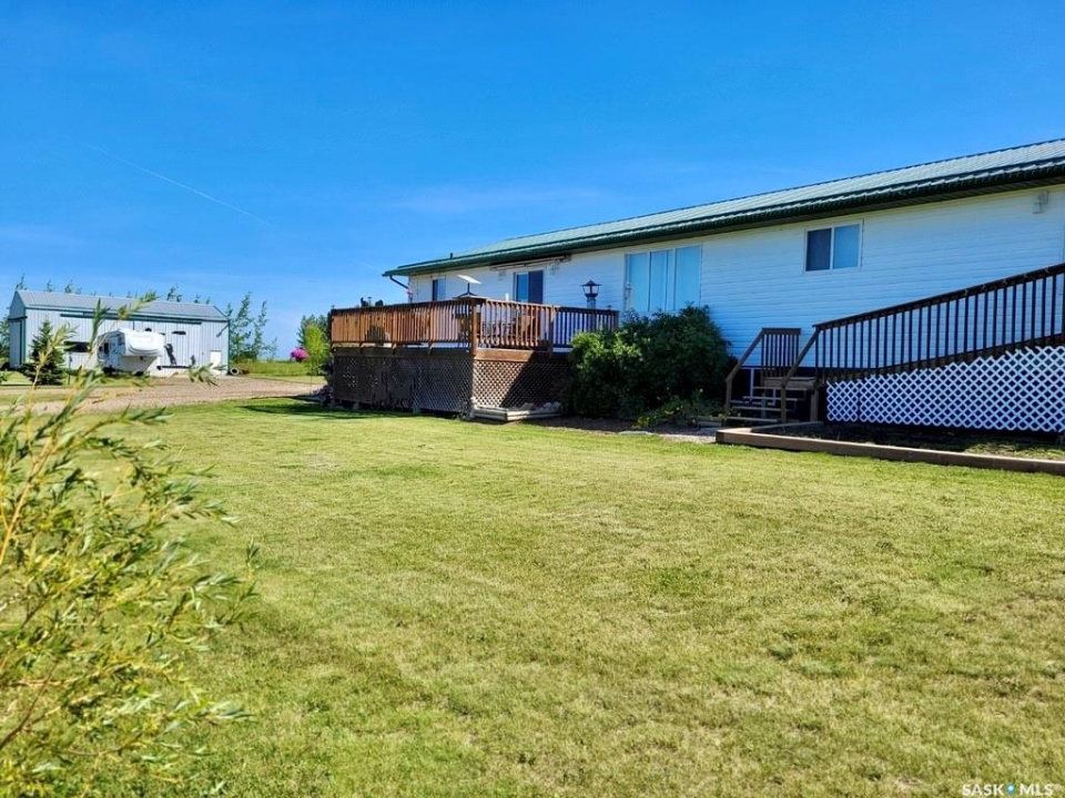 This 2006 bungalow is 2,220 sq ft with a 30'x50' shop on 10 acres in the RM of Loon Lake and would make an excellent family home. Main level features large kitchen with lots of counter space, dining area with access to a west facing deck, living room, primary bedroom with 4pc ensuite, 2nd bedroom, 2pc bathroom/laundry, mudroom plus a one bedroom fully self-contained nanny suite on main level. Suite has its own laundry and south facing covered deck. The basement hosts a large family room, 2 more bedrooms, 4pc bathroom, utility room, cold storage room, large storage room and another small storage room. You also have access to the back yard from the basement. New propane furnace in 2015 and basement has hot water infloor heat. New water treatment system in 2021, pressure tank and septic tank pump 2022. Metal walled/roofed shop built in 2008 has 16' walls set on concrete foundation, two sliding doors, 220 volt plug, loft/storage area and air compressor. Yard is beautifully landscaped with lots of shrubs, fruit trees, garden area and 2 sheds. Located 9km West of Makwa.