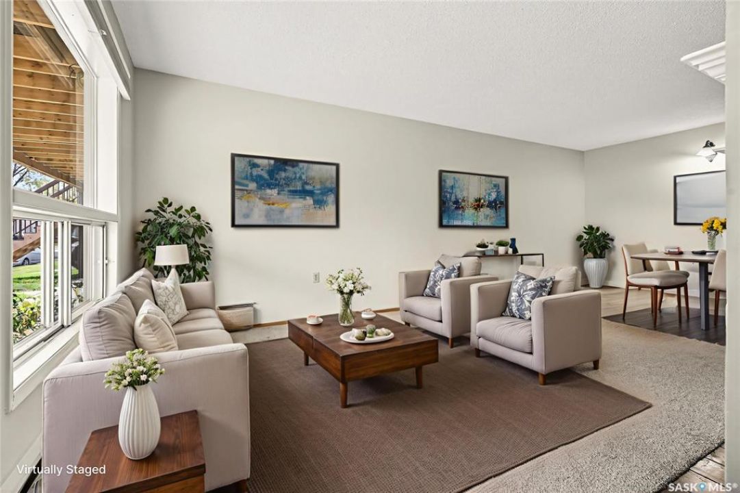 Move-In ready, Affordable Home Ownership or Amazing Revenue Opportunity! This ground level, sunny south facing 2 bed, 1 bath Condo would be a great little place to call home! It has just recently been freshly painted throughout, has new flooring throughout most of the unit and has had a bathroom rehab - including new toilet, tub and surround. Good sized living room features an accent wall with wood burning fireplace and nice mantle. Suite features galley style kitchen with updated cabinetry, and oversized walk-in pantry space. 2 large bedrooms, full bath with stylish barn door and in-suite laundry complete the space. Step outside with your morning coffee to enjoy your patio! Condo comes with 1 electrified parking stall and an outside storage space. Condo fees include heat, water, sewer, garbage, ground maintenance, snow removal, building insurance and reserve fund.