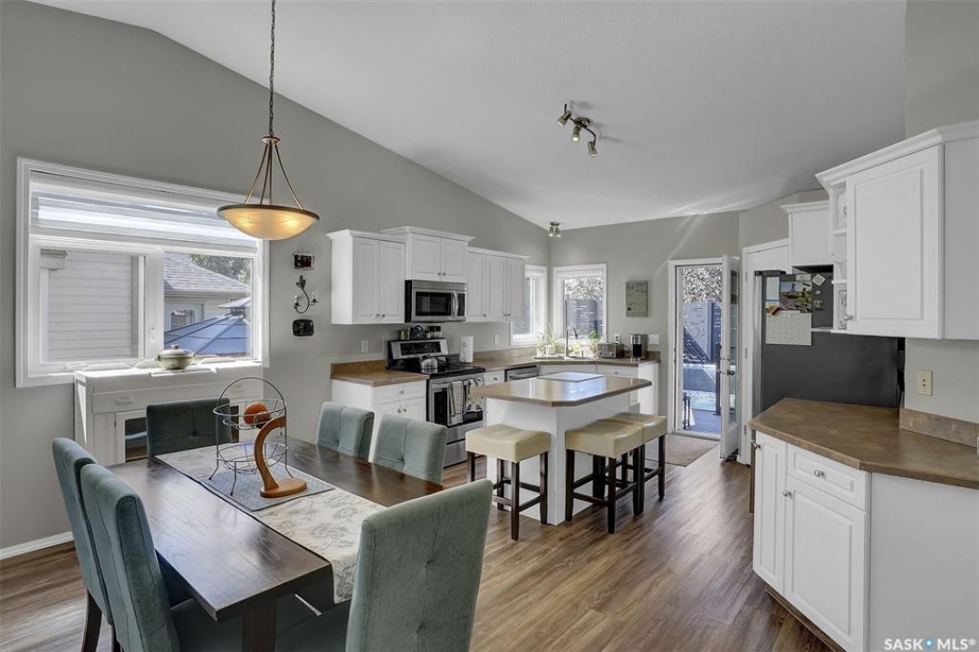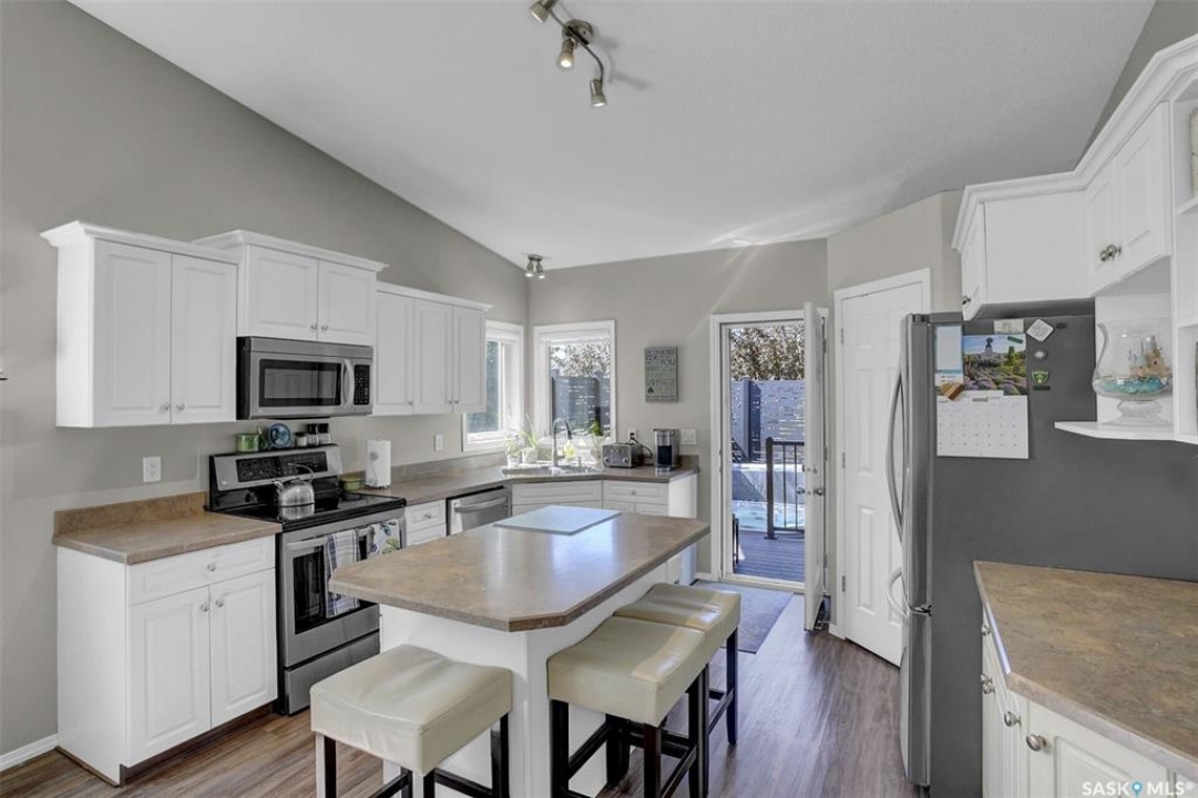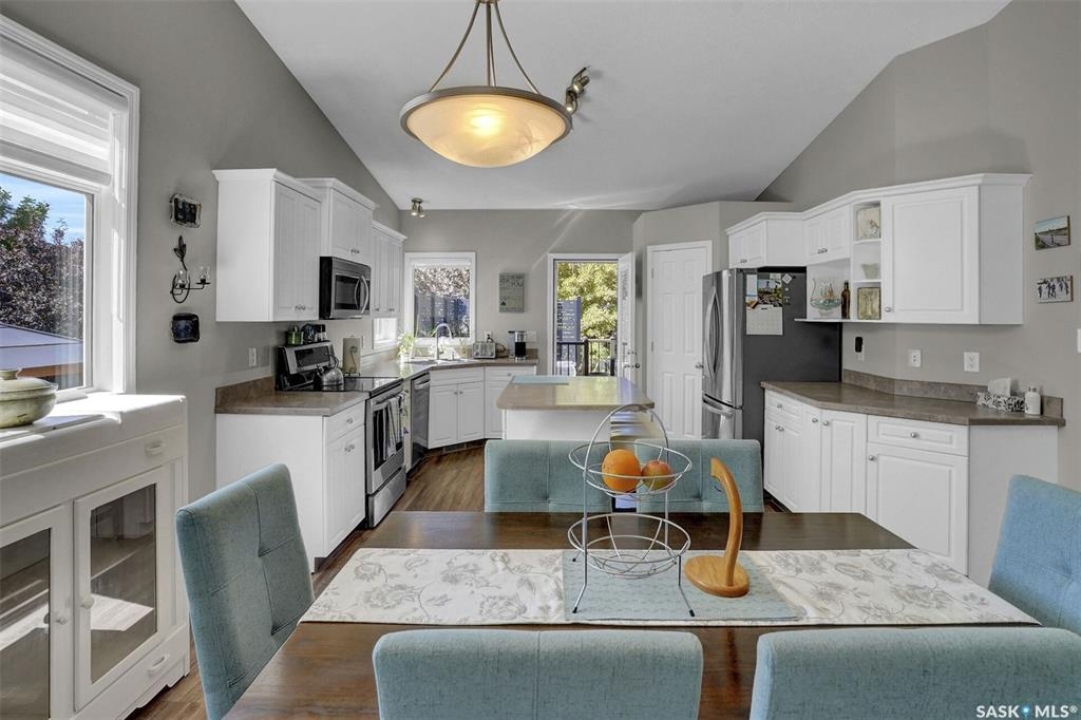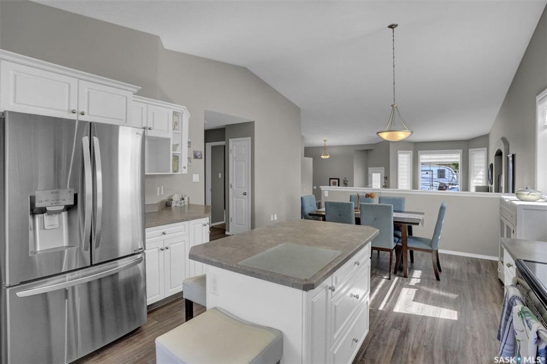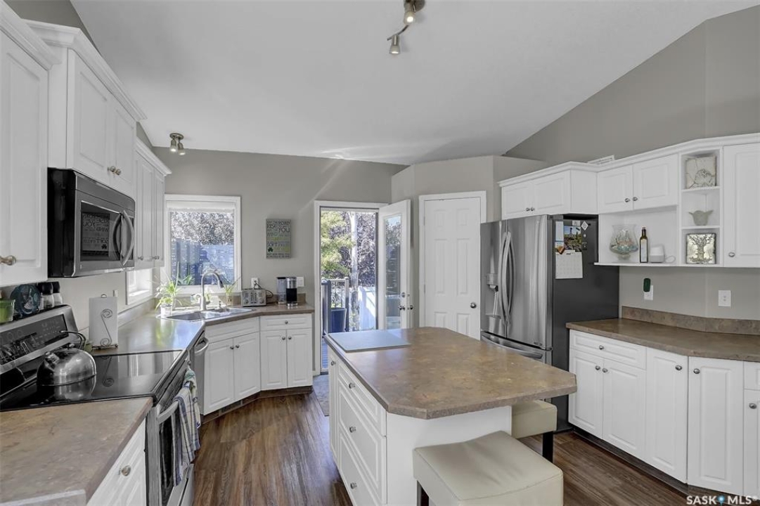 Welcome to this beautiful family home in the desirable neighborhood of Lakeridge. This well-maintained bungalow with 4 bedrooms and 3 bathrooms with a spacious 1238 sq ft open floor plan with vaulted ceilings creating an airy and inviting space. The fully finished basement with gas fireplace is great for family and movie nights. Recent updates include some basement rooms painted, vinyl fencing on 3 sides and 4th side stained in 2024, as well as new shingles in 2023, main floor painted and rust free hideaway privacy screen on deck in 2022, main floor luxury vinyl plank flooring to living, dining, kitchen and bathroom, new deck railing and custom drapes in main rooms up and down in 2021, all new stainless steel appliances in 2019, composite 2 tiered deck in 2017. There are also 2 kick plates part of the central vac system located in the dining/kitchen area and front landing, these flip open and suck up the debris from sweeping, so easy and convenient. The beautiful backyard so private and inviting with a hot tub to provide a wonderful relaxing oasis. Underground sprinklers front and back, oversized double garage. Located close to Winston Knoll Collegiate and Riffel Highschool and nearby elementary schools, walking and bike paths, restaurants, grocery stores and so many more amenities. Don't miss out on this opportunity to own this beautiful move in ready home.