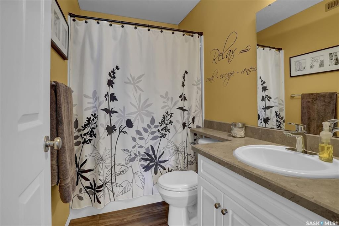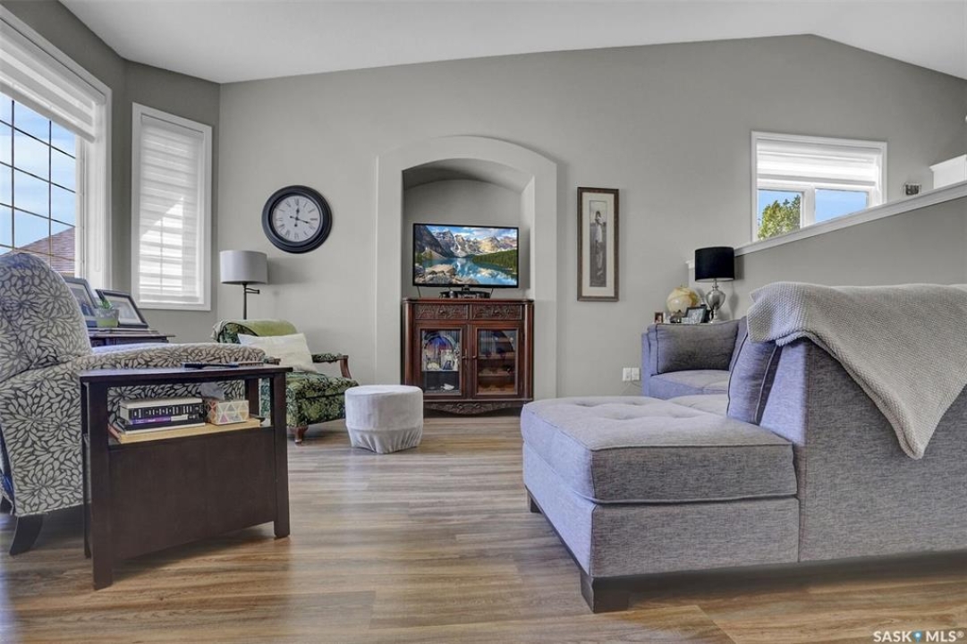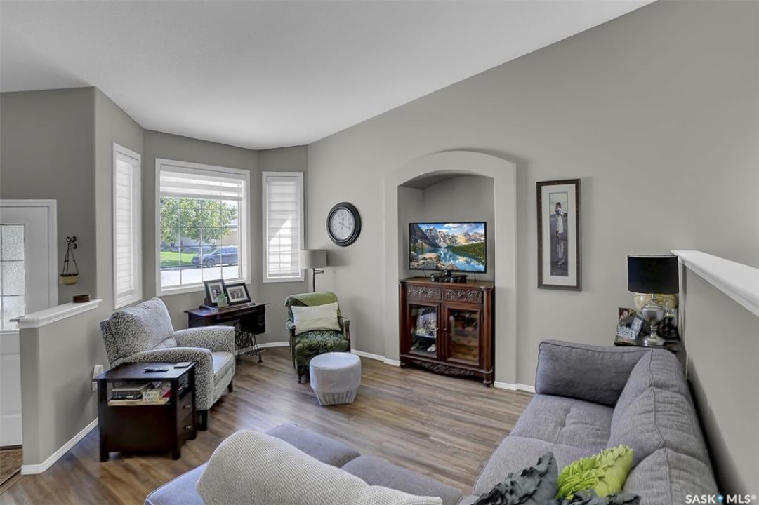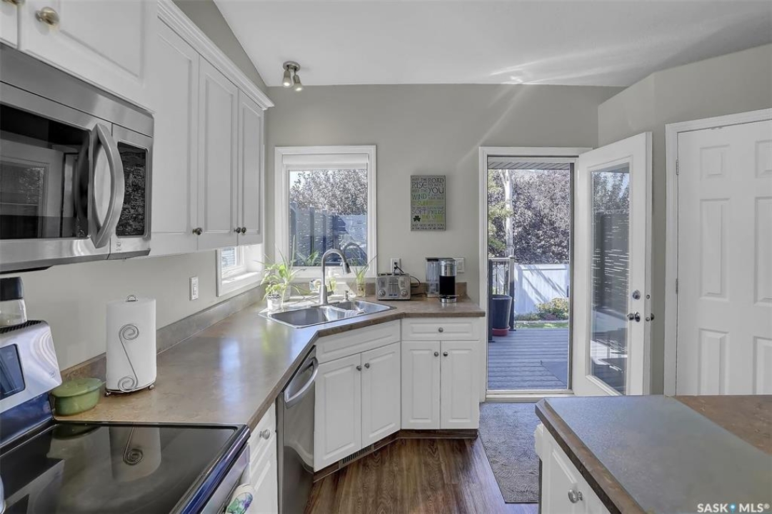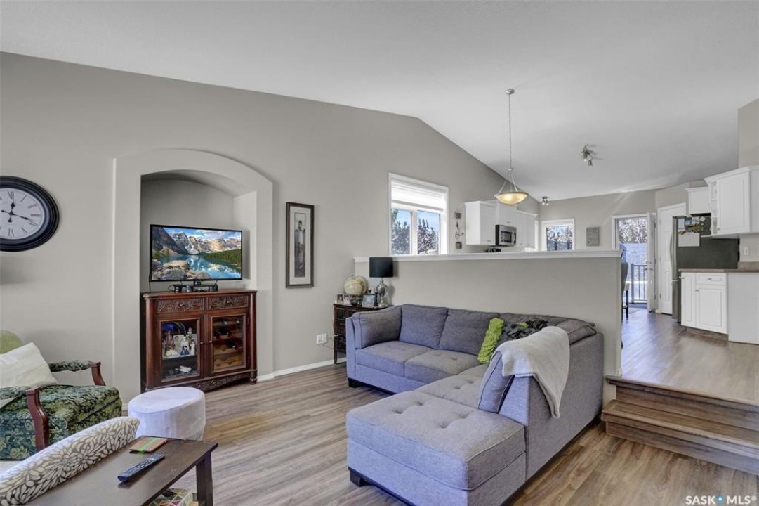 Welcome to this beautiful family home in the desirable neighborhood of Lakeridge. This well-maintained bungalow with 4 bedrooms and 3 bathrooms with a spacious 1238 sq ft open floor plan with vaulted ceilings creating an airy and inviting space. The fully finished basement with gas fireplace is great for family and movie nights. Recent updates include some basement rooms painted, vinyl fencing on 3 sides and 4th side stained in 2024, as well as new shingles in 2023, main floor painted and rust free hideaway privacy screen on deck in 2022, main floor luxury vinyl plank flooring to living, dining, kitchen and bathroom, new deck railing and custom drapes in main rooms up and down in 2021, all new stainless steel appliances in 2019, composite 2 tiered deck in 2017. There are also 2 kick plates part of the central vac system located in the dining/kitchen area and front landing, these flip open and suck up the debris from sweeping, so easy and convenient. The beautiful backyard so private and inviting with a hot tub to provide a wonderful relaxing oasis. Underground sprinklers front and back, oversized double garage. Located close to Winston Knoll Collegiate and Riffel Highschool and nearby elementary schools, walking and bike paths, restaurants, grocery stores and so many more amenities. Don't miss out on this opportunity to own this beautiful move in ready home.