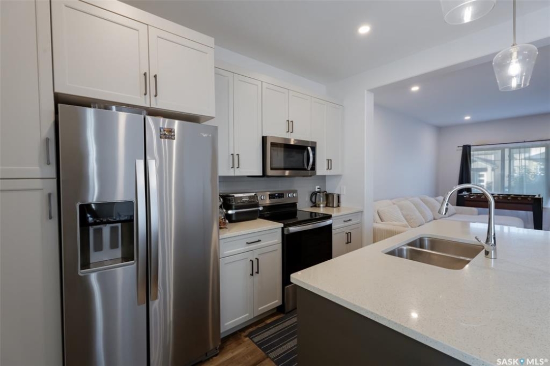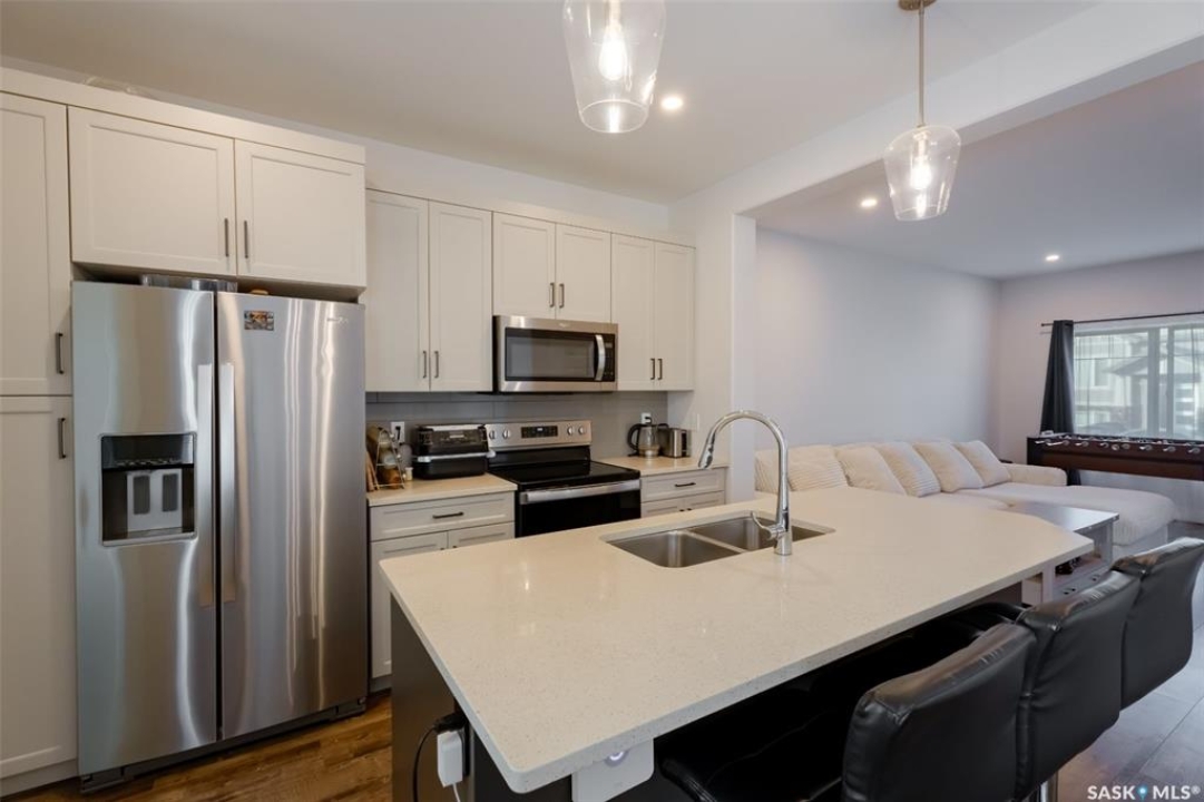 This stylish 2-storey home in the desirable Brighton neighborhood offers 1362 sq. ft. of designed living space. The kitchen features a sit-up island, custom cabinetry, quartz countertops, built-in dishwasher, and an exterior-vented over-the-range microwave. An open dining area flows seamlessly into the living room, complete with a striking stone feature wall and an electric fireplace, perfect for cozy evenings. Upstairs you'll find three bedrooms, including a primary suite with a walk-in closet and private 3-piece ensuite. Convenient second-floor laundry makes daily living easier. The lower level offers the option for a legal suite, providing excellent investment or mortgage helper potential. Outside, enjoy a landscaped front yard and a 2 car detached garage. Located in beautiful Brighton, you'll be just minutes away from parks, schools, shopping, and many other amenities.