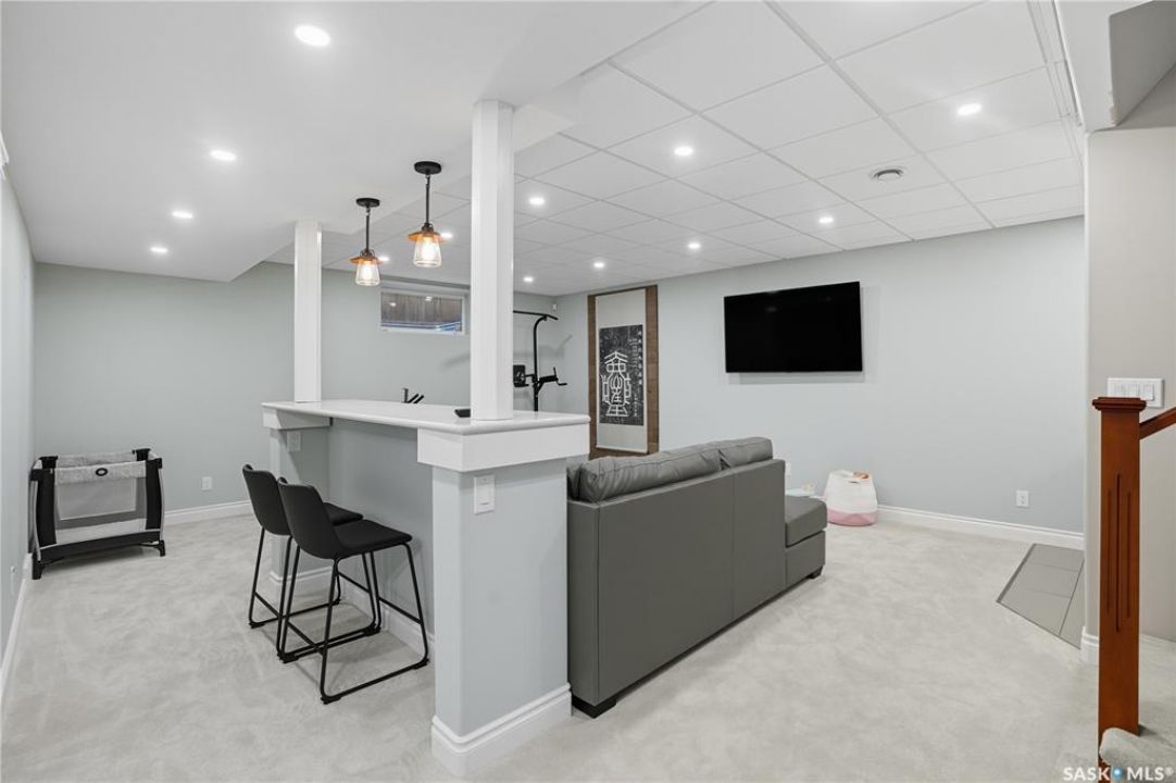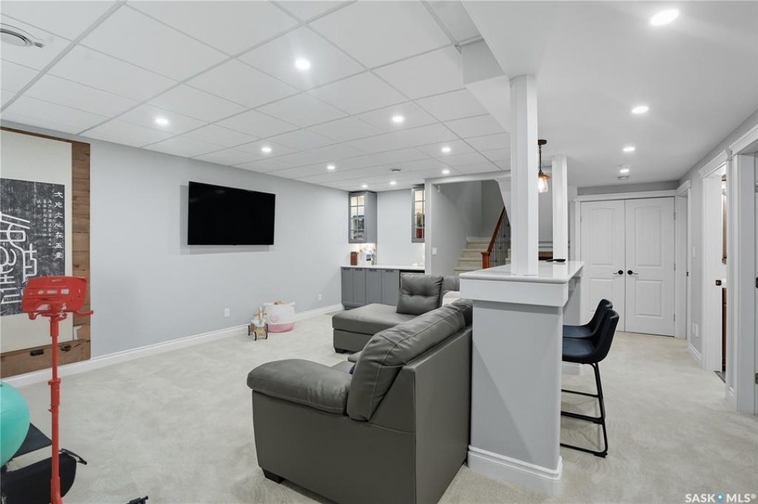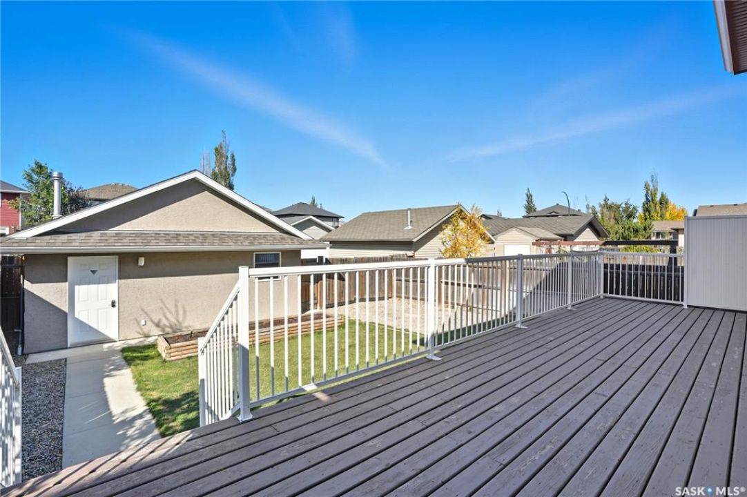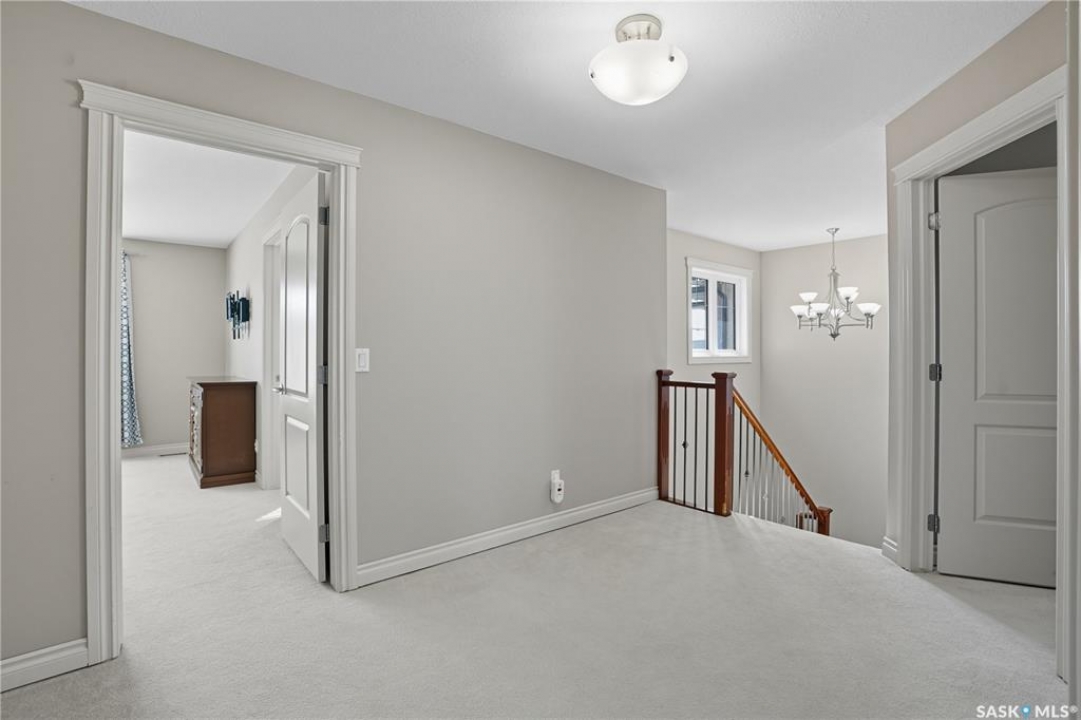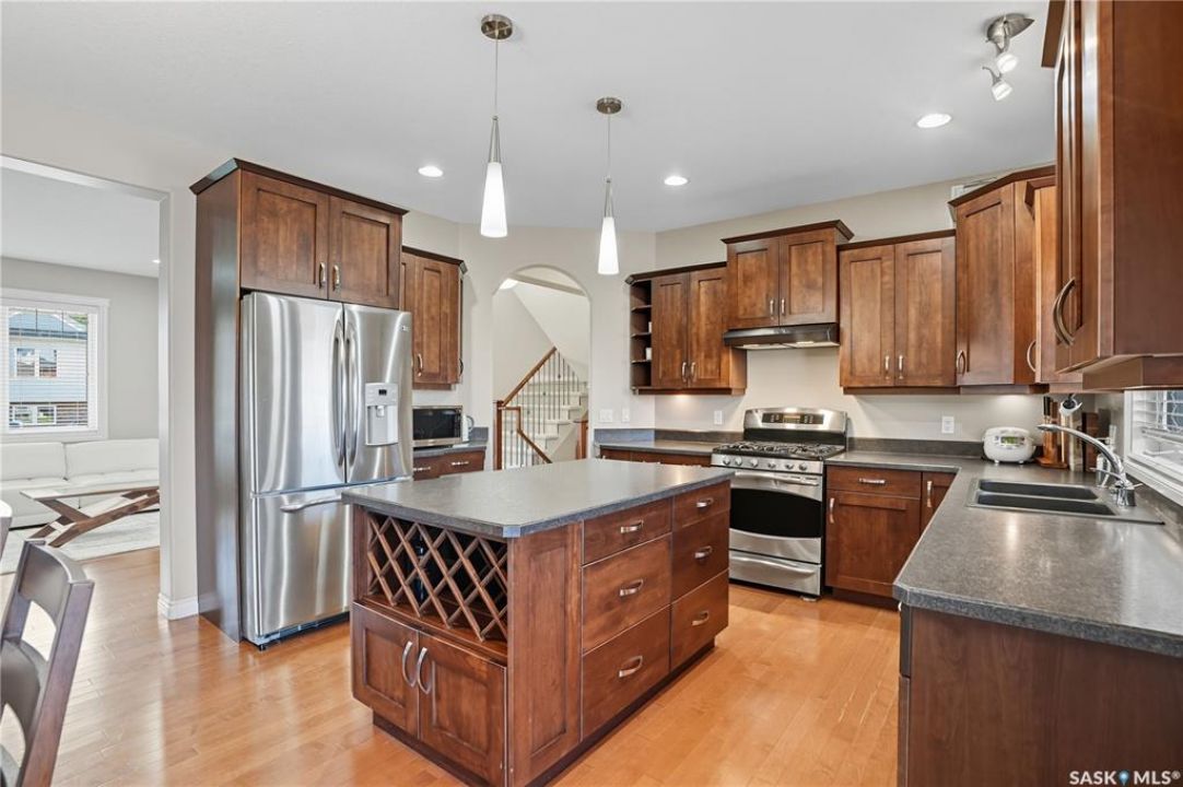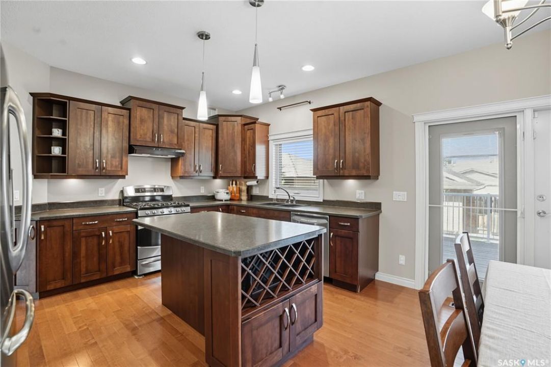 Tucked away on a quiet street near the back of Willowgrove is a 4 bedroom, 4 bathroom two storey that could be just what you've been waiting for! From the covered front porch you'll step inside & notice a spacious foyer that makes way to an inviting floor plan with plenty of windows to flood the home with natural light. A kitchen for the cooking enthusiasts with ample storage & counter space, as well as a natural gas stove. The spacious dining area is has a gas fireplace providing ambiance & distinct seperation from the adjoining living room. The main level features a functional layout with direct access to the backyard deck from both the dining area and the laundry/boot room, which leads to a 3 piece bathroom—ideal for entry from working or playing in the yard or garage. Upstairs are 3 generous sized bedrooms. The primary includes a walk in closet and a sizeable 5 piece ensuite featuring a jetted tub & stand alone shower. A 4 piece bathroom rounds out the second level. Downstairs you'll discover a welcoming, fully developed basement, designed for both relaxation and entertaining, featuring a dry bar, large family room, bedroom, 4-piece bathroom, and a versatile den/storage. Outside, the backyard has everything you need to enjoy the outdoors comfortably including two natural gas hook ups. The yard is landscaped with garden boxes and underground sprinklers. Off the back lane is a heated double detached garage providing ample space for working and parking, as well as a third parking spot beside. All carpet was replaced in 2022 as well as newer systems over the past 3 years; furnace (23), hot water heater (25), HRV (23), water softener (22), sump pump (24). With close proximity to elementary schools, shopping, dining, and commuter routes, this home combines everyday comfort with an unbeatable location. A fantastic opportunity for those looking to settle in one of Saskatoon's most desirable neighbourhoods. Contact your Realtor � to view today!