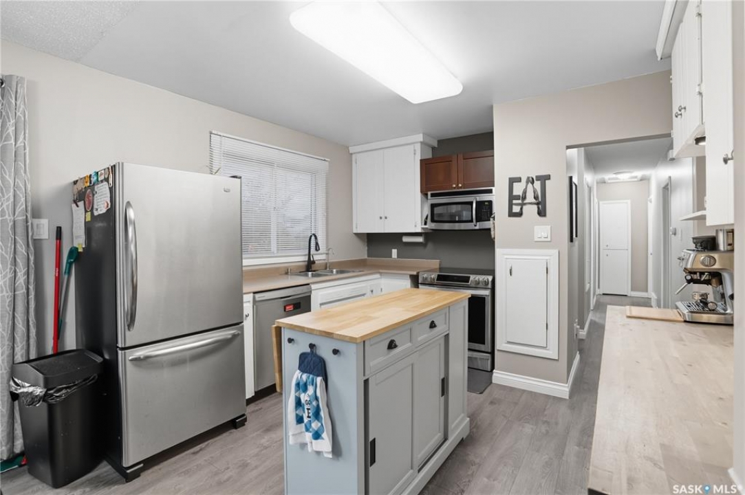 Welcome to 923 Avenue L North in the heart of Saskatoon's desirable Westmount neighborhood! Backing onto beautiful Pierre Radisson Park, this charming 1,004 sq. ft. home offers a private, park-like backyard with mature trees, a multi-tiered deck, and direct access to nature and nearby dog parks. Pride of ownership shows throughout, from the professionally finished hardwood floors and custom window coverings to the updated kitchen flooring and refreshed bathrooms featuring a relaxing whirlpool tub. Recent upgrades include new front and back doors, newer furnace and water heater, central air, and underground sprinklers. With four bedrooms, two bathrooms, and a cozy wood-burning fireplace downstairs, there's space for everyone. The large 22'x26' double detached garage with 10' ceilings is perfect for vehicles, storage, or a workshop. Appliances are included, and the 50-ft lot offers plenty of outdoor living space, all close to schools, grocery stores, and more. Presentation of offers Tuesday, October 7th at 4 pm.