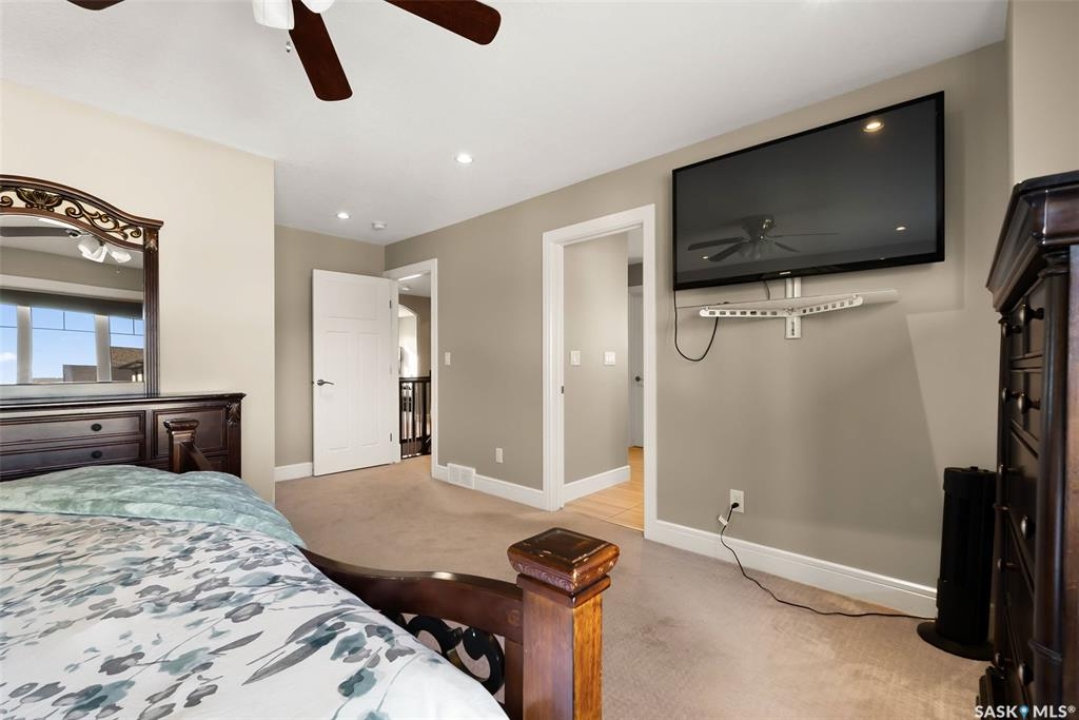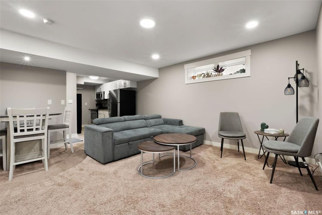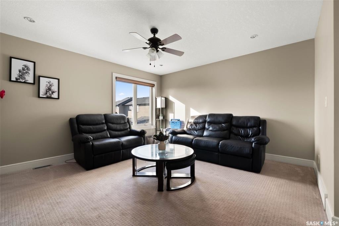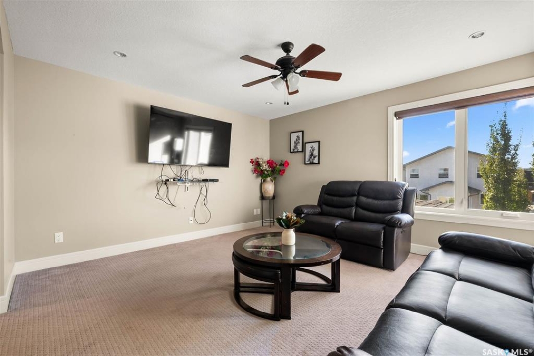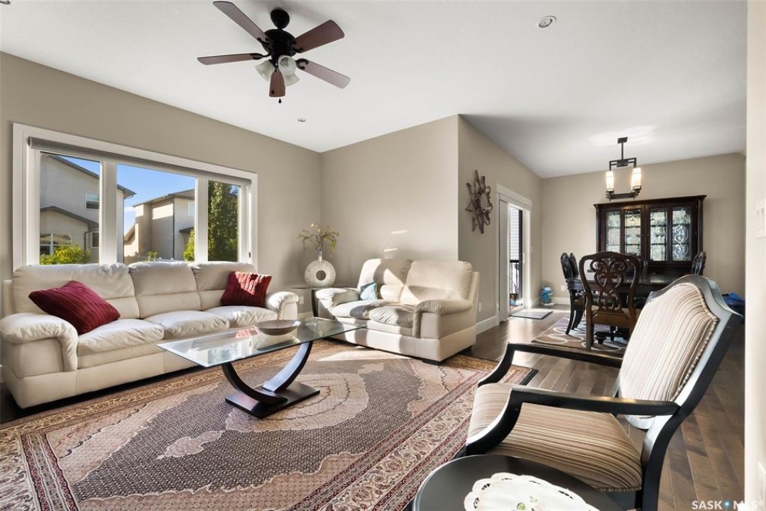 Welcome to 5221 Canuck Crescent, a beautifully maintained two-storey home in the family-friendly neighbourhood of Harbour Landing. Built in 2013, this 2,150 sq. ft. property offers a thoughtful layout, quality finishes, and a fully developed basement with a separate entry—providing excellent suite potential. The main floor features a bright living room with hardwood flooring and a cozy gas fireplace, an open dining area with access to the backyard deck, and a chef's kitchen complete with stainless steel appliances, granite counters, tile backsplash, a pantry, and a central island with wine storage. A convenient office/den and a 2-pc bathroom complete the main level. Upstairs, the spacious primary suite includes a walk-in closet and a luxurious 5-pc ensuite with dual sinks, soaker tub, and separate shower. Two additional bedrooms, a 4-pc bath, a second-floor laundry room, and a large bonus room provide plenty of space for family living. The fully finished basement offers a non-regulation suite with its own kitchen, living room, two bedrooms, a 4-pc bath, and separate laundry—ideal for extended family, guests, or rental income. Outside, enjoy a landscaped and fenced yard with deck, trees, and shrubs. The double attached garage is insulated, heated, and provides direct entry to the home, along with ample driveway parking. Located close to schools, parks, walking paths, shopping, and all Harbour Landing amenities, this home is move-in ready and offers exceptional value.