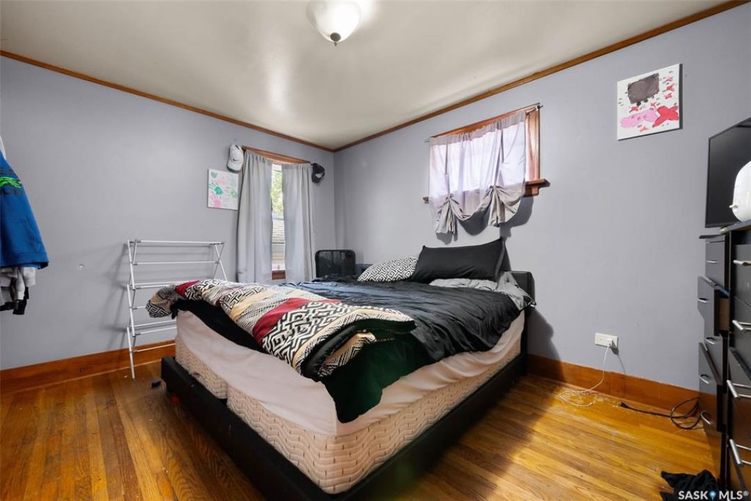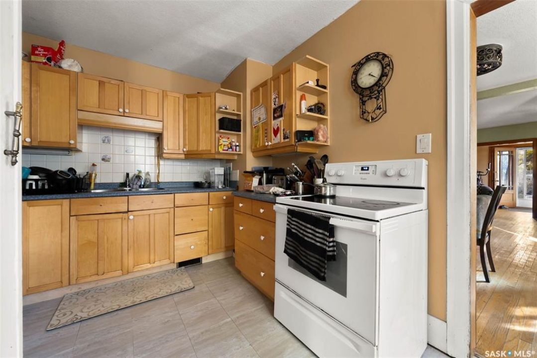Welcome to this character filled 1,272 sq ft bungalow situated on a generous 6,246 sq ft corner lot. This home offers a fantastic layout with plenty of original charm including wood flooring and trim throughout the main level. Step inside the front porch and into a spacious living room and designated dining area. The bright and functional kitchen features ample cabinet space and loads of counters, making it ideal for the home cook. The main floor also boasts three well sized bedrooms and the main bathroom. The partially finished basement offers additional living space with a large family room, a fourth bedroom, another 3 piece bathroom, laundry area, and plenty of storage and utility space. This property also features both a single attached garage and a double detached garage with lane access. The detached garage is insulated, equipped with 100-amp electrical service, making it perfect for a workshop, extra storage, or parking. Enjoy the outdoors in the well treed, fully fenced backyard complete with a small patio space. Whether you're an investor looking to add to your rental portfolio or a family searching for a comfortable character home, 1400 Queen Street is a fantastic opportunity. Don't miss out!