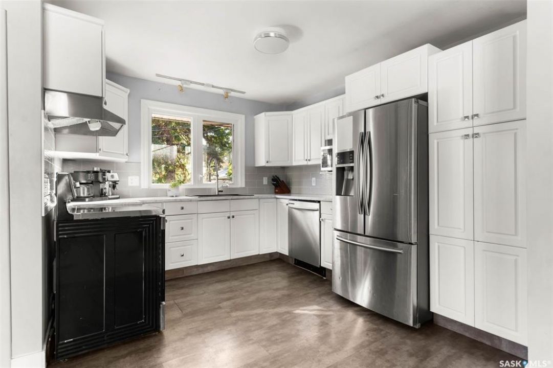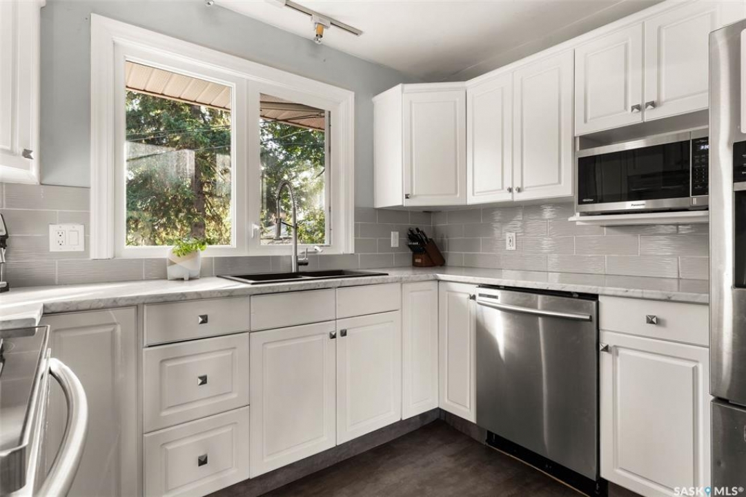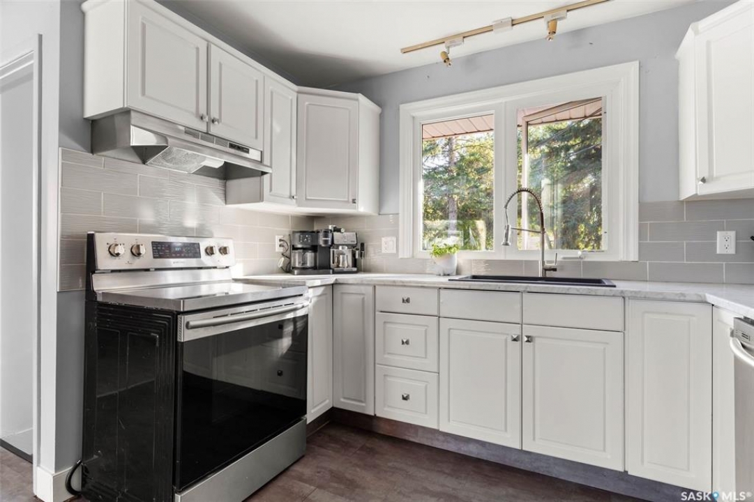 Welcome to 1809 Dufferin Road, located in Regina's sought-after Whitmore Park. This well-kept 1,050 sq. ft. bungalow is move-in ready and offers both style and function, making it an ideal choice for families, first-time buyers, or downsizers alike. Inside, you'll find a bright and spacious living room with a large picture window that fills the space with natural light. The main floor features hardwood floors, a dedicated dining area, and an updated kitchen with white cabinetry, stainless steel appliances, and plenty of counter space. Three good-sized bedrooms and a refreshed 4-piece bathroom with a granite countertop complete the main level. The fully developed basement offers even more living space with a huge recreation room—perfect for entertaining, a play area, or a home theatre. An additional bedroom and laundry/utility area make this level functional and versatile for today's family needs. Step outside to a large 6,536 sq. ft. lot with a fully fenced backyard designed for relaxation and play. Enjoy mature trees, a patio for summer BBQs, a firepit area, garden space, and room for kids to run or set up play equipment. Other notable features include updated windows, central air conditioning, modern finishes throughout, and a concrete driveway with ample off-street parking. This property combines comfort, updates, and a fantastic location close to schools, parks, shopping, and south-end amenities. Don't miss your chance to call 1809 Dufferin Road home!