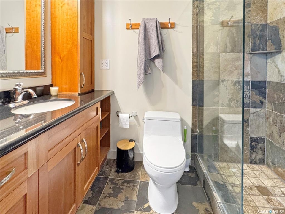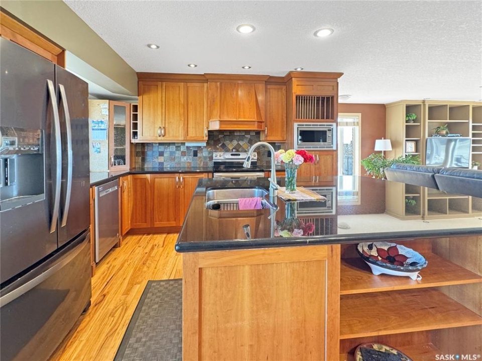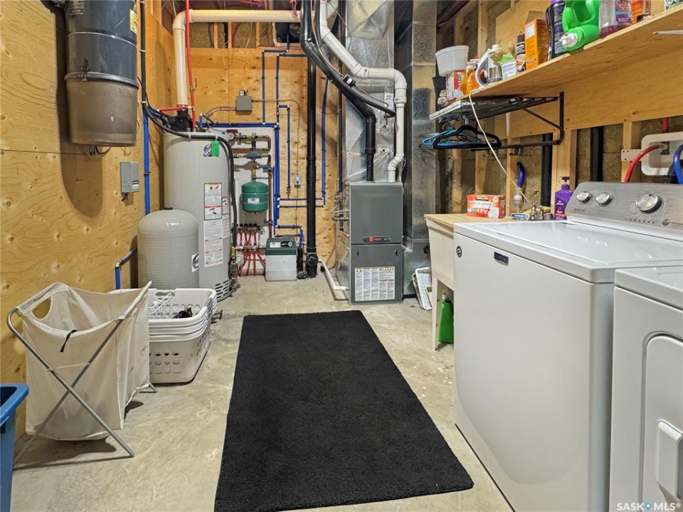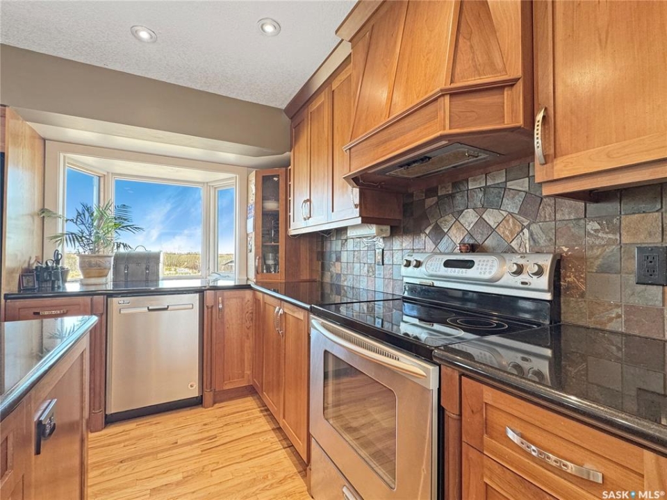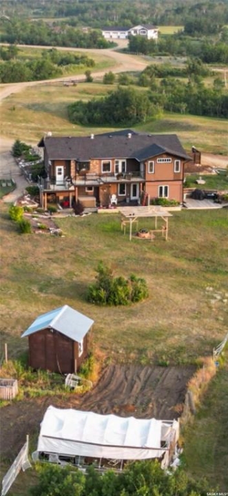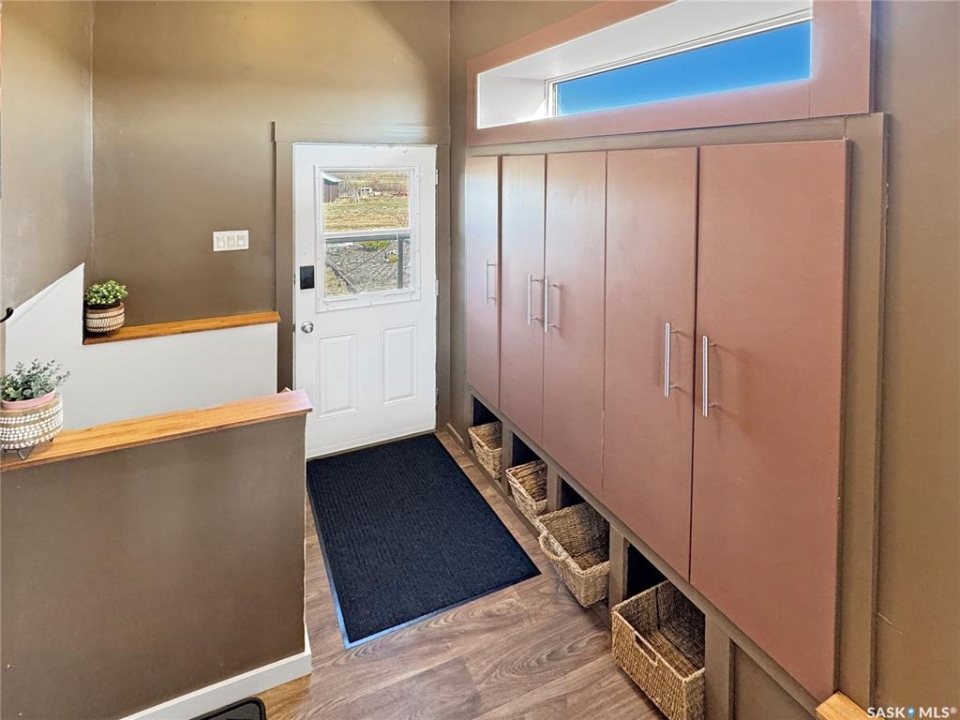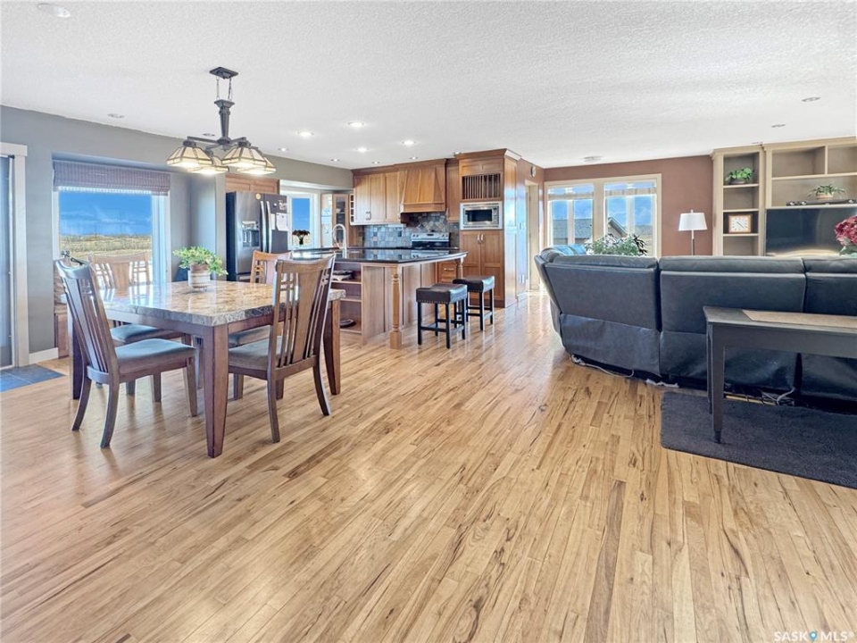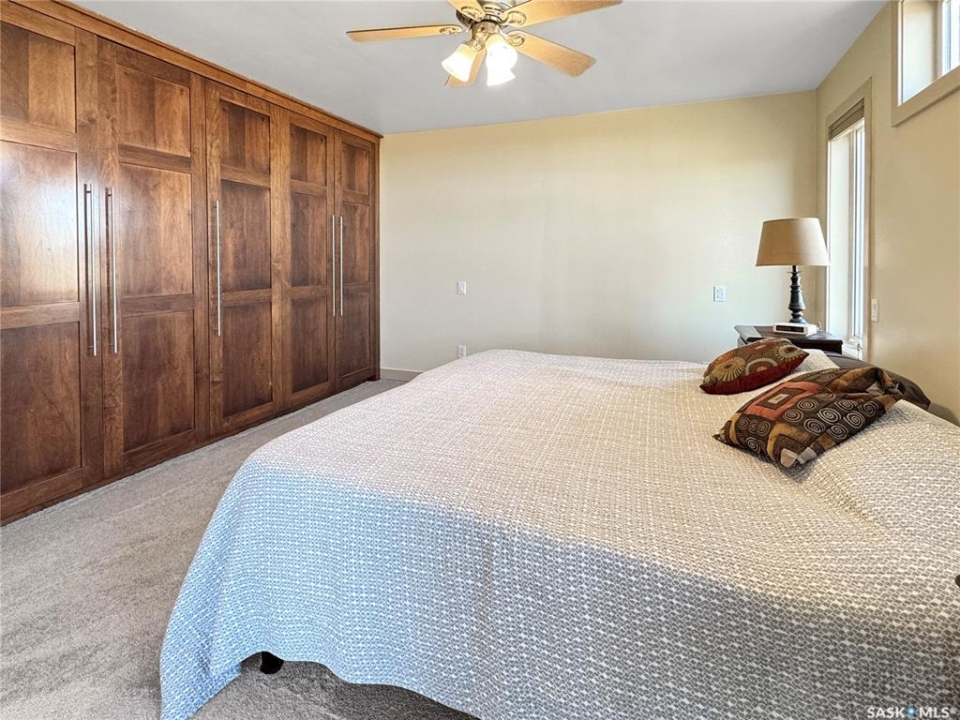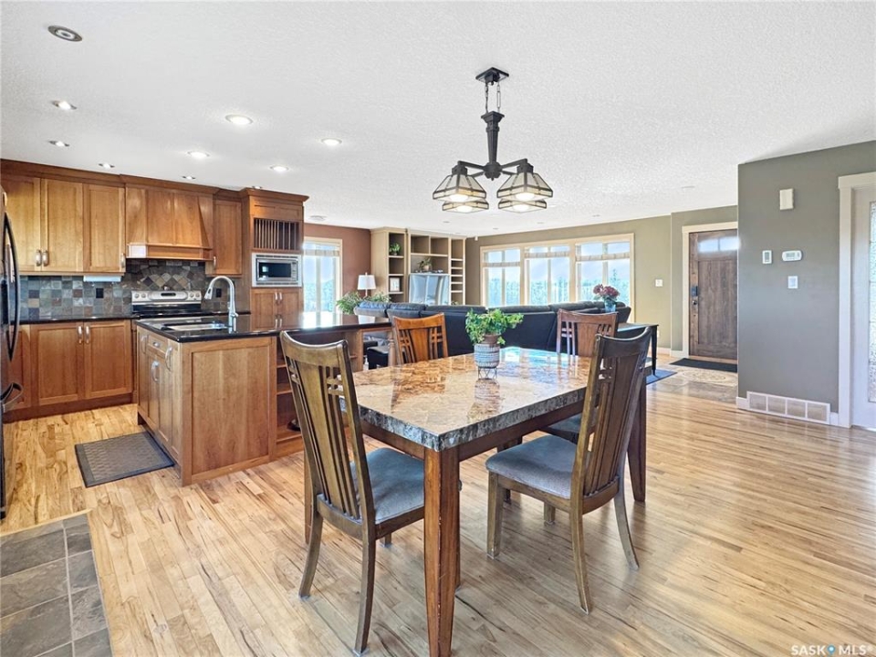 Discover your own piece of paradise just 5 minutes from Battleford with this stunning 4-bedroom, 4-bathroom acreage, situated on 12.5 acres of countryside. This thoughtfully designed home offers modern comforts, incredible views, and endless space—inside and out—including a fully equipped basement suite with its own kitchen and laundry, ideal for extended family or rental potential. Step into a spacious foyer accented by custom tile flooring, leading into an open-concept living space filled with natural light. The living room features custom built-ins surrounding the entertainment area. The beautifully designed kitchen boasts custom cabinetry, sleek quartz countertops, and a large island with a built-in sink—providing space for effortless meal prep, casual dining, or entertaining at the island seating. The adjoining dining area offers direct access to a large deck—perfect for morning coffee or hosting gatherings while overlooking the backyard. The main floor includes three generous bedrooms, a dedicated office, and a stylish 4-piece family bathroom with slate tile flooring. The primary suite is a true retreat, featuring custom closet cabinetry, a 3-piece ensuite with a beautifully tiled shower, and private deck access. The fully developed walkout basement offers a spacious rec room, an additional 4-piece bathroom, convenient access to your hot tub, and a self-contained suite for guests, family, or rental income. This home is built for year-round comfort with in-floor heating, central air conditioning, and a durable ICF foundation for energy efficiency and peace of mind. Additional highlights include a double attached garage, a large shop for extra storage or projects, and plenty of room to enjoy acreage living at its finest. If you're looking for privacy, space, and modern living just minutes from town—this property delivers it all. Call today to arrange your private viewing and experience the lifestyle this acreage has to offer!