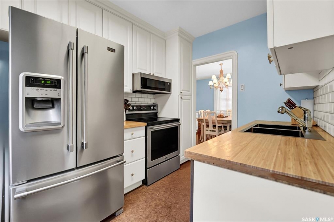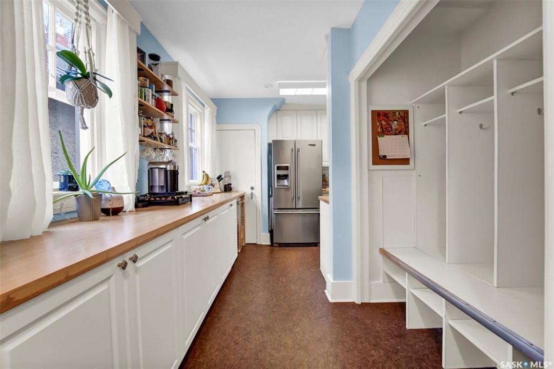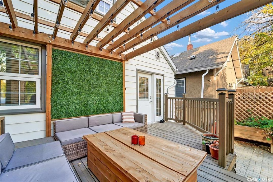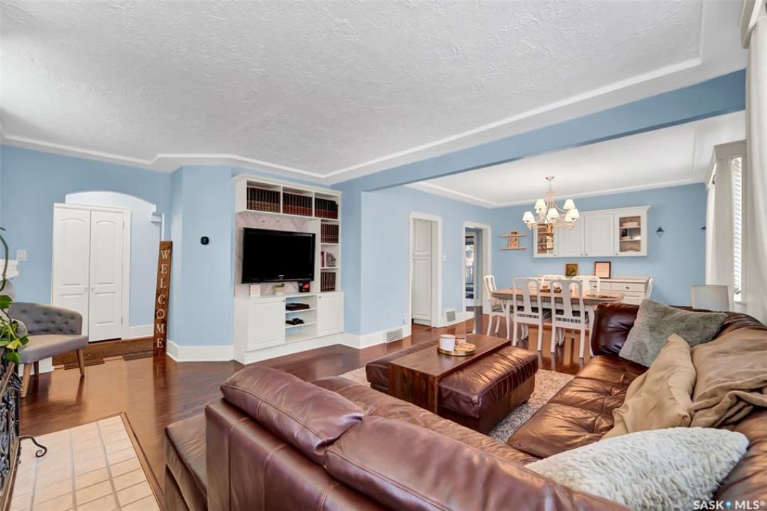 Welcoming investors and home ownership to this beautifully updated 1 � story home in Buena Vista! From the moment you step inside, you'll feel the perfect balance of modern updates and original character.Charming details such as arched doorways, original moldings, and ceiling accents set the tone, while the bright living room with its gorgeous original fireplace opens seamlessly into the spacious dining room, complete with built-in cabinets and serving area. The galley-style kitchen is both stylish and functional, featuring stainless steel appliances, white cabinetry, and a unique backsplash design. A large main-floor bedroom offers comfort and convenience. Practicality shines with the generous mudroom, complete with locker-style storage, and a laundry room located off the back entry with plenty of space for sorting and folding. Upstairs, you'll find two spacious bright bedrooms with charming sloped ceilings. The basement offers an LEGAL Suite , including a cozy family room, two additional large bedrooms, and a 3-piece bath. Step outside to enjoy the private backyard—perfect for relaxing, BBQs, or entertaining—with both deck and patio spaces, garage, 2 parking spots for both tenants and owner and one in the front for easy convenience. Located in one of Saskatoon's most desirable areas, you'll be within walking distance to Broadway, the river, and downtown. This home truly has it all—character, updates, and an unbeatable location!