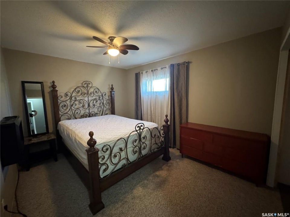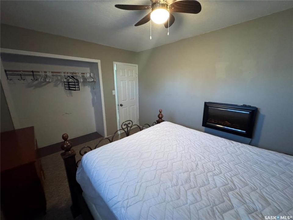Looking for space, comfort, and a great location? This 1,300 sq. ft. bungalow checks all the boxes and is ready for its next owner. The kitchen features an island with stools, making it a natural gathering place for family and friends. The living room is warm and inviting with its electric fireplace, while the primary bedroom also has its own fireplace for added comfort. With four bedrooms in total—one featuring a built-in storage wall unit—plus an office, there's plenty of flexibility for family, guests, or hobbies. The 4-piece bathroom shines with a beautifully tiled tub surround. A main floor laundry/utility/mudroom with basement access adds extra convenience. Outside, the fenced yard offers space to relax and play, complete with a hot tub, tree fort, and a single detached garage (partially insulated). Located just down the block from schools and within walking distance of the swimming pool and rec complex, this home is ideal for families or anyone wanting to enjoy both comfort and community. The home is move-in ready and comes with furniture as viewed.