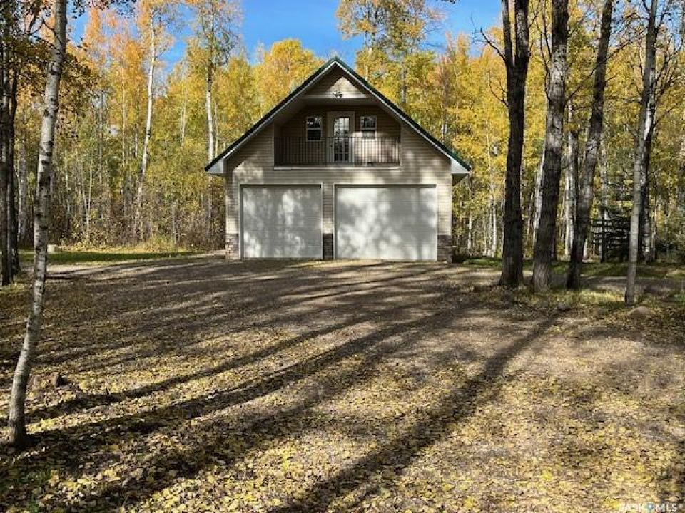 This acreage in the Meadowlands Subdivision lives up to the beauty of the area. With the lake of Lac des Isles less than 2 kms away with a boat launch, you can enjoy the area while having the luxury of the peaceful oasis in your backyard. This property includes a fully insulated drywalled and painted 26X32 sq ft garage with epoxy floor. A kitchen and 3 piece bathroom with on demand propane water heater is in the main part of garage. Upstairs is a spacious 26X14 loft with 4 built in bunkie style double beds and your own light and privacy curtain for sleeping. A nice size lounge area large enough for a few furniture pieces is off of the 5x14 ft recessed balcony. This completes the beauty of the rustic barn board featured walls from a local farmers barn bringing a little nostalgic history of the area to add to the charm. The property's circle driveway is a showcase, with lovely evergreens, trees and grass, the care put in by the owner really shows through! There is a septic tank and an RV hook up to it in the yard. There is no water on the property, as of now it has been hauled in, but there is a hook up at the garage to service water to the kitchen and bathroom. This property is 6km from Goodsoil and less than an hour to Cold Lake and Meadow Lake. This spacious acreage has ample room to build anything you desire (no time restriction) boasting 1.96 acres of land at your fingertips, there no shortage of space.