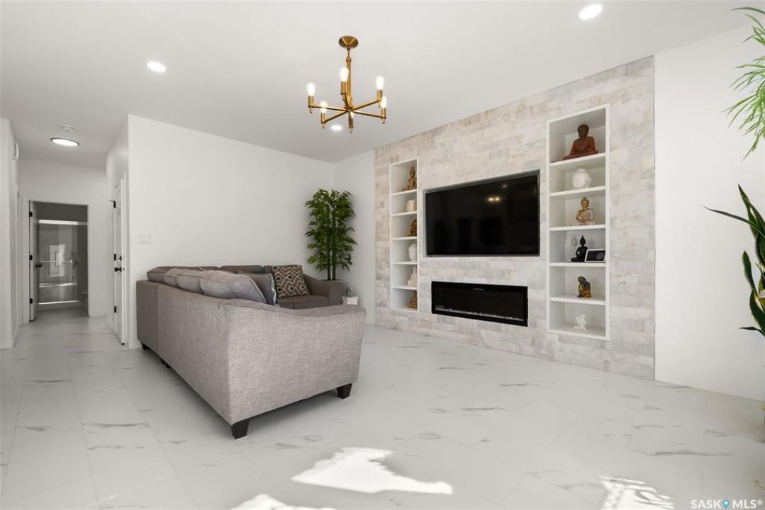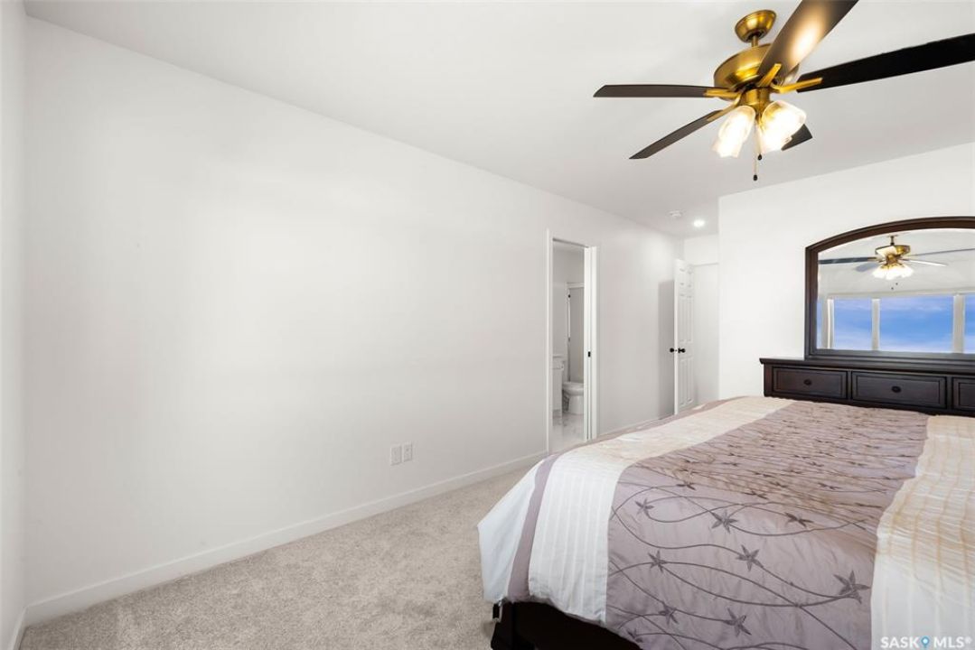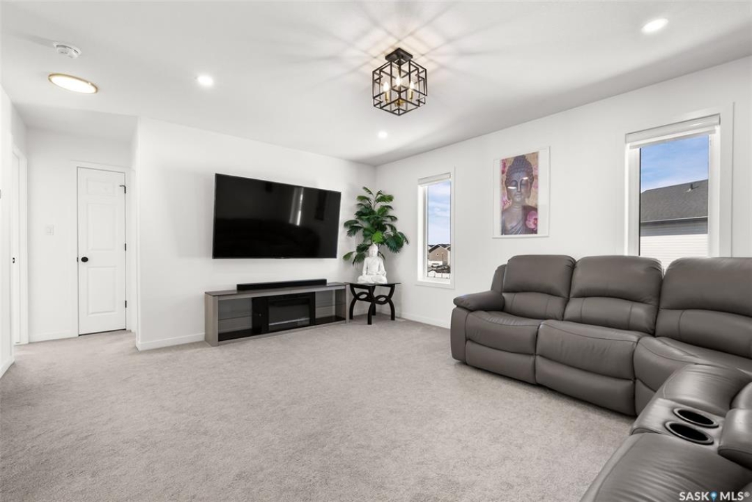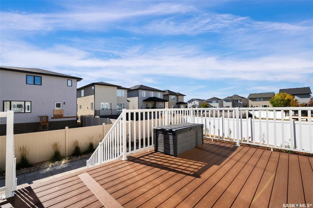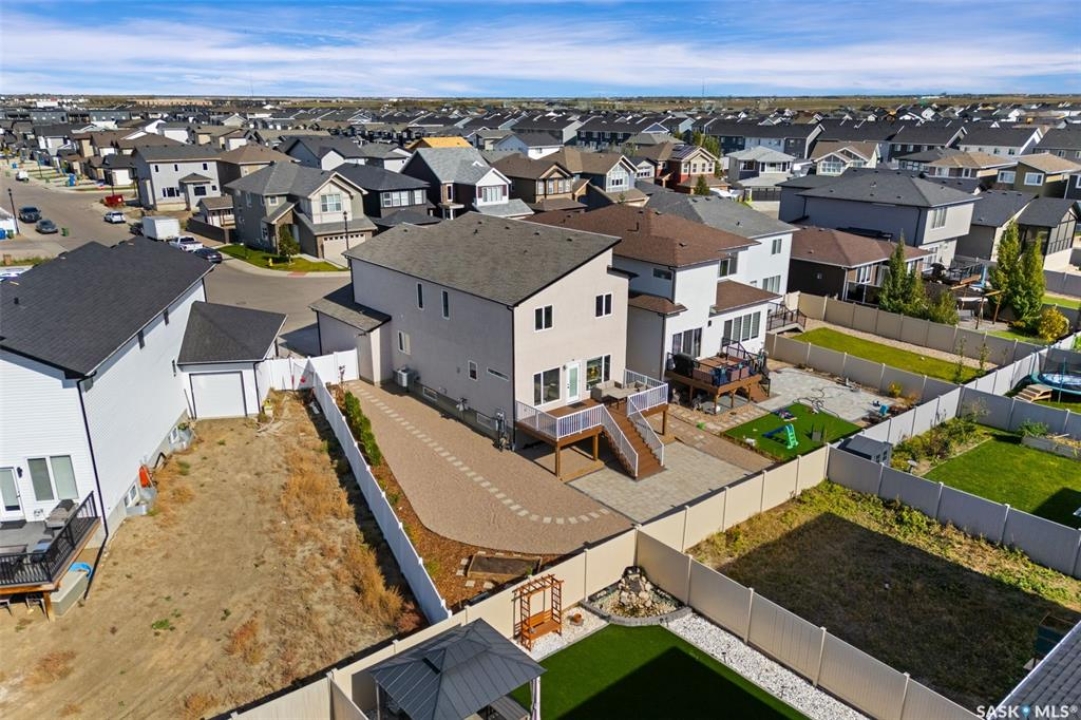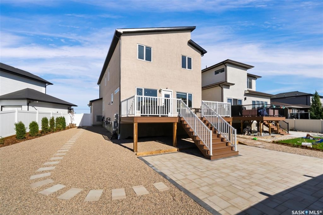 Welcome to 3226 Copeland Road in Eastbrook, Regina! This custom-built Crawford Homes 2-storey offers 6 bedrooms, 4 bathrooms, and a fully finished regulation basement suite—ideal for extended family, rental, or Airbnb income potential. The home's striking entrance opens to a grand foyer with an open-to-below design. The main floor features a bright living room accented by a stone feature wall with built-in shelving and fireplace, a spacious dining area, and a chef-inspired kitchen with quartz counters, ceiling-height cabinets, pot drawers, built-in soap dispensers, and premium stainless-steel appliances. A main-floor bedroom with adjacent full bath offers excellent convenience for guests or multigenerational living. Upstairs, the primary suite includes a walk-in closet and private ensuite, complemented by two additional bedrooms, a full bath, laundry, and a versatile bonus room. The regulation basement suite provides a separate entrance, modern kitchen, living room, 2 bedrooms, a 4-pc bath, and in-suite laundry. Designed for modern living, the home is fully smart-wired with WiFi switches, Ethernet ports in every room, conduit for solar, and whole-home surge protection. Energy-efficient upgrades include a tankless water heater, water softener, and a high-performance 2-stage furnace. The oversized insulated/heated garage impresses with a 50-amp EV fast charger, hot/cold water lines, drain pit, and extended driveway. Outdoor living shines with a huge composite deck, low-maintenance landscaping, and a fully fenced yard with paving stone patio. Every detail was thoughtfully crafted—from the extended deck and custom storage to the 200-amp panel for the main home and separate 100-amp panel for the suite—making this property a rare combination of style, functionality, and investment opportunity.