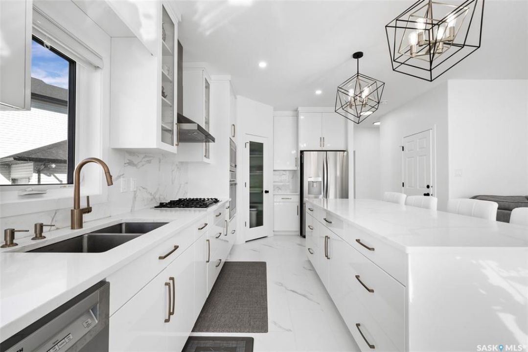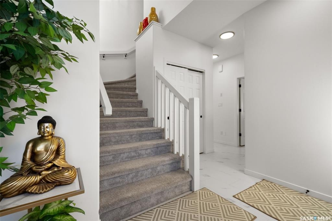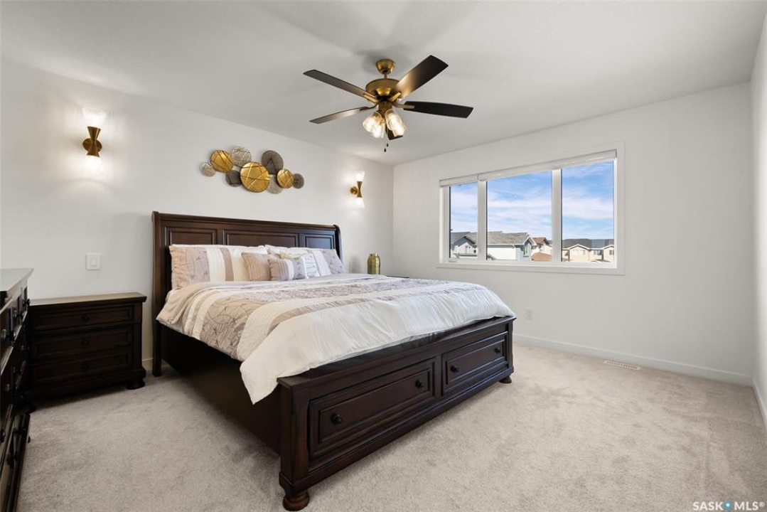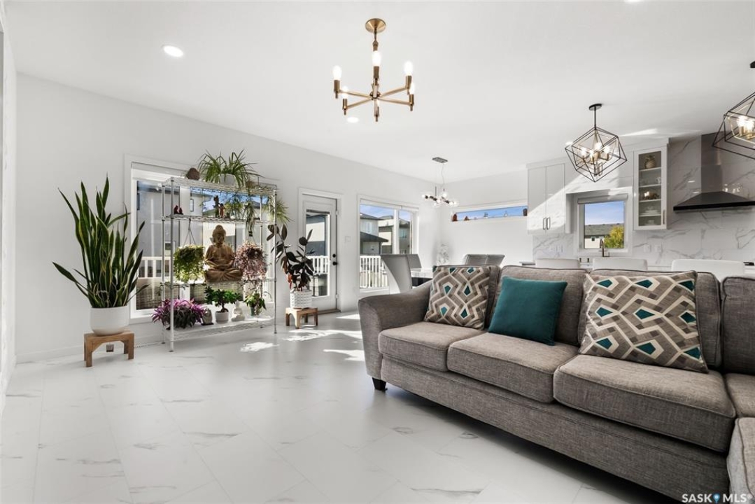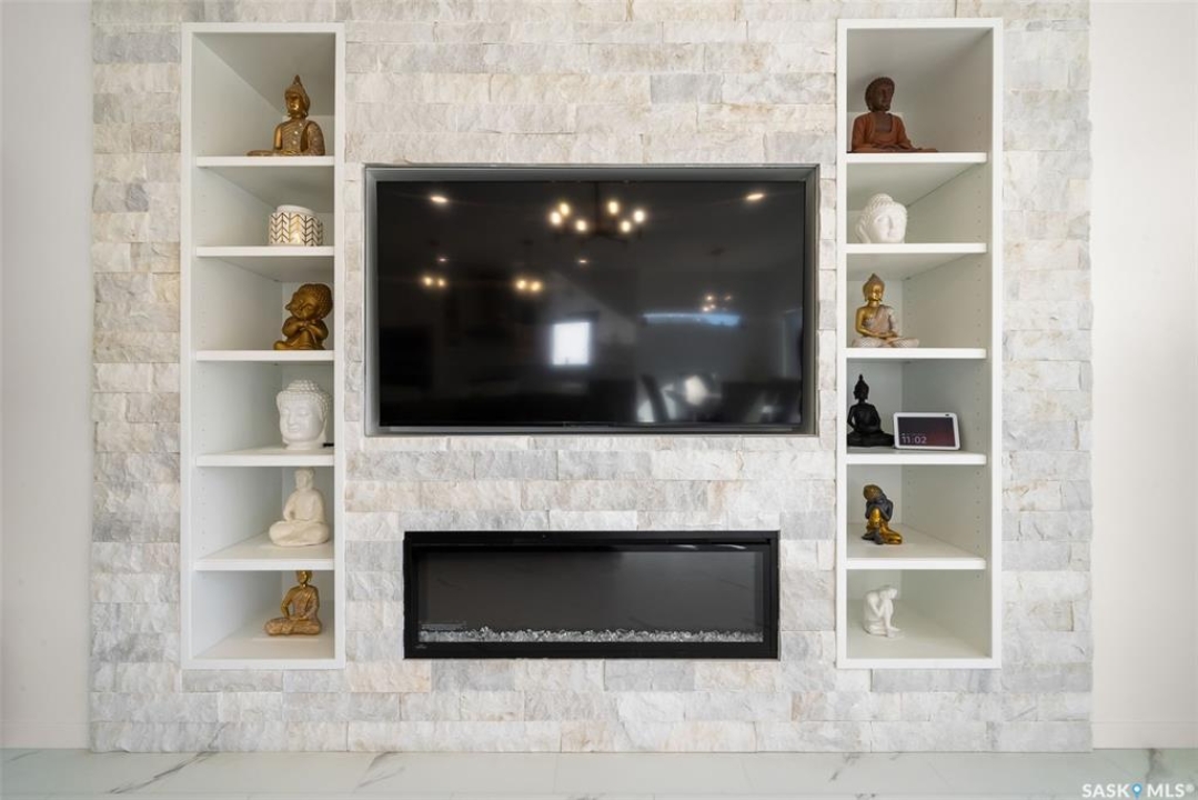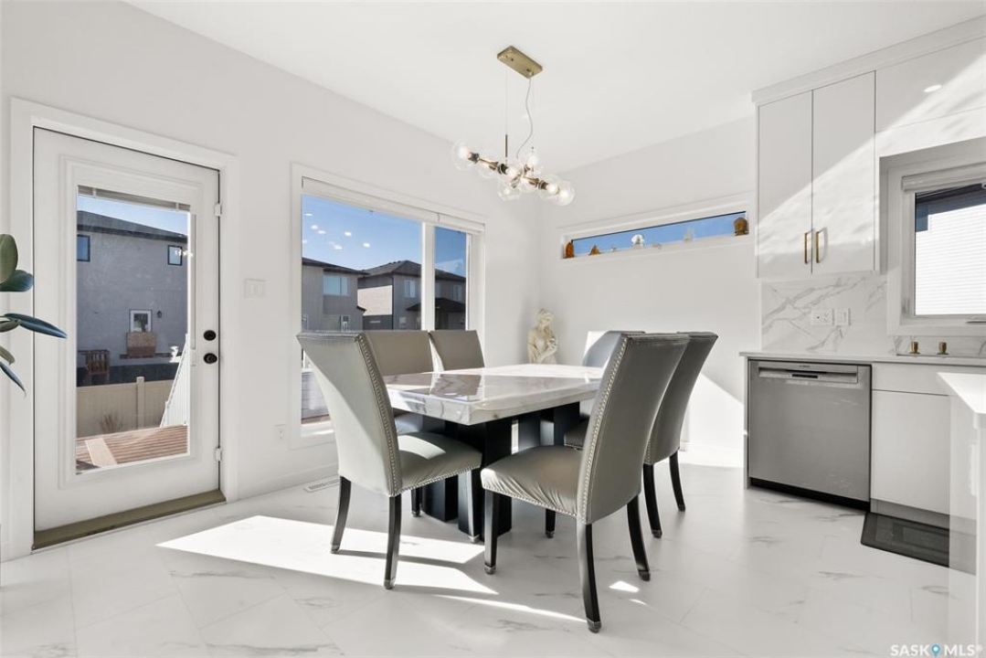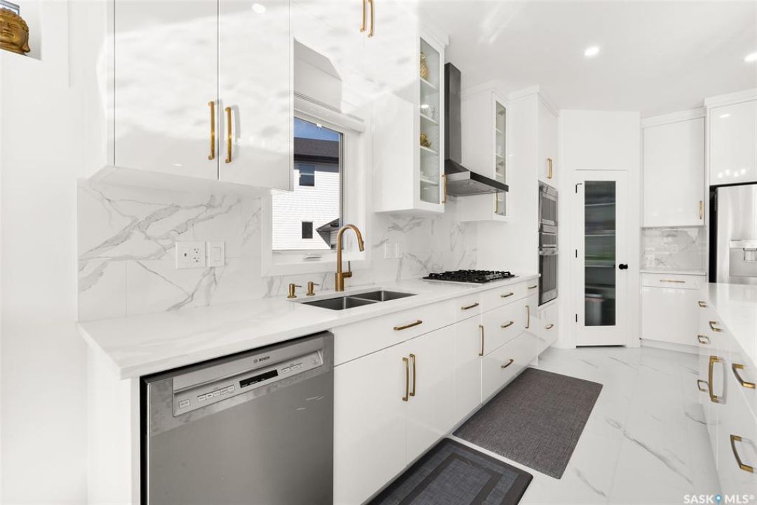 Welcome to 3226 Copeland Road in Eastbrook, Regina! This custom-built Crawford Homes 2-storey offers 6 bedrooms, 4 bathrooms, and a fully finished regulation basement suite—ideal for extended family, rental, or Airbnb income potential. The home's striking entrance opens to a grand foyer with an open-to-below design. The main floor features a bright living room accented by a stone feature wall with built-in shelving and fireplace, a spacious dining area, and a chef-inspired kitchen with quartz counters, ceiling-height cabinets, pot drawers, built-in soap dispensers, and premium stainless-steel appliances. A main-floor bedroom with adjacent full bath offers excellent convenience for guests or multigenerational living. Upstairs, the primary suite includes a walk-in closet and private ensuite, complemented by two additional bedrooms, a full bath, laundry, and a versatile bonus room. The regulation basement suite provides a separate entrance, modern kitchen, living room, 2 bedrooms, a 4-pc bath, and in-suite laundry. Designed for modern living, the home is fully smart-wired with WiFi switches, Ethernet ports in every room, conduit for solar, and whole-home surge protection. Energy-efficient upgrades include a tankless water heater, water softener, and a high-performance 2-stage furnace. The oversized insulated/heated garage impresses with a 50-amp EV fast charger, hot/cold water lines, drain pit, and extended driveway. Outdoor living shines with a huge composite deck, low-maintenance landscaping, and a fully fenced yard with paving stone patio. Every detail was thoughtfully crafted—from the extended deck and custom storage to the 200-amp panel for the main home and separate 100-amp panel for the suite—making this property a rare combination of style, functionality, and investment opportunity.