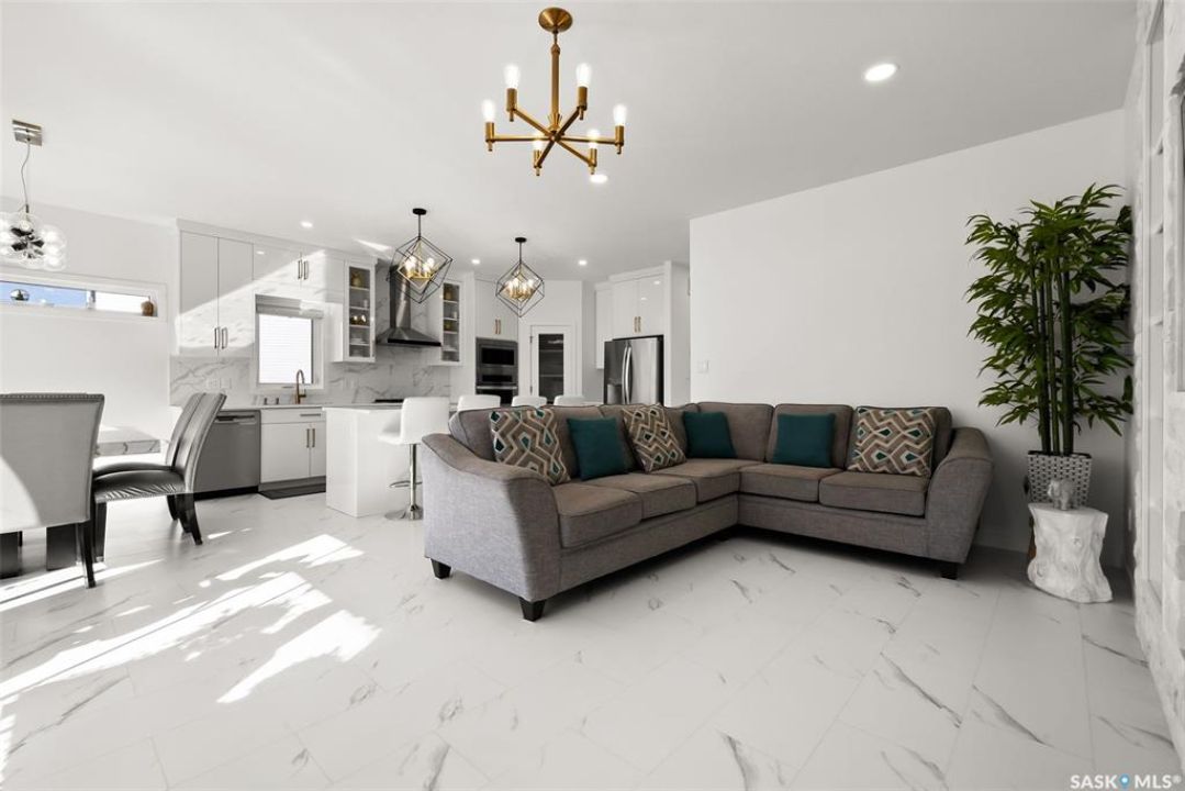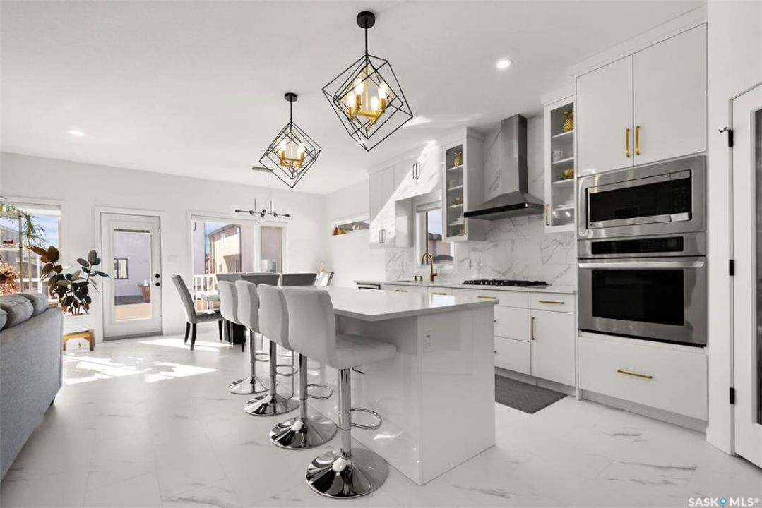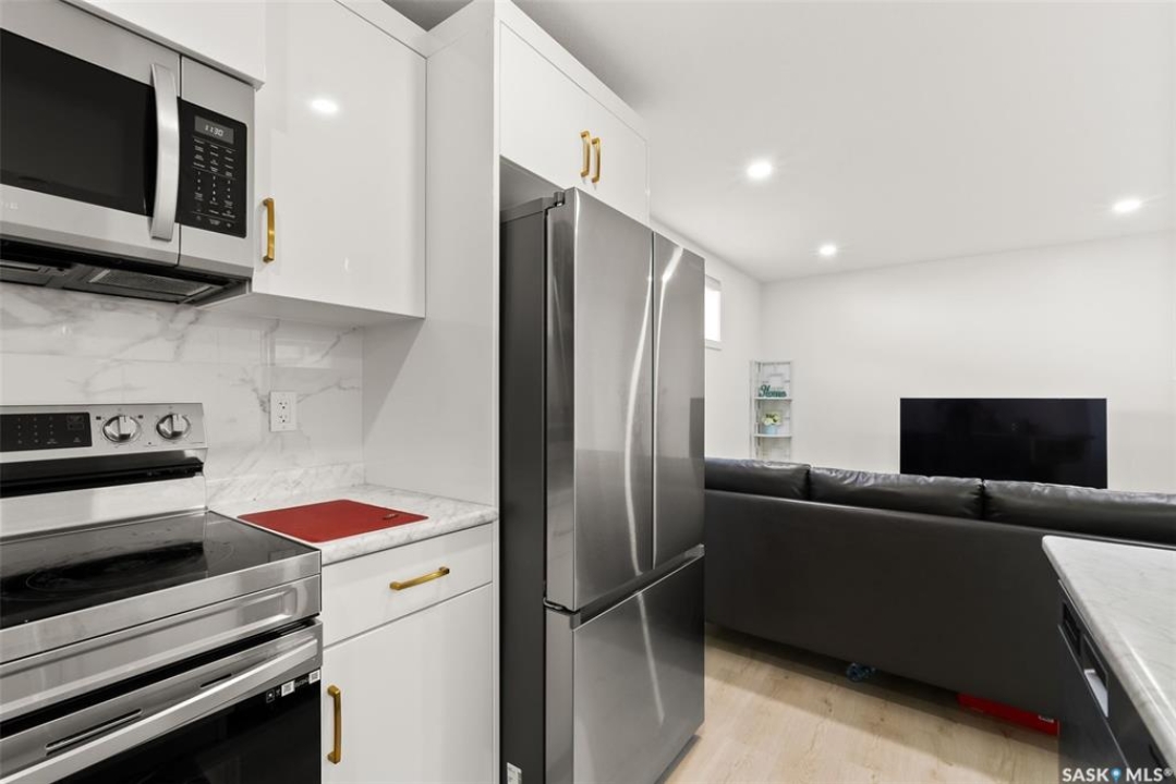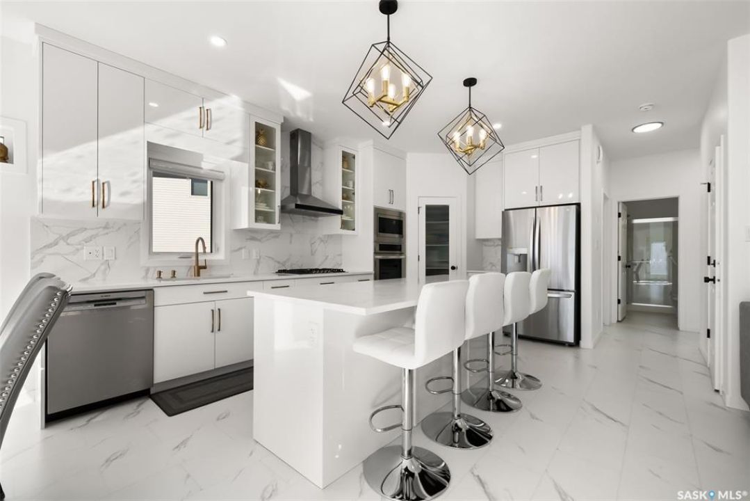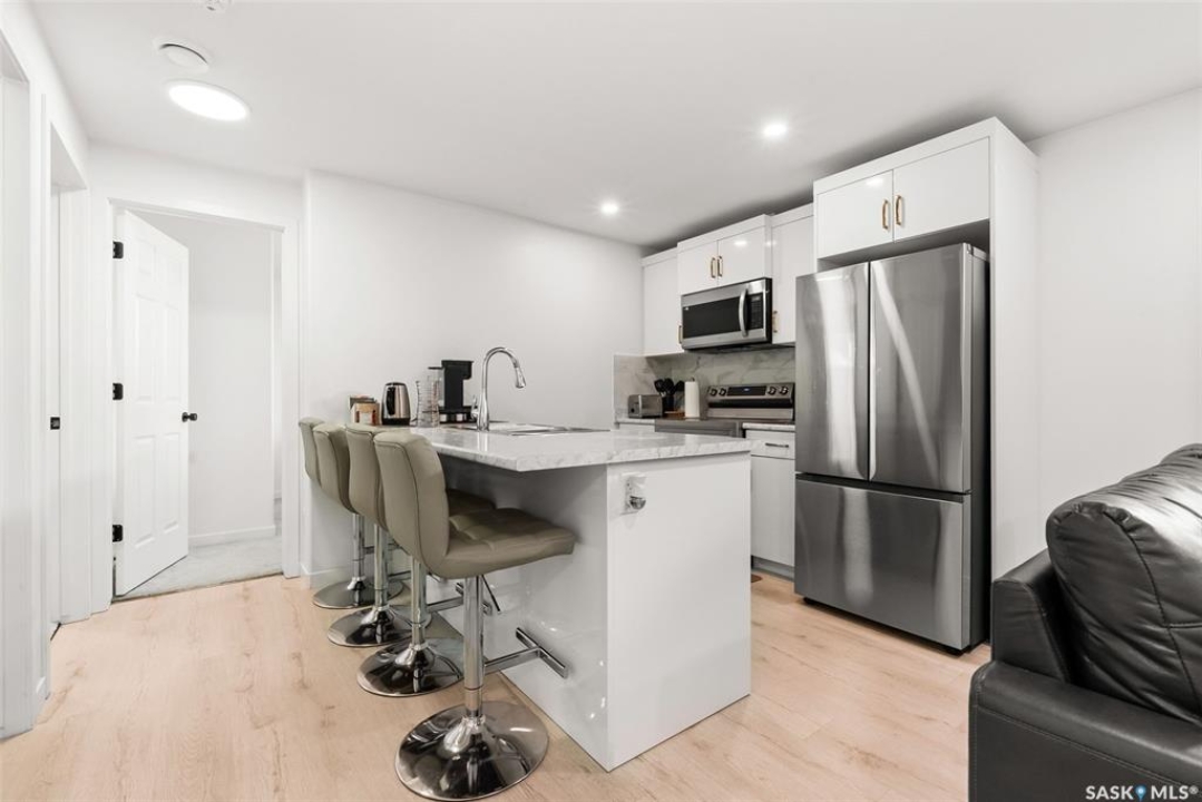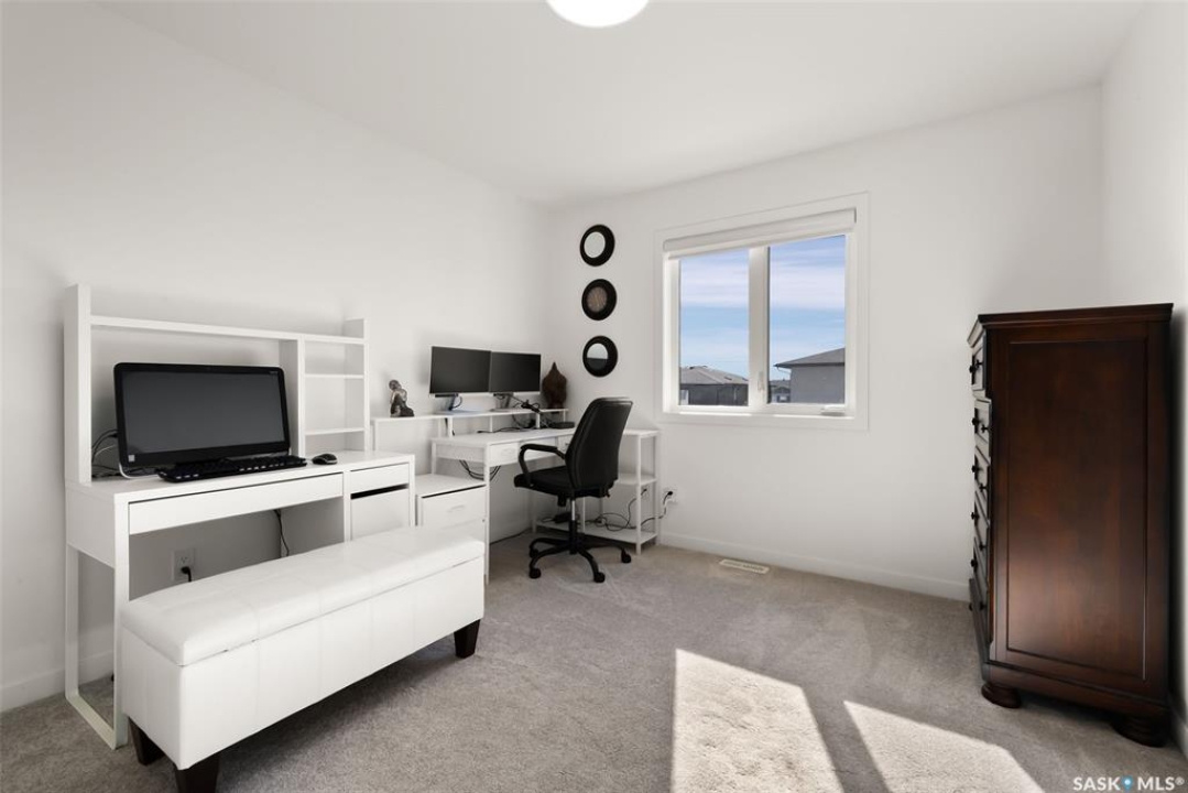 Welcome to 3226 Copeland Road in Eastbrook, Regina! This custom-built Crawford Homes 2-storey offers 6 bedrooms, 4 bathrooms, and a fully finished regulation basement suite—ideal for extended family, rental, or Airbnb income potential. The home's striking entrance opens to a grand foyer with an open-to-below design. The main floor features a bright living room accented by a stone feature wall with built-in shelving and fireplace, a spacious dining area, and a chef-inspired kitchen with quartz counters, ceiling-height cabinets, pot drawers, built-in soap dispensers, and premium stainless-steel appliances. A main-floor bedroom with adjacent full bath offers excellent convenience for guests or multigenerational living. Upstairs, the primary suite includes a walk-in closet and private ensuite, complemented by two additional bedrooms, a full bath, laundry, and a versatile bonus room. The regulation basement suite provides a separate entrance, modern kitchen, living room, 2 bedrooms, a 4-pc bath, and in-suite laundry. Designed for modern living, the home is fully smart-wired with WiFi switches, Ethernet ports in every room, conduit for solar, and whole-home surge protection. Energy-efficient upgrades include a tankless water heater, water softener, and a high-performance 2-stage furnace. The oversized insulated/heated garage impresses with a 50-amp EV fast charger, hot/cold water lines, drain pit, and extended driveway. Outdoor living shines with a huge composite deck, low-maintenance landscaping, and a fully fenced yard with paving stone patio. Every detail was thoughtfully crafted—from the extended deck and custom storage to the 200-amp panel for the main home and separate 100-amp panel for the suite—making this property a rare combination of style, functionality, and investment opportunity.