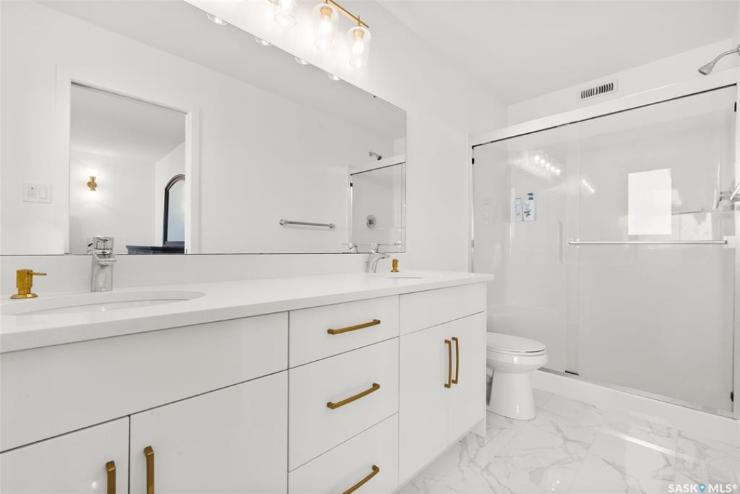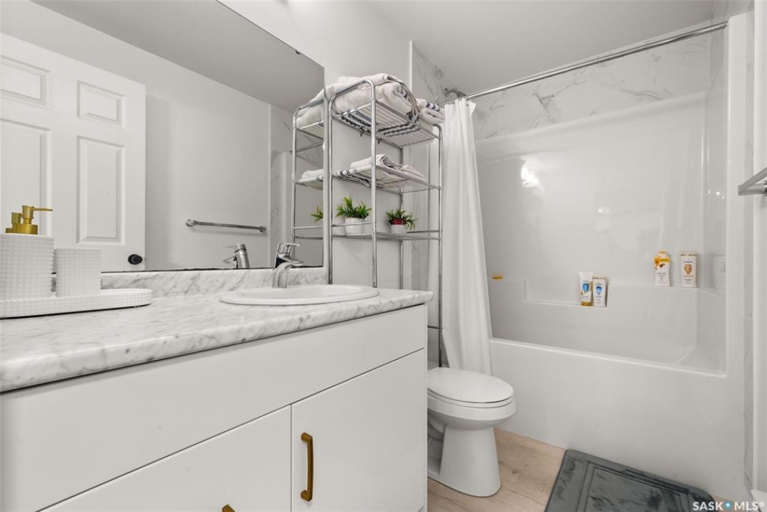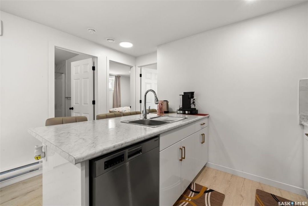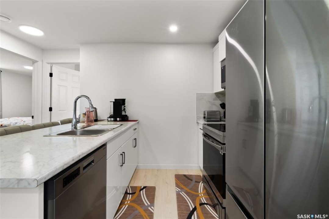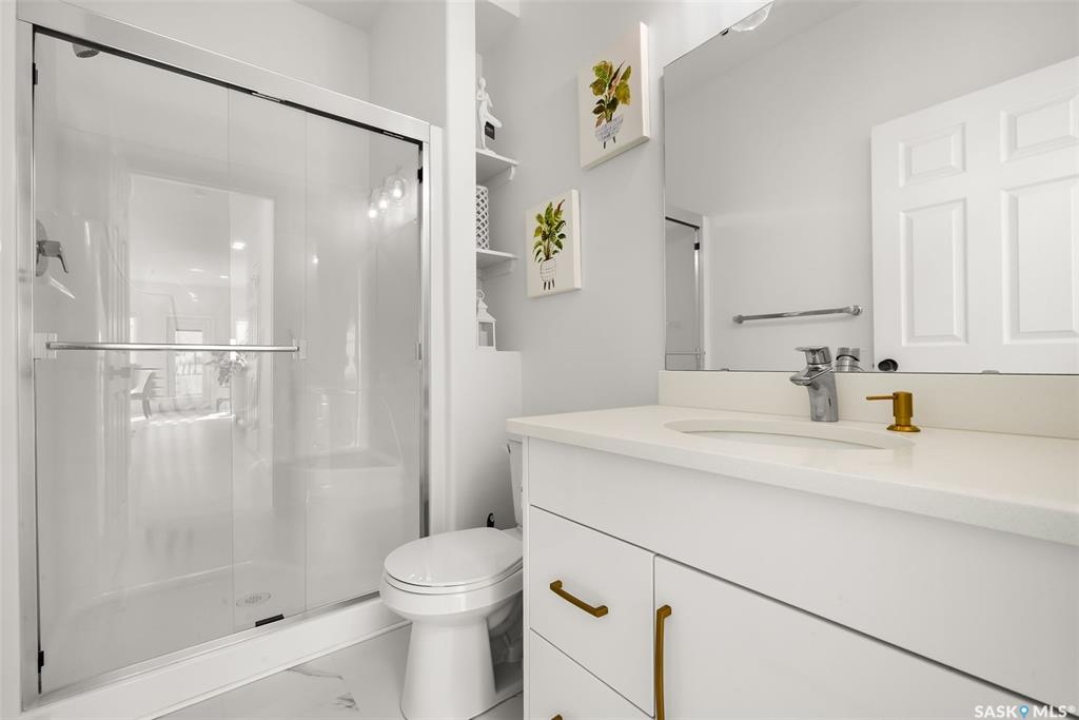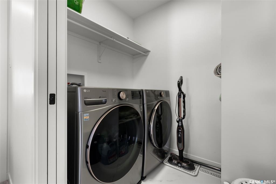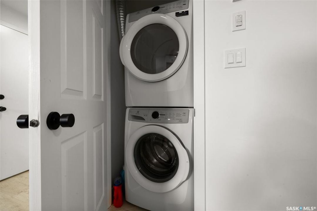 Welcome to 3226 Copeland Road in Eastbrook, Regina! This custom-built Crawford Homes 2-storey offers 6 bedrooms, 4 bathrooms, and a fully finished regulation basement suite—ideal for extended family, rental, or Airbnb income potential. The home's striking entrance opens to a grand foyer with an open-to-below design. The main floor features a bright living room accented by a stone feature wall with built-in shelving and fireplace, a spacious dining area, and a chef-inspired kitchen with quartz counters, ceiling-height cabinets, pot drawers, built-in soap dispensers, and premium stainless-steel appliances. A main-floor bedroom with adjacent full bath offers excellent convenience for guests or multigenerational living. Upstairs, the primary suite includes a walk-in closet and private ensuite, complemented by two additional bedrooms, a full bath, laundry, and a versatile bonus room. The regulation basement suite provides a separate entrance, modern kitchen, living room, 2 bedrooms, a 4-pc bath, and in-suite laundry. Designed for modern living, the home is fully smart-wired with WiFi switches, Ethernet ports in every room, conduit for solar, and whole-home surge protection. Energy-efficient upgrades include a tankless water heater, water softener, and a high-performance 2-stage furnace. The oversized insulated/heated garage impresses with a 50-amp EV fast charger, hot/cold water lines, drain pit, and extended driveway. Outdoor living shines with a huge composite deck, low-maintenance landscaping, and a fully fenced yard with paving stone patio. Every detail was thoughtfully crafted—from the extended deck and custom storage to the 200-amp panel for the main home and separate 100-amp panel for the suite—making this property a rare combination of style, functionality, and investment opportunity.