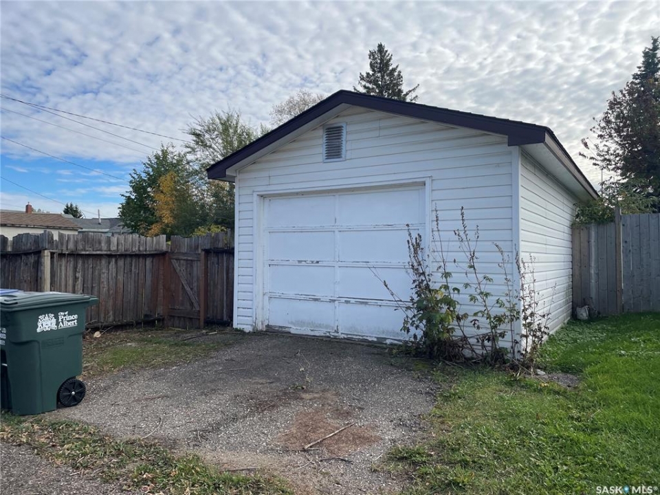 Charming 660 sq ft bungalow in East Flat, complete with a single detached garage and stucco exterior for lasting curb appeal. Inside you'll find a welcoming living and dining area, a functional kitchen with quality oak cabinets, and 2 bedrooms along with a three-piece bathroom featuring a Bathfitter shower. The basement offers a cozy family room, plenty of storage, laundry, and utility space. Features include central vac, a high-efficiency furnace, updated shingles, and appliances included. The backyard provides a spacious outdoor retreat to enjoy. Garage was built in 1983 according to city assessment.