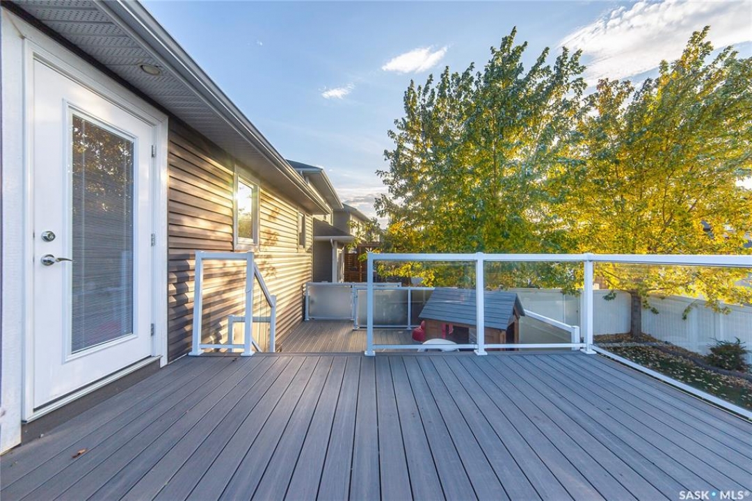 Welcome to 343 Langlois Way, a beautifully maintained 1,141 sq. ft. modified bi-level located in the highly desirable community of Stonebridge. This move-in ready home sits on a prime corner lot directly across from a tranquil pond and scenic walking trails, offering the perfect blend of comfort, functionality, and location. The main floor features a bright concept layout with a spacious living room, modern kitchen, and dining area that flows seamlessly to a stunning two-tier composite deck with glass railing—ideal for outdoor entertaining, morning coffee, or evening relaxation. The primary bedroom boasts a private 3-piece ensuite and walk-in closet, while two additional bedrooms and a 4-piece bath provide the perfect layout for families. The lower level is thoughtfully designed with a separate utility/laundry area for the main home, plus a fully self-contained legal 2-bedroom suite with its own entrance. Complete with living room, kitchen, four-piece bath, laundry, and dedicated electric hot water tank and extra storage under the stairs. The suite offers excellent income potential, a mortgage helper, or private space for multigenerational living, in-laws, or university/college students seeking independence with convenience. Outdoor living is maximized with full front and back landscaping, a fully fenced vinyl yard for privacy and low maintenance, patio space, and extra corner-lot parking. The attached 2-car garage is fully insulated and heated, equipped with cabinetry and workbench—perfect for hobbies, storage, or winter comfort. The extended driveway fits three additional vehicles, with added street parking for guests. Storage built under the deck, roughin work done for future hot water tub in the backyard. Close to schools, shopping, parks, and Stonebridge amenities, this property checks every box. Perfect for families or investors, this home is a rare find in one of Saskatoon's most sought-after neighbourhood.