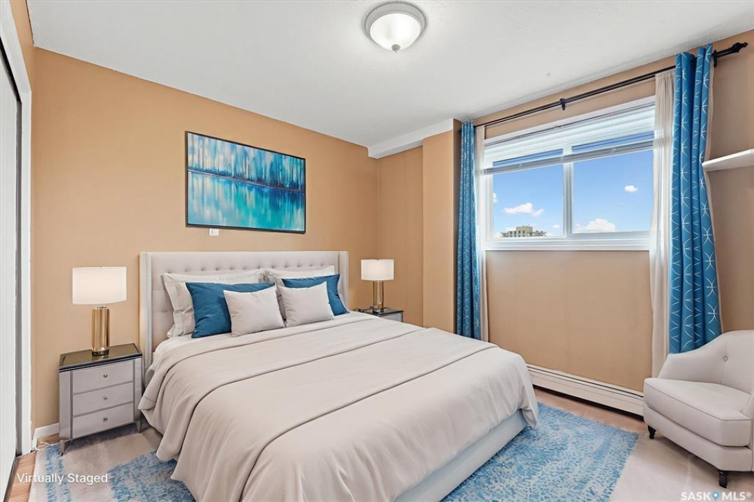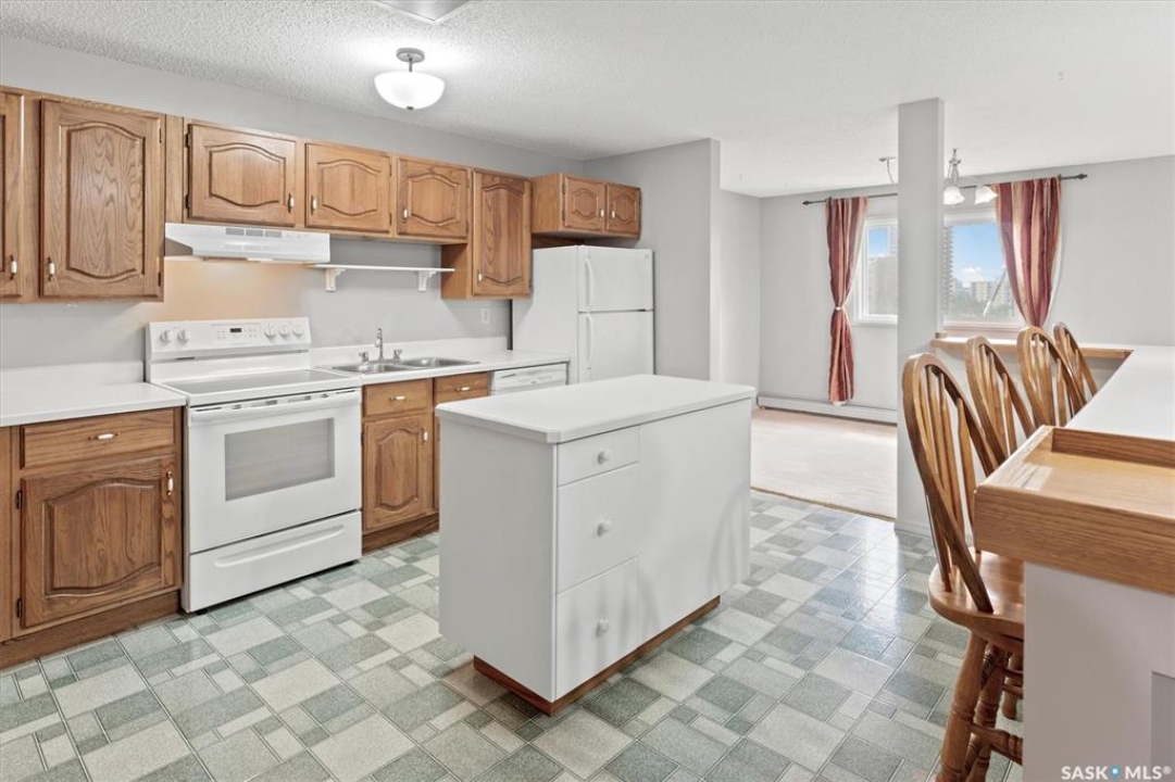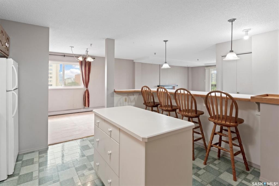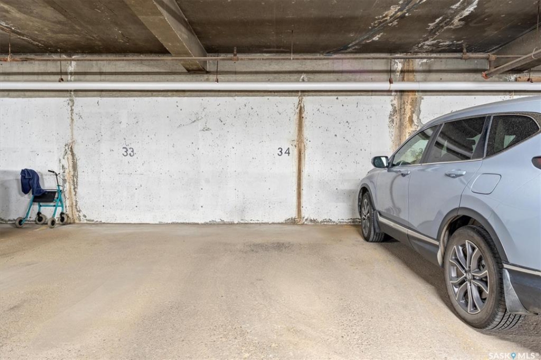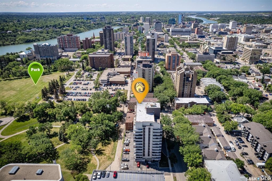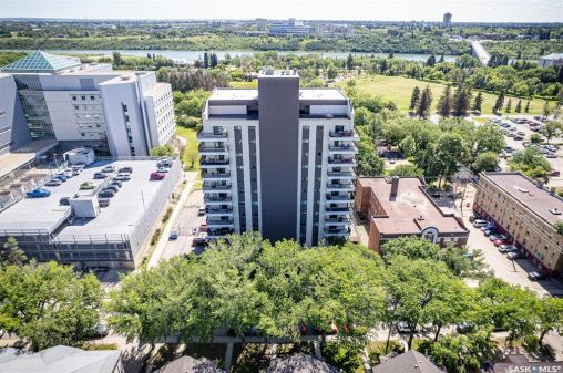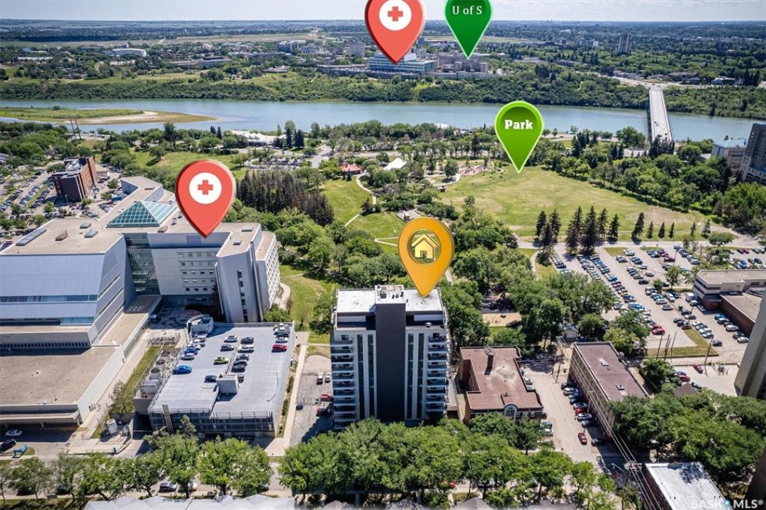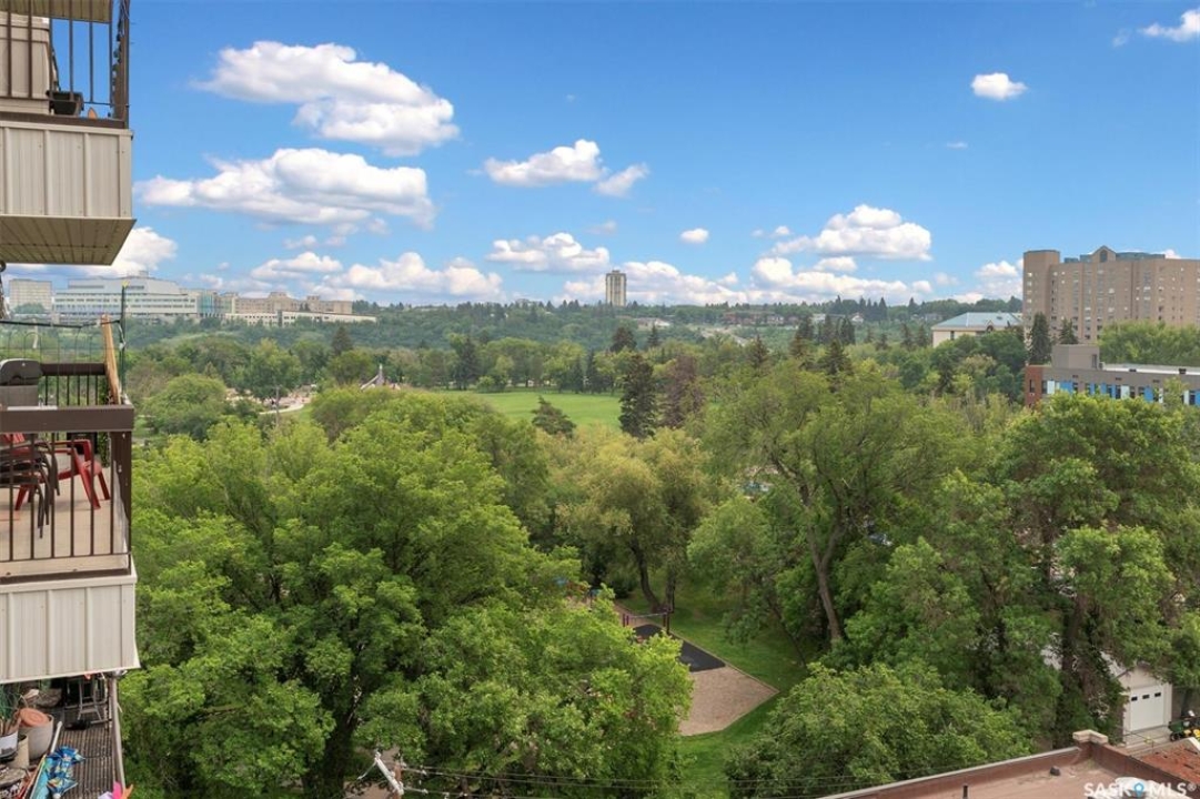 Welcome to Discovery Park! This bright and inviting 2-bedroom, 1-bathroom condo on the 7th floor backs onto scenic Kinsmen Park, offering comfort, convenience, and breathtaking and enjoy panoramic views of the city. The location is unbeatable—just steps from City Hospital and within walking distance to the University of Saskatchewan, downtown, and the picturesque river trails. Perfect for summer strolls or winter cross-country skiing. A rare find, this condo includes two parking spots: one heated underground stall and one owned, gated surface stall. Shared laundry on each floor with private storage (only 4 suites per floor). Access to an indoor pool, sauna, hot tub, fitness area, amenities room and library for relaxing or socializing. Vacant and ready for immediate possession—don't miss this opportunity to own a move-in-ready home in one of Saskatoon's most desirable locations.
