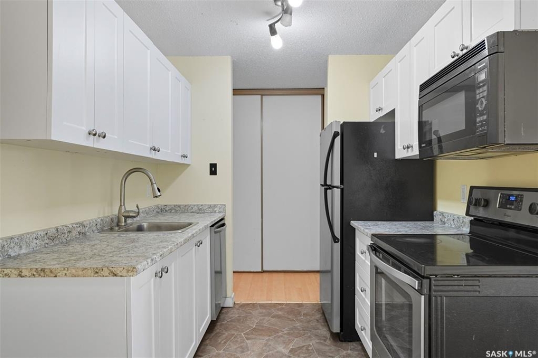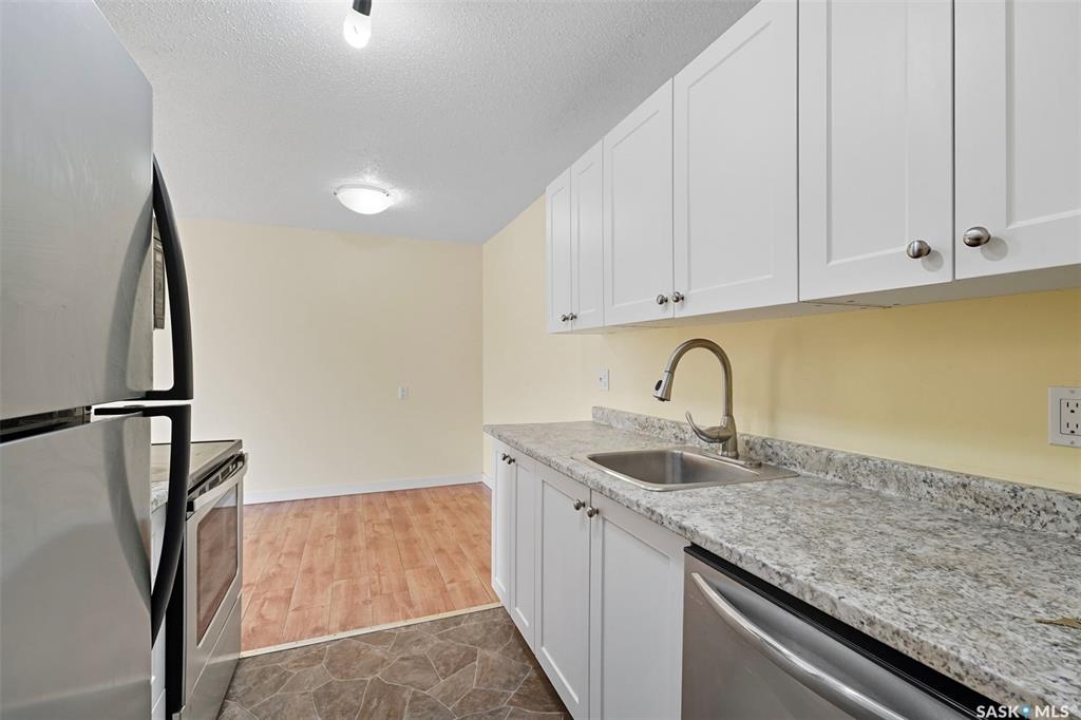 Welcome to 206-207C Tait Place. More affordable than renting! This well maintained condo building is centrally Located right off a park and golf course with numerous walking trails, direct access to 8th and the university. This cozy and bright unit on the second floor features three bedrooms (the den is currently used as the 3rd bedroom) and one bathroom. There is also In-suite laundry and extra storage on the balcony! Some recent upgrades include laminate flooring, newer kitchen and newer bathroom. Great value. Call to view today!