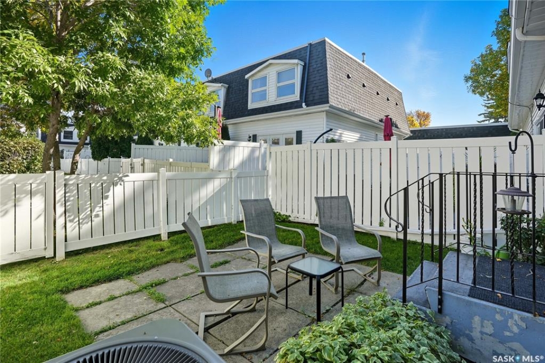 Welcome to this spacious 1,334 sq ft two-storey condo located in Regina's highly desirable Albert Park neighbourhood. The main floor is thoughtfully designed with the kitchen set just off the front entrance, along with a convenient 2-piece bathroom tucked away near the foyer. A generous formal dining room sits beside the kitchen, flowing seamlessly into the bright and spacious living room. From here, patio doors lead to your private yard, which backs green space and is only steps away from the outdoor pool—perfect for relaxing or entertaining. Upstairs you'll find three comfortable bedrooms and a 4-piece bathroom, offering plenty of space for family or guests. The basement features a utility/laundry area and a good-sized rec room that's ideal for a home gym, playroom, or media space. This unit also comes with a single detached garage for secure parking and extra storage. Situated close to schools, restaurants, grocery stores, and countless other amenities, this property also offers quick access to major roadways, making commuting around the city a breeze.