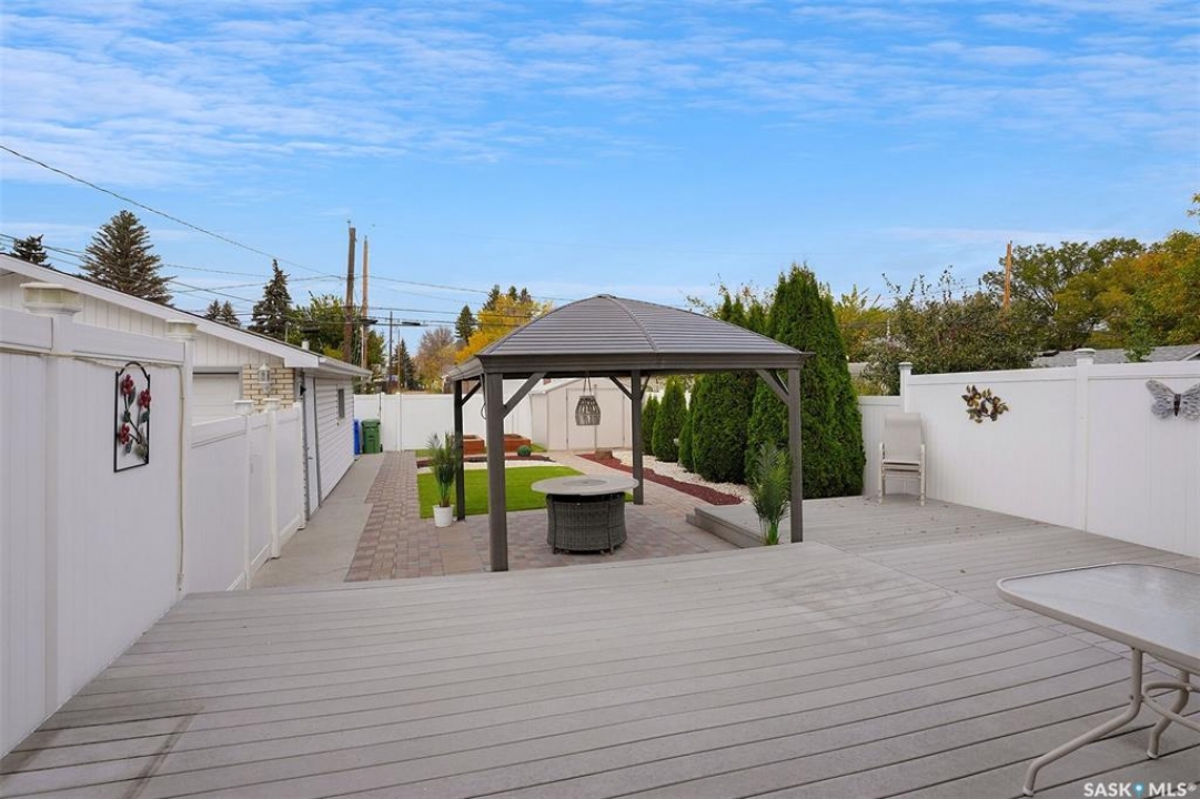 Fantastic Parliament Place Location! Welcome to this very well-maintained 3-bedroom, 2-bath bungalow in the desirable community of Parliament Place. The home features newer windows and an incredible low-maintenance backyard complete with a gazebo, firepit, expansive maintenance-free deck, PVC fencing, and three sheds. A large double heated garage offers plenty of space for vehicles and storage. Inside, you'll find an upgraded main bathroom, a kitchen with a walk-in pantry, and a fully developed basement. The lower level boasts a den, a massive rec room with a wet bar, a 3/4 bathroom, and a well-designed laundry room with cabinets and a laundry sink. This property combines comfort, style, and functionality—perfect for families or anyone who loves to entertain.