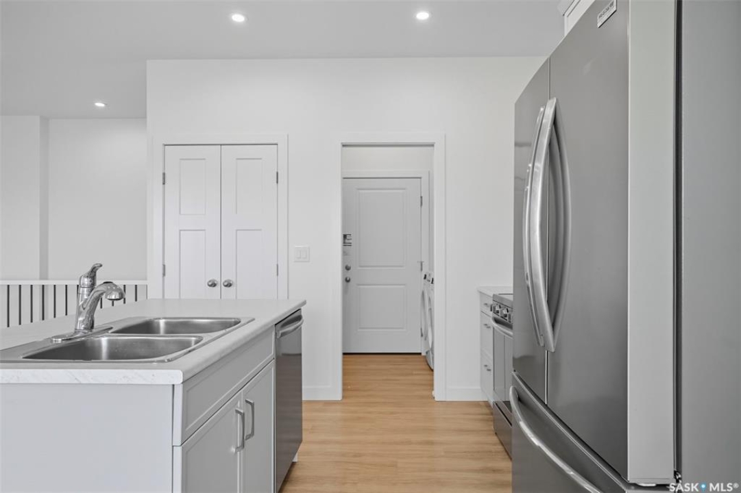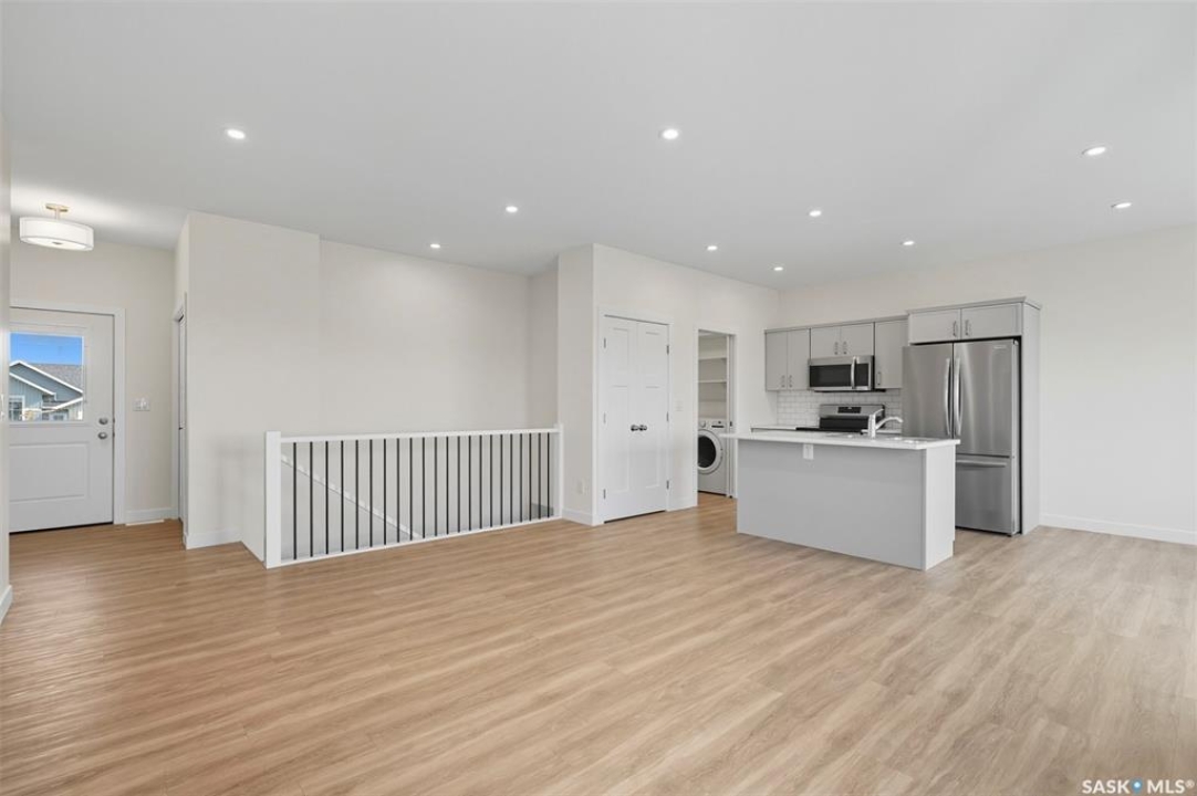 Welcome to 92 Diefenbaker Avenue in Hague, SK, built by a local developer and completed in 2024. Hague is 10 minutes past Warman and a 25-minute drive on a divided 4 lane highway to Saskatoon. Hague is vibrant community including a K-12 school, hockey and curling rink, spray park, outdoor rink, local grocery, hardware stores, pharmacy, daycare, and more. This home has 5 bedrooms, and 3 bathrooms. Upstairs, the open concept living area flows seamlessly from living room to dining area and kitchen, making it perfect for family gatherings and entertaining. Brand new basement development includes den, wet bar, 2 bedrooms, and 3 pc bathroom. Large windows downstairs provide abundant natural light. The house includes 1 year of mechanical, 4 years of water penetration, and 9 years of structural warranty coverage. In addition, all appliances include 4 years of comprehensive warranty. All basement development was completed with permits and inspected by TSASK and local building inspector. The backyard backs onto a field, providing beautiful sunsets and a sense of country living with the benefits of town amenities. A concrete driveway, automatic garage door opener, and direct access from garage to house provide convenient access. Schedule your showing today.