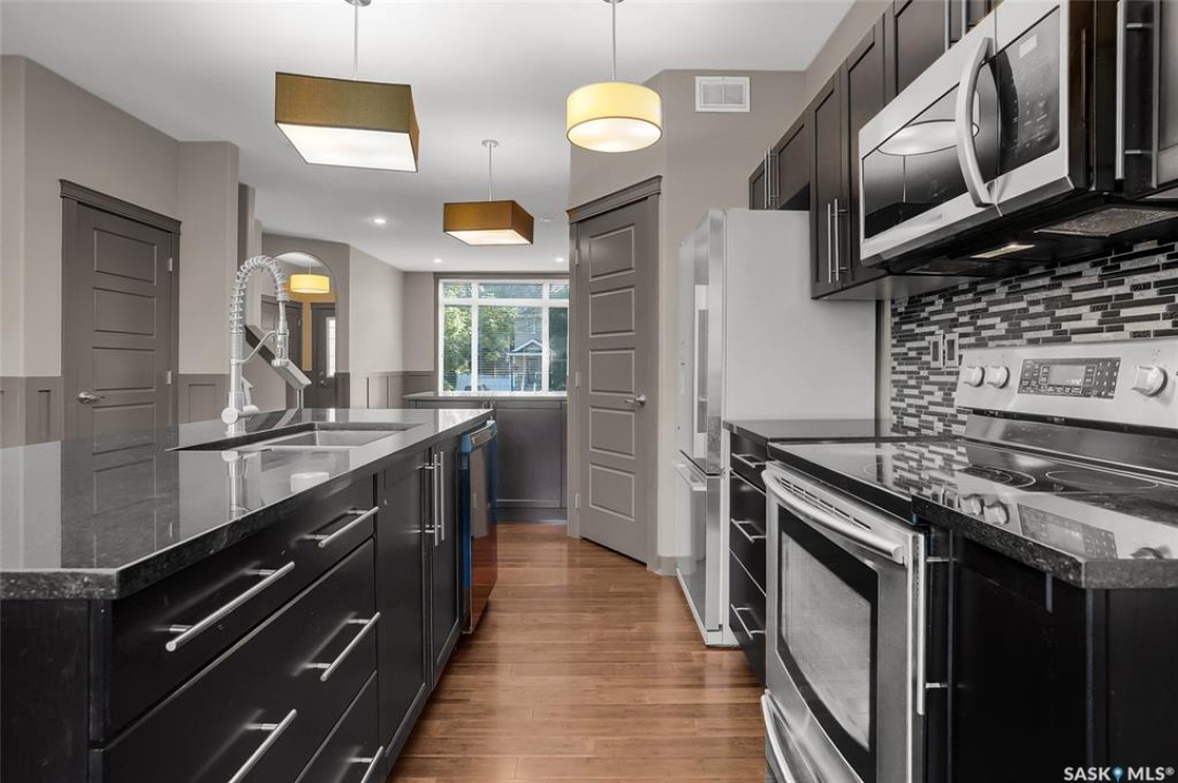 Well-appointed Home in the sought-after neighbourhood, Buena Vista, just minutes from 8th St. and Downtown. Large windows to allow natural light, this inviting two-storey offers a smart layout with a welcoming living room and a second main-floor family space ideal for entertaining or creating memories. Upstairs you'll find three generous bedrooms, including a primary suite with walk-in closet and ensuite, plus the convenience of laundry right where you need it. The fully finished basement, complete with a separate entrance, extends your living space with a large family room, two additional bedrooms, and a full bath. With a new water heater, double detached garage, and move-in ready appeal, this home is designed for families who want comfort, function, and location all in one.