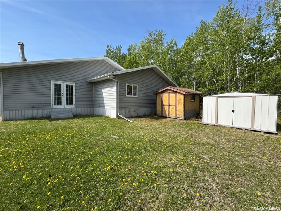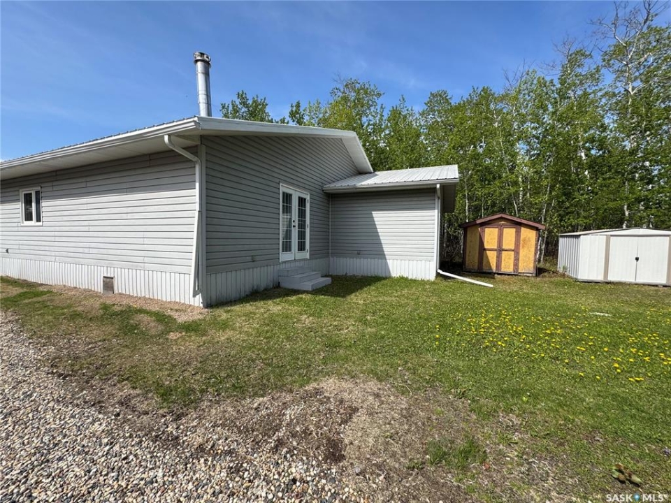 Year round lake living at Good Spirit Acres SK. Welcome to 103 Meadow Brook RD. This 1240 square foot home was built in 2003 and has had many recent updates (flooring, paint, updated bathrooms). Driving up to the property, you will notice an ample amount of parking space regular and recreational vehicles. The exterior of the home is vinyl siding, pvc windows, and metal roofing. Entering the home, you will be welcomed to a large porch area. A few steps will take you to the extra large bright kitchen with lots of cupboard and counter space. The fridge and stove are included. Enjoy meals in the dining room portion of the kitchen with direct views of the kitchen and the living room. The living room features a wood fireplace (needs to be certified at buyers cost) and direct entry to the back yard. Down the hall you will find three excellent sized bedrooms including the master bedroom featuring updated 3-piece ensuite. The extra large bonus room can act as an office, home gym, or whatever your lifestyle desires. The updated main 4-piece bathroom finishes off the main floor living space. The utility room houses the electric water heater, 100 amp panel box, water softener/iron filter (rented), and well equipment. The home is heated by electric baseboards controlled individually. Water comes from a shared well with the neighbour. Septic is a 1000 gallon holding tank that needs to be pumped out ($75 per pump out as of June 2025). The property lot is owned and taxes are under $2000 for 2024. Good Spirit Lake is minutes away with boat launch, beaches, camping, year round gas/c-store, and numerous year round activities. Yorkton 30 Minutes, Regina 2.5 Hours, Saskatoon 3.25 Hours, Winnipeg 5 Hours.