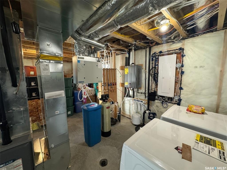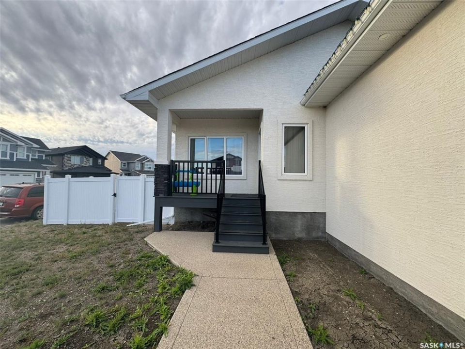 Welcome to 5400 E Boyer Bay! a beautifully maintained bungalow in the desirable Greens on Gardiner community. A front veranda adds warm curb appeal & welcomes you into a beautiful home where natural light fills each room. Built in 2022 with signature specs by Crawford Homes, this 1,337 sq ft home features a bright and functional open-concept layout with vaulted ceiling, perfect for modern living. The main floor showcases luxury vinyl plank flooring throughout and a seamless flow between the kitchen, dining, and living area with electric fireplace. The contemporary kitchen boasts sleek finishes, ample maple cabinetry, granite countertops, tile backsplash, and is natural gas–ready, offering flexibility for future stove upgrades. Stove, fridge and dishwasher can be operated with the help of wifi through app. Backyard can be accessed through kitchen and master bedroom. Three spacious bedrooms include a primary suite with a 4-piece ensuite and walk-in closet. Both the bathrooms have maple cabinets with granite countertops . The additional main bath is tastefully finished with vinyl flooring and modern fixtures. A double attached garage with direct entry provides ample parking and storage, with a natural gas line roughed-in for future heating upgrades, an exposed aggregate driveway, and a convenient side door for extra accessibility. Additionally CAT 5e network wiring throughout for modern connectivity. The basement is framed, insulated, and poly-ed, with rough-in plumbing and electrical in place—would not take much to complete with your own ideas. Fenced with a 12ft gate in the back that gives access to the back alley and opens to RV parking options. Situated on a 7,074 sq ft lot in a family-friendly neighborhood close to parks, walking paths, and schools, this home combines comfort, space, and an excellent location. A must-see!
