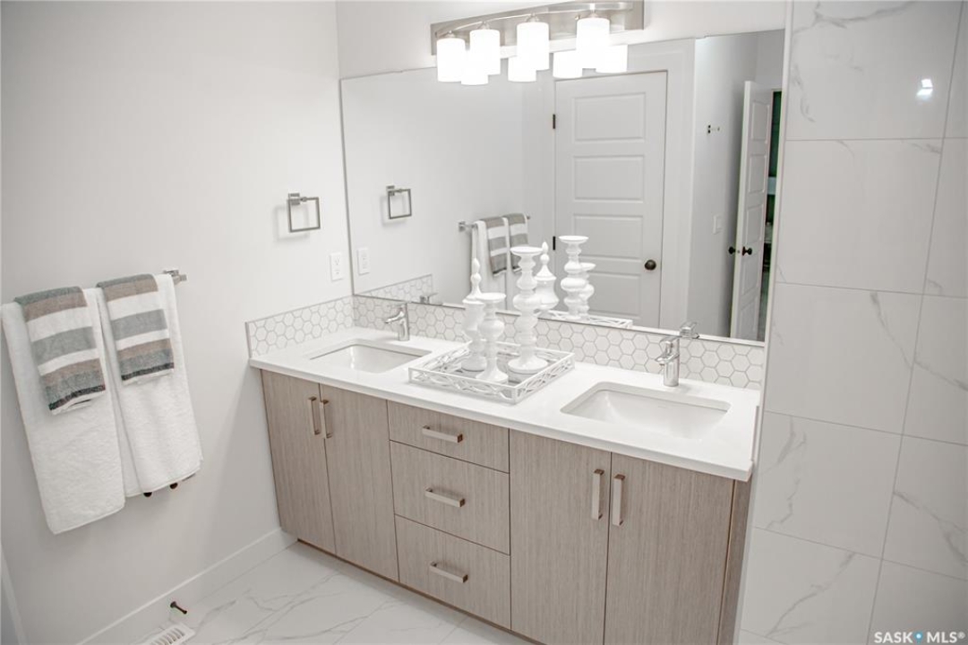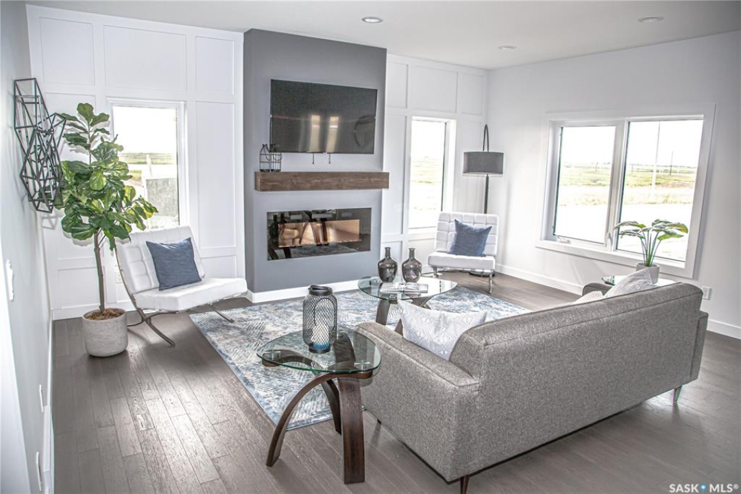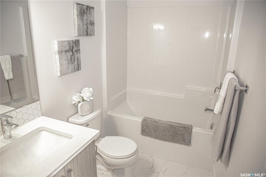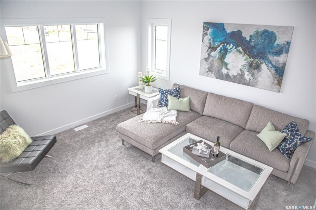 Introducing the stunning 1909 sq. ft. Hudson model, boasting impressive curb appeal with Hardie Board accents, board and baton gables, and horizontal vinyl siding. The front yard is fully landscaped with sod, a concrete walkway, and a driveway leading to the attached 22' x 22' double garage. Step inside to a spacious foyer, with an office conveniently located off the entryway and a two-piece bathroom. The main living area is expansive and open—just look at the size of that living room! The kitchen features ample cupboard space, quartz countertops, and a large built-in island with breakfast bar seating. Upstairs, you'll find a bonus room, three large bedrooms, and two full bathrooms, including a master en-suite. The home is adorned with luxury vinyl plank flooring throughout the main living areas, offering both durability and aesthetic appeal. An optional upgrade is available for separate entrance with a two-bedroom legal suite, which includes a natural gas fireplace and separate gas and electrical meters. GST & PST are included in the purchase price, with any applicable rebate to the builder. Please note that renderings are intended to be as close to the actual finishes as possible but should be considered artistic representations. Additional layout options are available for this model. Photos are from a previous 3-bedroom Hudson show home, so some fit and finish changes may apply. Please NOTE: Appliances and the F/P are not included in the price.
