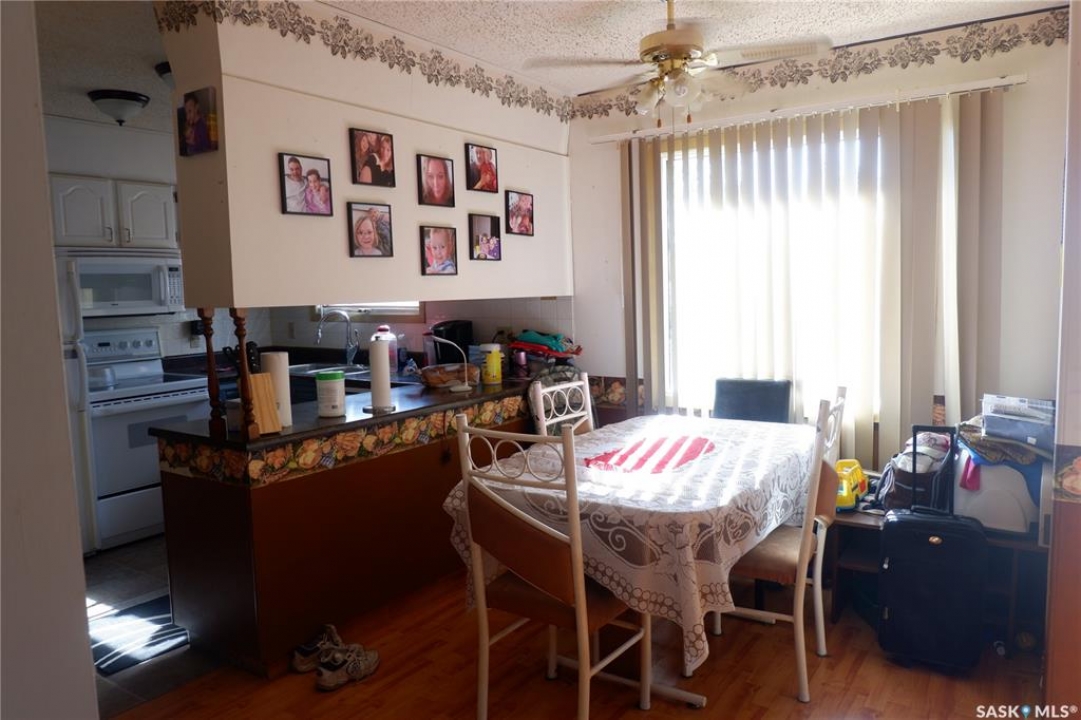 Located in the Town of Rockglen, this home is situated on the side of a hill. It features two bedrooms, a spacious living room, dining area, kitchen, and main floor laundry. The basement is developed and includes a family room, a three-piece bathroom, a den that was previously used as a bedroom, and additional storage space. There is a beautiful view of the hills from the front of the house. The property has a single attached garage for storage needs, along with an older garage located at the top of the hill.
