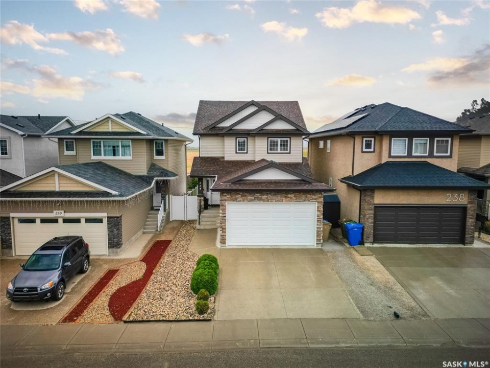 Welcome to this stunning and beautifully maintained two-storey home with 4 bedrooms and 4 bathrooms in the highly desirable Edgewater community. Perfectly situated to capture open prairie views, this home blends modern elegance with everyday comfort. The open-concept main floor features a stylish kitchen with quartz countertops, ample cabinetry, and stainless steel appliances. The spacious dining area overlooks the landscaped backyard with access to the deck—ideal for relaxing or entertaining. The inviting living room is warmed by a sleek electric fireplace, while convenient main floor laundry and a 2-piece bath complete this level. Upstairs, the space offers three generously sized bedrooms, including a luxurious primary suite with a walk-in closet and a 3-piece en-suite, as well as a well-appointed 4-piece main bathroom. The fully finished basement features even more space with a large rec room, an additional bedroom with ample closet space, a 3-piece bath, and extra storage. Enjoy the comfort of a heated and insulated double attached garage with direct entry. The fenced yard backs onto open fields for privacy and spectacular sunset views. Located close to parks, schools, and all north/northwest amenities—this exceptional home offers the perfect blend of style, space, and serenity.
