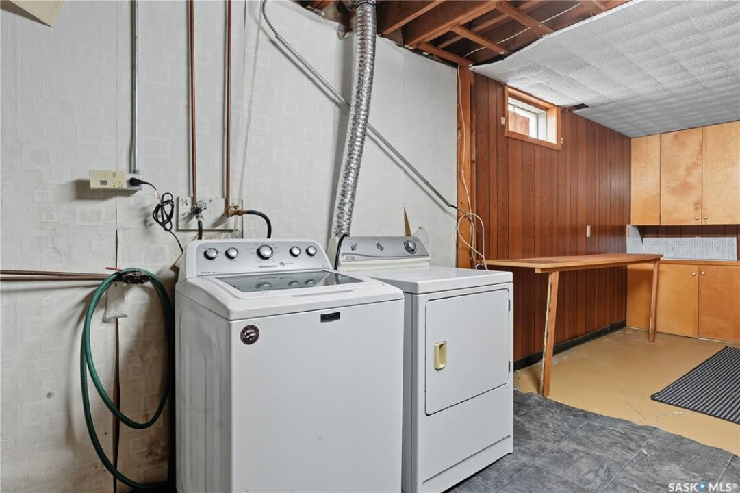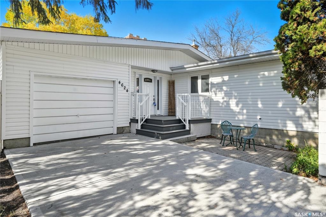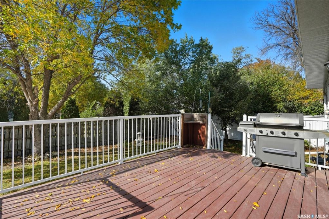 Excellent location in south Regina's Albert park neighbourhood. Over 1300 sq/ft bungalow features sharp street appeal with a combination front lawn and courtyard. Upgraded composite front step with aluminum railing. Loads of potential! Functional layout with a large entry with direct access to single attached garage. Living room features a wood burning fireplace with brick accents and patio doors to private and mature backyard. Kitchen and dining room combination with loads of natural light. 3 spacious bedrooms on the main floor with a 2 piece ensuite off the primary bedroom. Upgraded windows throughout. Basement is developed with a rec-room with bar area and second fireplace. Tons of storage plus a den space that was used as a guest bedroom (no window). Private backyard with raised garden beds, mature trees and shrubs and large deck. Close to all amenities of the south end.