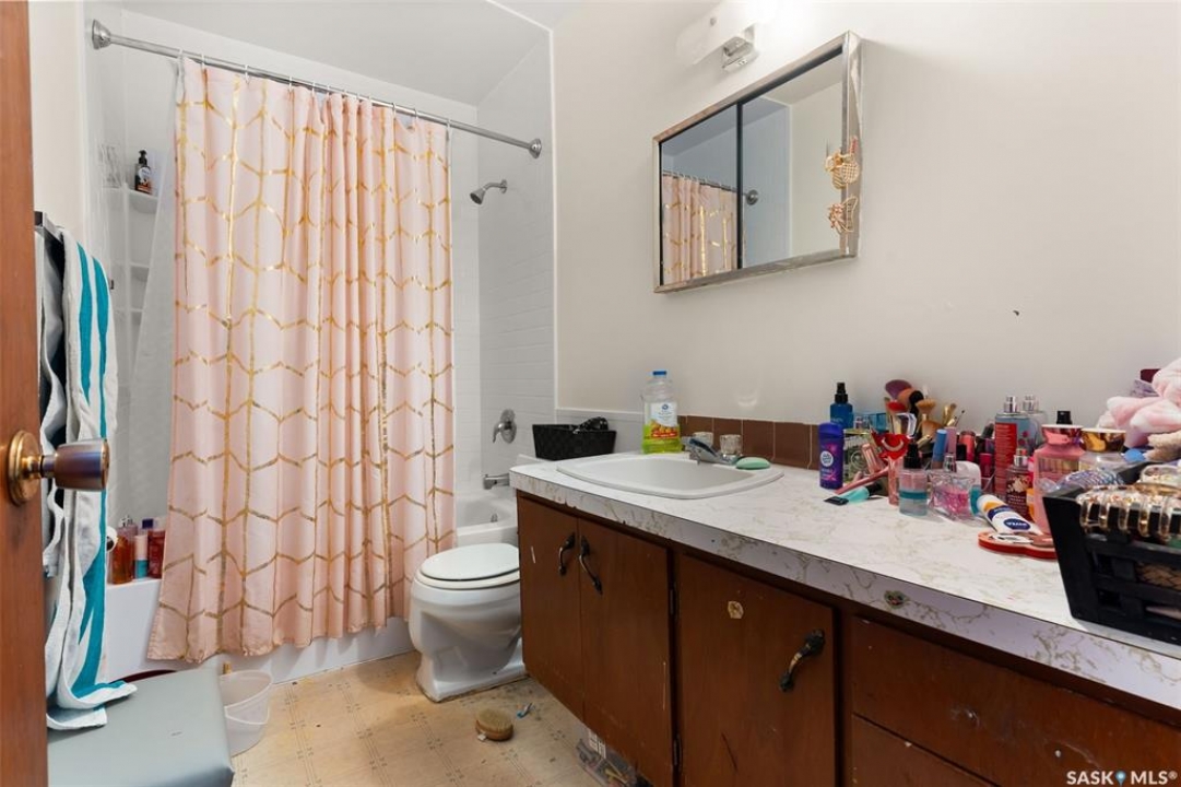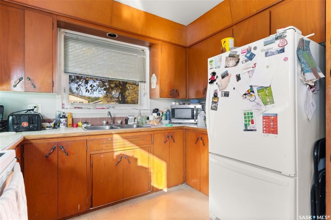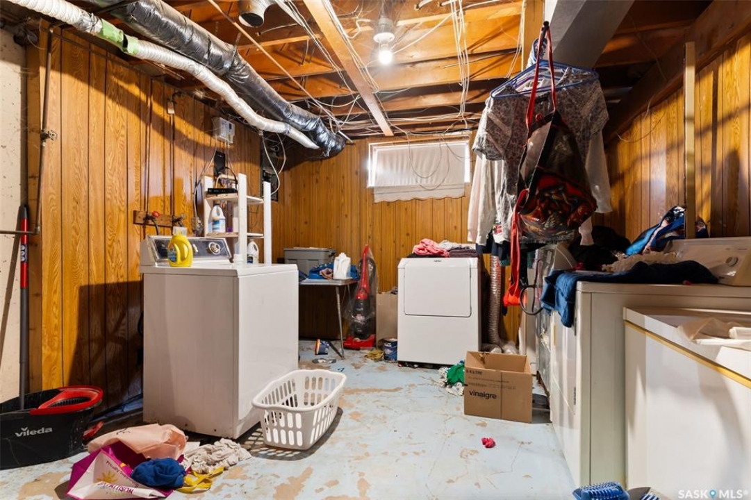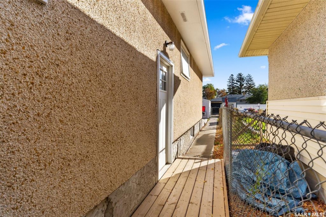 This solid duplex offers a fantastic opportunity for both homeowners and investors, featuring four bedrooms and two bathrooms. Unit is to be sold with attached property at 1435 Rupert Street (MLS #SK020171) Seller will only accepted offers for both sides. This side presents a blank canvas for customization, allowing you to choose your own flooring and paint to suit your style. The cabinetry is solid, and most of the upstairs windows have been replaced (excluding the living room). The main bathroom also features a new tub surround, and three well-sized bedrooms complete the upper level. The basement is partially finished, offering a large bedroom and a four-piece bathroom, along with full insulation and a newer panel. (Please note that basement bedroom windows may not meet egress standards). The property is well-maintained with newer shingles and excellent utility. The backyard is fully fenced, with a chain-link divider separating the two yards, and ample level parking adds to the convenience. Please contact your Realtor for more information on rental numbers or personal tour.