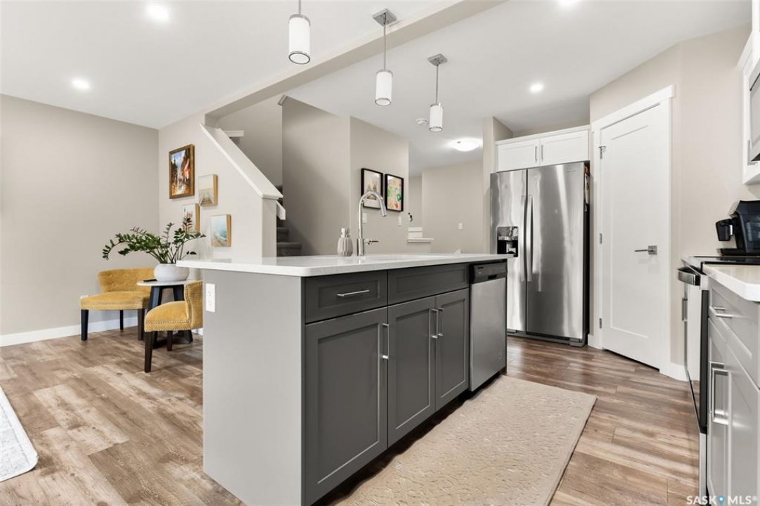 Welcome to 3223 Green Brook Road, a beautifully maintained semi-detached home located in the family-friendly neighbourhood of Greens on Gardiner. Built in 2020, this two-storey offers 1,535 square feet of thoughtfully designed living space with a bright and inviting layout. The main floor features modern vinyl plank flooring throughout and a welcoming living room filled with natural light from oversized windows overlooking the backyard. The kitchen is the heart of the home with timeless white cabinetry, quartz countertops, a stylish tile backsplash, stainless steel appliances, and a large island with seating. The adjoining dining area flows seamlessly to the backyard deck and fully fenced yard, creating the perfect setting for family gatherings and summer entertaining. A convenient two-piece bathroom completes the main level. Upstairs, you'll find a versatile bonus room ideal for a home office or cozy lounge, along with a spacious primary suite that includes a walk-in closet and a four-piece ensuite. Two additional bedrooms, a full bathroom, and a dedicated laundry area provide comfort and convenience for the whole family. The basement is open for future development, offering plenty of potential to expand your living space. This home also includes a double attached garage with concrete driveway. The fully fenced yard with deck and lawn is ready for outdoor enjoyment, while the location offers easy access to parks, schools, shopping, and all east-end amenities. With its modern finishes, practical layout, and excellent location, this property is move-in ready and a wonderful place to call home.
