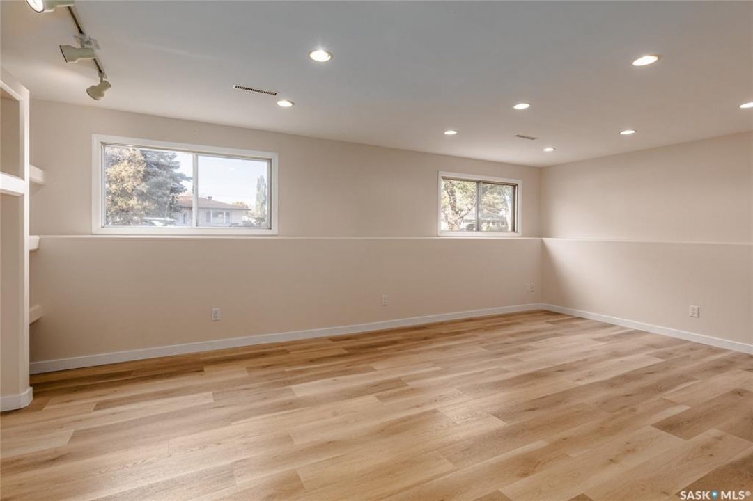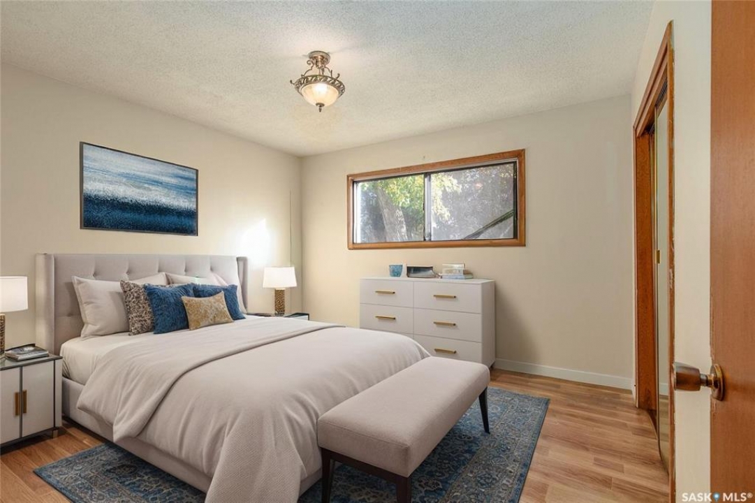 Welcome to this inviting 3-level split home in the highly desirable Palliser area, offering a thoughtful layout, modern updates, and excellent proximity to schools, recreation, and amenities. Step inside to find an eat-in kitchen that has been refreshed with brand new white cabinetry, new countertops, and new dishwasher and microwave hood fan. Also included are the side-by-side SS fridge/freezer, SS double oven, washer and dryer (all appliances included “as is”). Fresh paint on the main floor, paired with new vinyl plank flooring throughout the entire home, gives the interior a clean and modern feel. The spacious living room has a large picture window. Upstairs, you'll find three comfortable bedrooms (freshly painted) and a 4-pc bathroom with tiled tub surround, while the finished basement provides extra living area perfect for a family room, playroom, or office, plus plenty of additional storage. Central air conditioning ensures seasonal comfort. The property sits on a large, fully fenced lot with alley access and a swing gate wide enough for vehicle entry. A garden area is ready for your green thumb, and the south-facing covered deck is ideal for relaxing or entertaining in every season. Parking is never an issue with an oversized single-car garage, off-street parking, and RV parking. Location is a standout feature — this home is just minutes away from the Kinsmen Sportsplex, SASKPOLY Tech, skateboard park, ball diamonds, walking paths, churches, and elementary schools and a high school. This property truly blends practicality with lifestyle, offering move-in ready updates, flexible living spaces, and an unbeatable Palliser location. Some photos have been stagged.