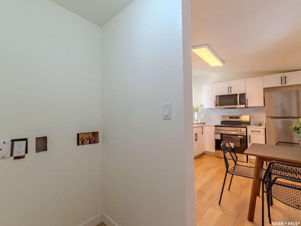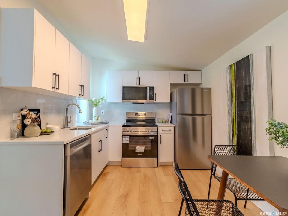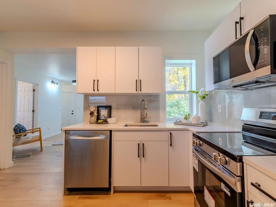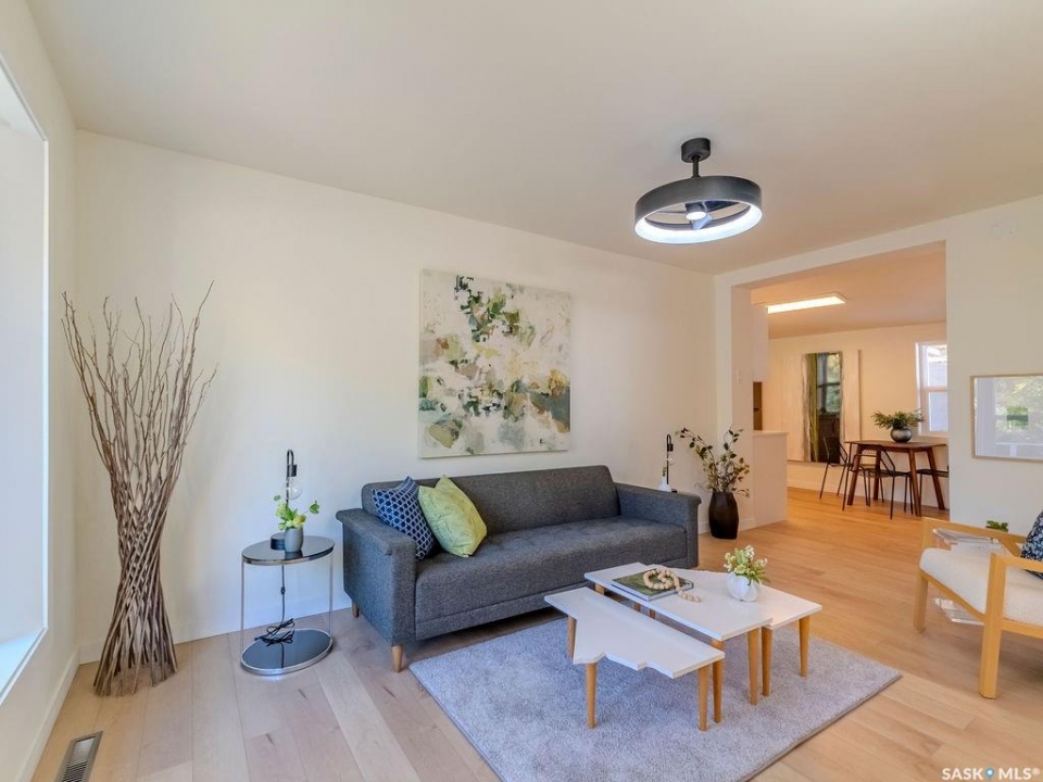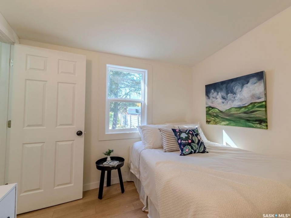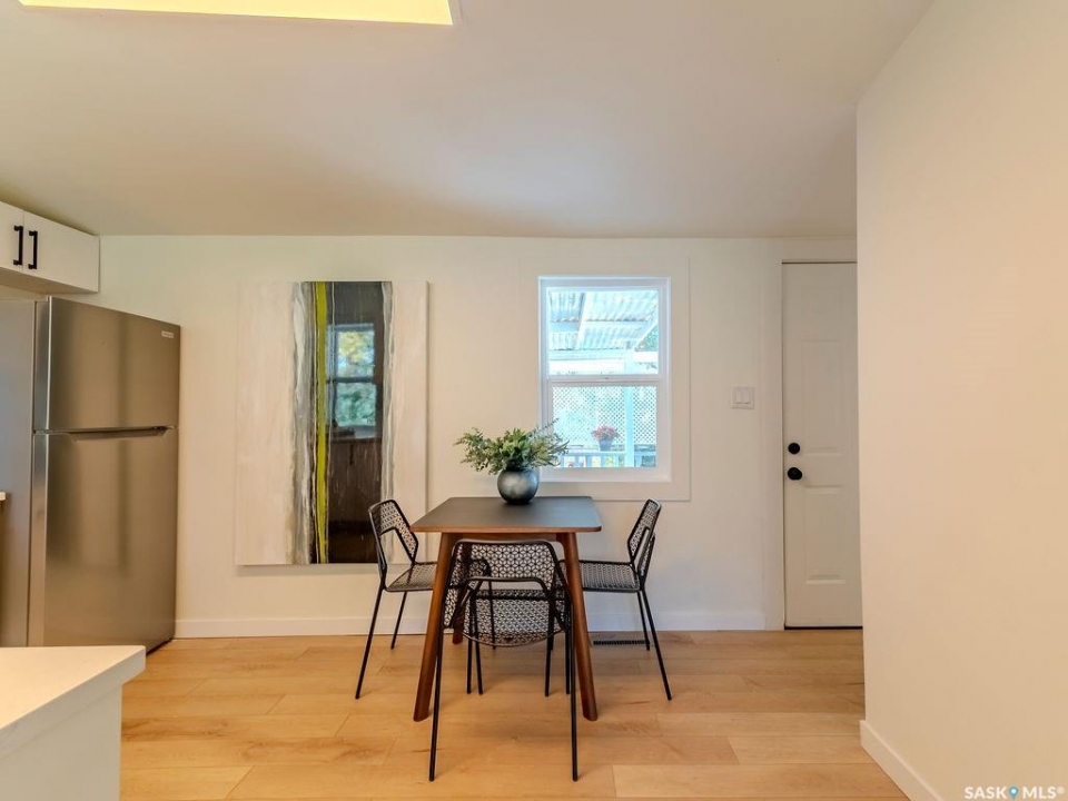 Welcome to 1423 6th Ave N, a cozy renovated home on a desirable corner lot. This property features 2 bedrooms, 1 full bathroom, and a bright, sun-filled living space with large bay windows. The modern kitchen with new appliances adds both style and functionality. Located in a well-established neighborhood, this home offers excellent access to downtown, Circle Drive, the industrial area. Elementary schools, and the river—within walking distance. The mature backyard is a true highlight, with apple and cherry trees, grape vines, birdhouses, a deck with a built-in bench (partially enclosed), and plenty of room for outdoor enjoyment. With two-street access and a spacious yard, there's strong potential for a future garden suite or additional development check with city permits. This charming home is perfect for first-time buyers, investors, or anyone looking for a centrally located property with great possibilities.