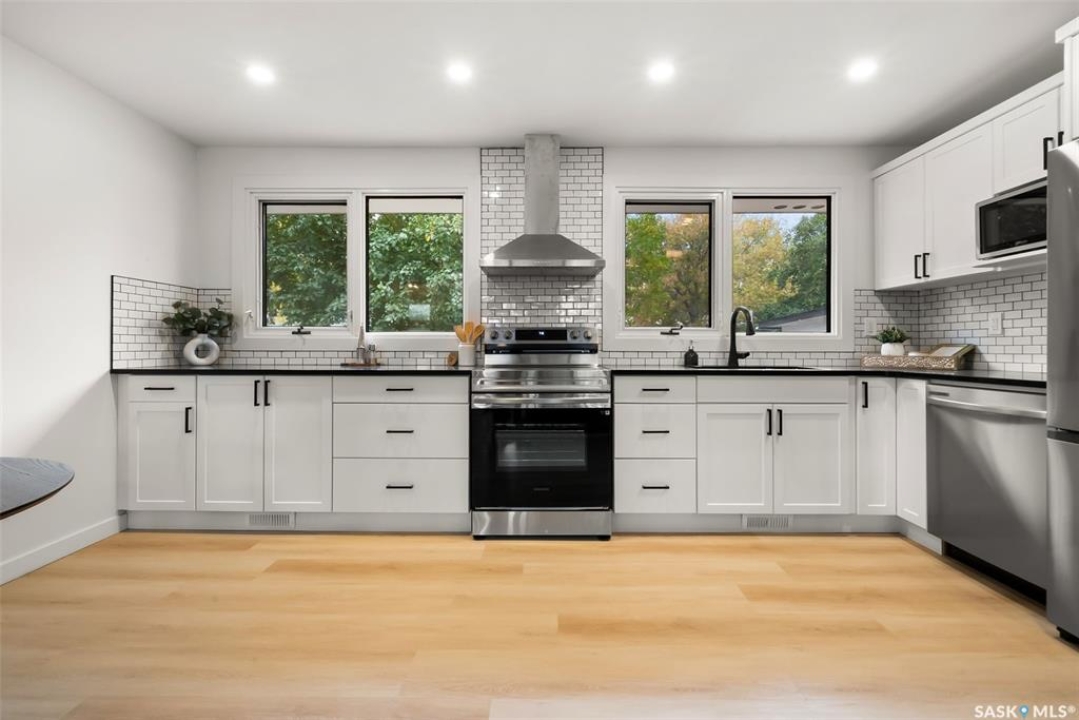 Welcome to 19 Elmview Road in Uplands! This fully renovated bungalow blends modern style with functional living in a mature, family-friendly neighbourhood. Offering 1,030 sq. ft. above grade plus a fully developed basement, the home has been thoughtfully upgraded inside and out so you can move right in and enjoy. The main floor showcases bright, open living spaces finished with durable vinyl plank flooring throughout. A spacious living room flows into the updated kitchen and dining area, featuring refreshed cabinetry, quartz countertops, and fixtures. The layout includes a generous primary bedroom, two additional bedrooms on the main floor, and a fully renovated 4-piece bath with contemporary finishes. Downstairs, the beautifully finished basement provides a huge recreation room, an additional bedroom, and a modern 4-piece bathroom—ideal for guests, family living, or entertaining. Every space has been updated for today's lifestyle, offering flexibility and comfort. Outside features a large 5,934 sq. ft. lot that's fully fenced, landscaped, and complete with patio area, mature trees and above ground garden area. Notable updates include new flooring, paint, bathrooms, kitchen finishes, mechanical systems, and more. This home truly delivers the feel of a new build in an established area!