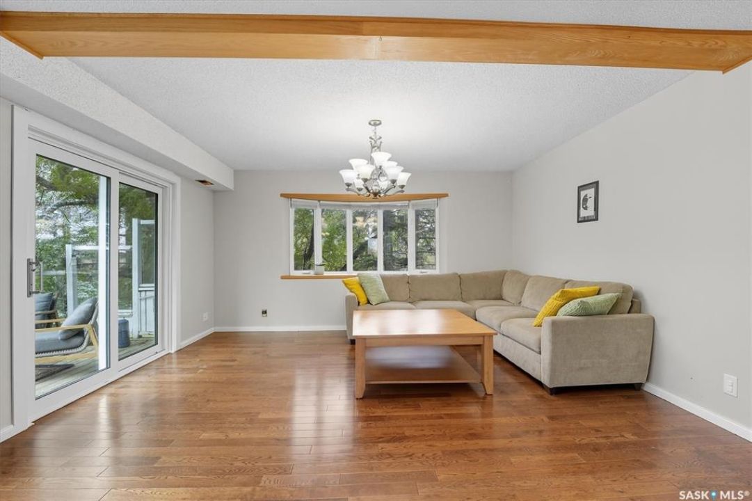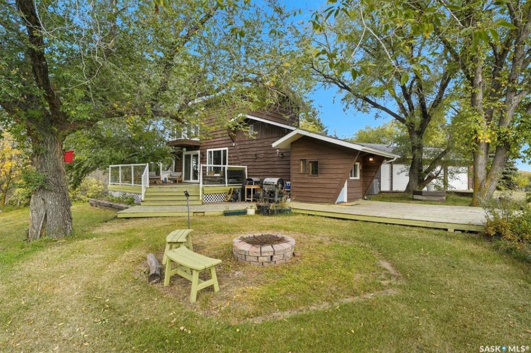 Acreage living just 7 minutes from Saskatoon! Welcome to 203 Spur Way in Saddle Ridge Estates — a charming 1.5-storey home on 4.99 acres in the rolling hills. This 4-bedroom, 2-bath home offers warmth, functionality, and space to grow — inside and out. The main floor features hardwood floors, a spacious kitchen with quartz counters, soft maple cabinetry, and matching appliances. The living room flows to the deck through patio doors, making entertaining a breeze. Cozy up downstairs by the gas fireplace, or retreat to the stunning loft bedroom via the oak spiral staircase, complete with Juliette balcony. Enjoy updated central A/C, windows and front door (all within the last 2 years), and a triple attached garage. The acreage includes a barn with box stall, water, tack room, and loft — perfect for horses, storage, or a studio. Now for the showstopper: a thoughtfully planned food forest with 25+ varieties including apple, plum, cherry, pear, grape, haskap, raspberry, kiwi, seabuckthorn, hazelnut, herbs, strawberries, and even asparagus. Over 70 haskaps, 65 asparagus, and dozens of fruit trees, all mulched, edged, and connected by a line watering system. A fenced 200m � no-till garden produces enough vegetables for full seasonal self-sufficiency. Serviced with city water, septic mound, Fiber Optic internet with Prairie Crocus, school bus access to Clavet, and fully paved development - this property offers a rare blend of rural privacy and urban access. Acreages like this — with natural abundance, modern comfort, and easy commuting — are truly one of a kind.