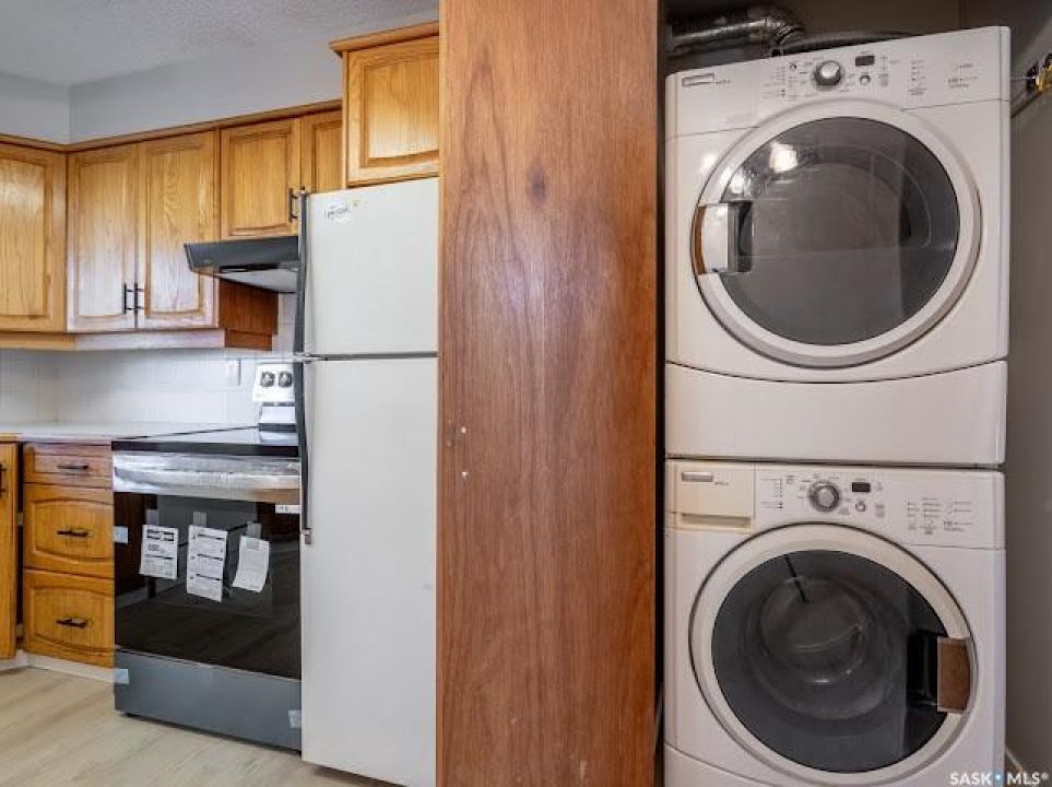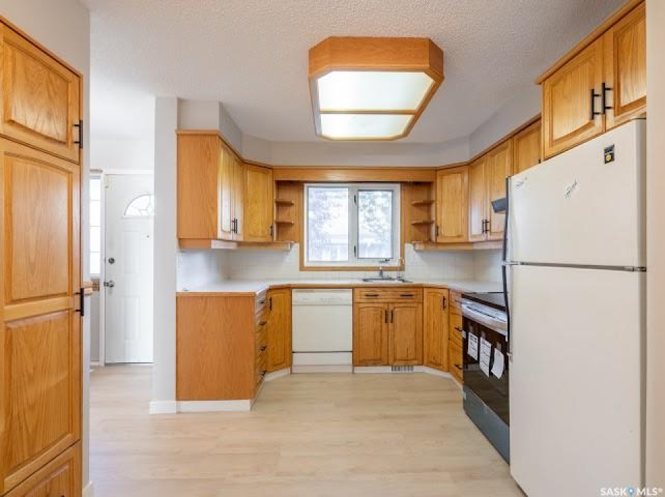 Discover the perfect blend of modern updates and effortless living in the heart of Regina's desirable South End. This beautifully renovated 1,591 sq ft townhouse in Albert Park Estates is a turn-key opportunity, offering a lifestyle of comfort and convenience from the moment you arrive. Step inside to a main floor illuminated by natural light and featuring brand-new, contemporary flooring that flows seamlessly throughout. The inviting living room is centered around a cozy gas fireplace, while patio doors open to a generously sized, fenced patio—your private oasis for summer entertaining. The adjacent dining area, with its classic built-in hutch, is perfect for gatherings. The kitchen is equipped with a sleek new oven and range hood, making meal preparation a pleasure. Upstairs, the home offers a peaceful retreat with three well-proportioned bedrooms. The primary suite is a true haven, featuring double closets and a fully renovated private two-piece en-suite. A second updated five-piece bathroom serves the additional bedrooms, ensuring a fresh and pristine environment for all. The ultimate in convenience is found in the laundry and utility room, which provides direct, interior access to both of your heated underground parking stalls and a separate storage locker. The unfinished portion of the basement presents a blank canvas for future customization. This home is not only a pleasure to show but also offers exceptional peace of mind, bolstered by a new furnace installed in 2022. This major update, combined with condo fees that include heat and water, ensures remarkable efficiency and predictable monthly costs for years to come. Don't miss this opportunity to own a move in ready condo in a well managed complex close to parks, schools, shopping, and transit in Regina's South End.