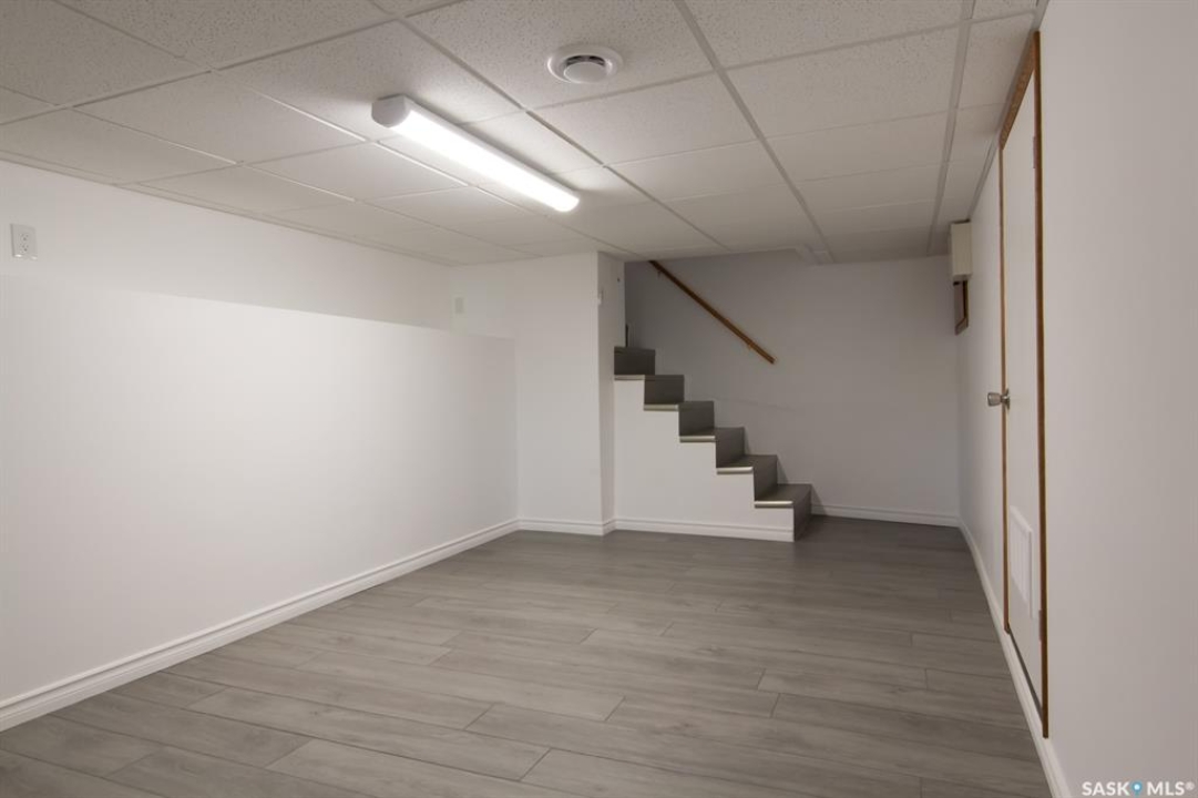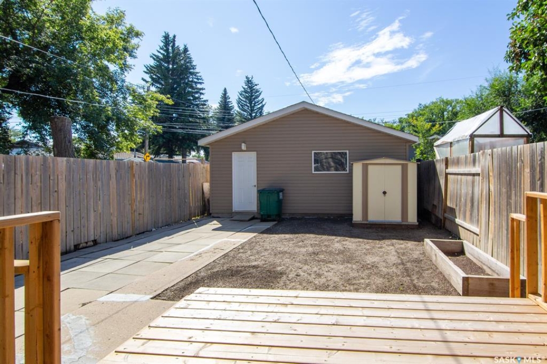 Welcome to 1419 Ave E North, a beautifully renovated 2-story home boasting 1,230 square feet of living space, complemented by 2 car detached garage. Ideally situated in the heart of Mayfair, this property is mere steps away from schools, parks and shopping hubs. The main floor features a living room, a closed-concept kitchen and spacious dining room overlooking the sun-drenched backyard, as well as one bedroom. The second floor reveals two generously sized bedrooms, while the newly developed basement offers the perfect space for family time. recent upgrades include newer main and side doors, a fully renovated basement, air conditioning, newer patio(2024) and an updated single garage converted to double garage. It's vacant, easy to show.