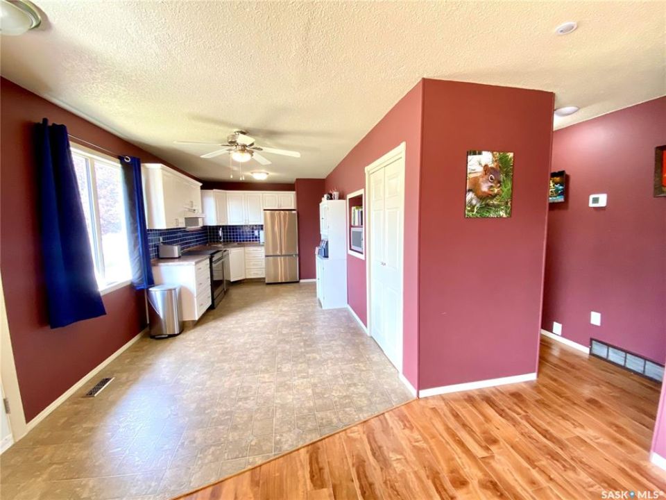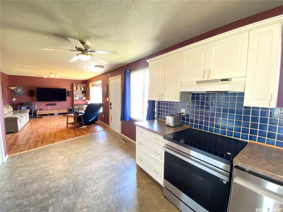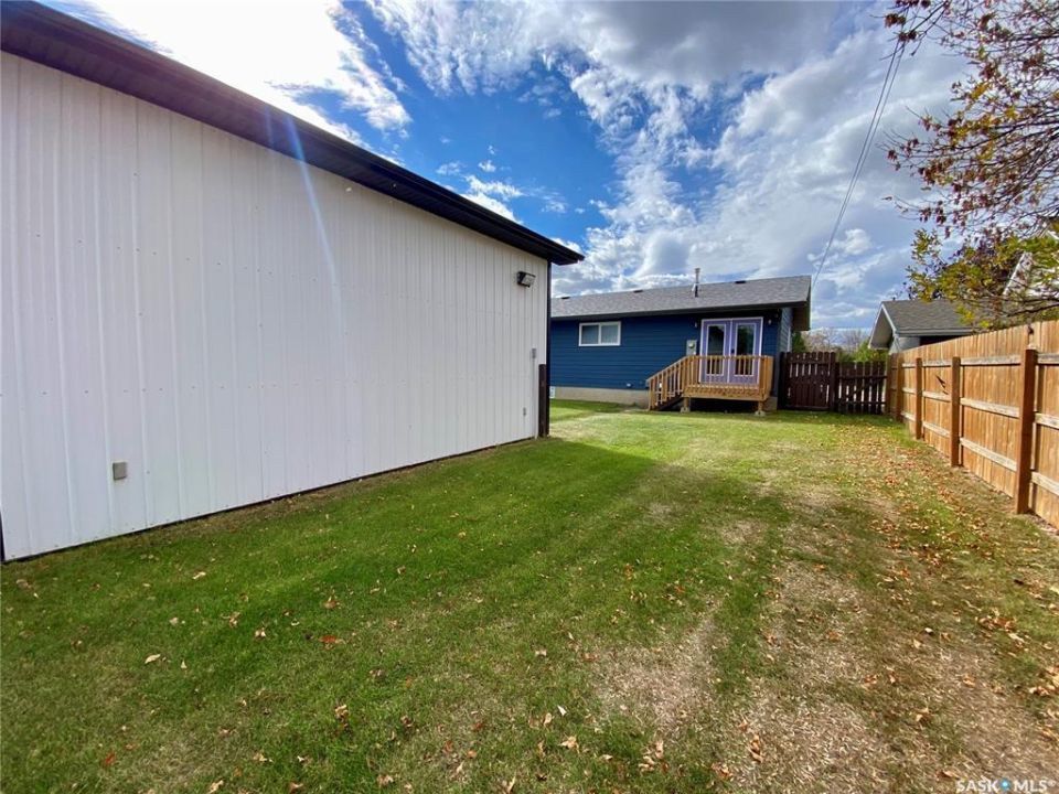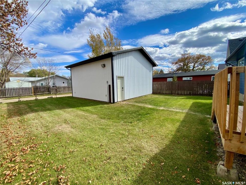 Step inside this 946 sq. ft. home that radiates personality, colour, and comfort in every corner. The open-concept kitchen and living room create a welcoming space filled with natural light, highlighted by a lovely bay window — perfect for your favorite plant babies. A former third bedroom on the main floor has been opened up to create a spacious dining area with patio doors leading to the backyard, but could easily be framed back into a bedroom if desired. Recent updates make this home move-in ready: new appliances, updated HVAC with new furnace, A/C, and air filtration system, hardy board siding, soffits, fascia, eaves, and some refreshed flooring. The vibrant paint tones throughout add warmth and personality. Downstairs, you'll find a cozy finished basement with a large rec room, third bedroom, and room to add another if you wish. The backyard is partially fenced and features a new deck built just last year — perfect for morning coffee or evening BBQs. And for the hobbyist or entrepreneur, the 24x24 heated shop is a dream come true — fully insulated, with 10' doors, 12' ceilings, its own power and gas heat, a floor drain, and plenty of light. Plus, an upgraded electrical panel, new wiring, and a modern security system (with cameras, recorders, gateway, and server rack) provide peace of mind and connectivity. Nestled in the friendly community of Bienfait, just minutes from Estevan, you'll love the small-town atmosphere, excellent K–12 school, local amenities, and the sense of pride and connection that comes from living in a place where neighbours still wave hello.