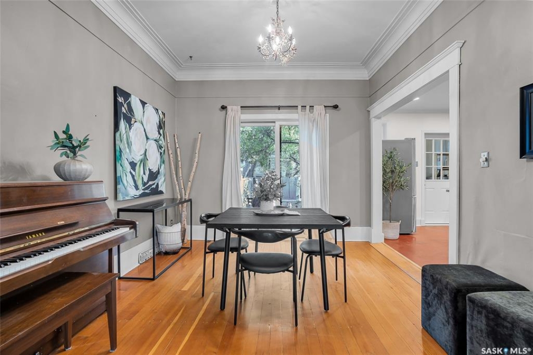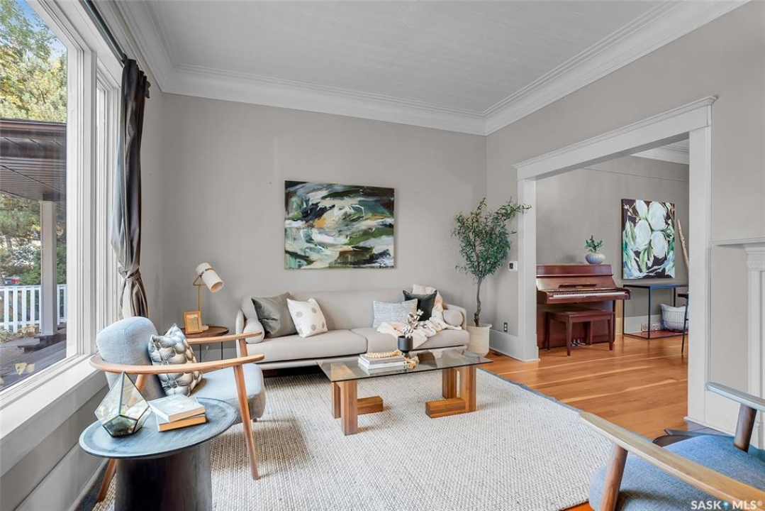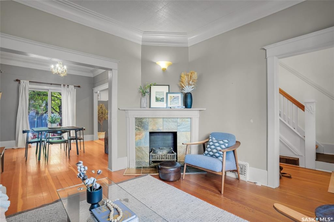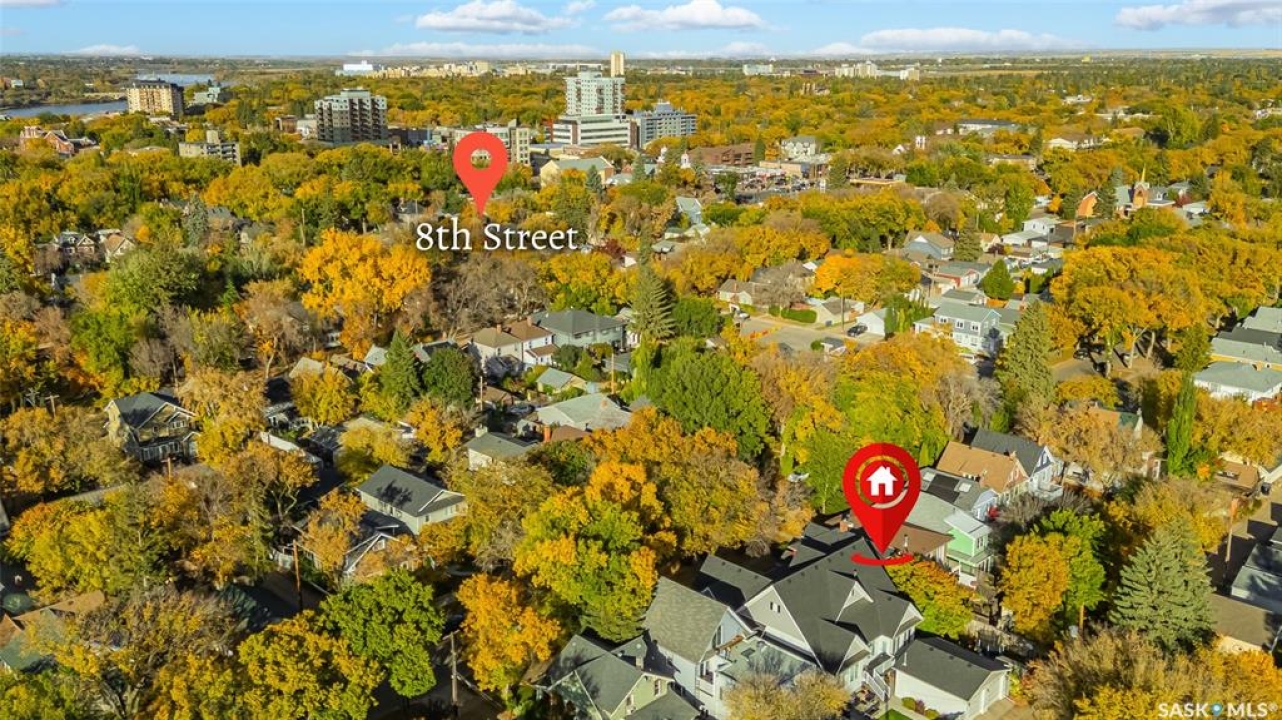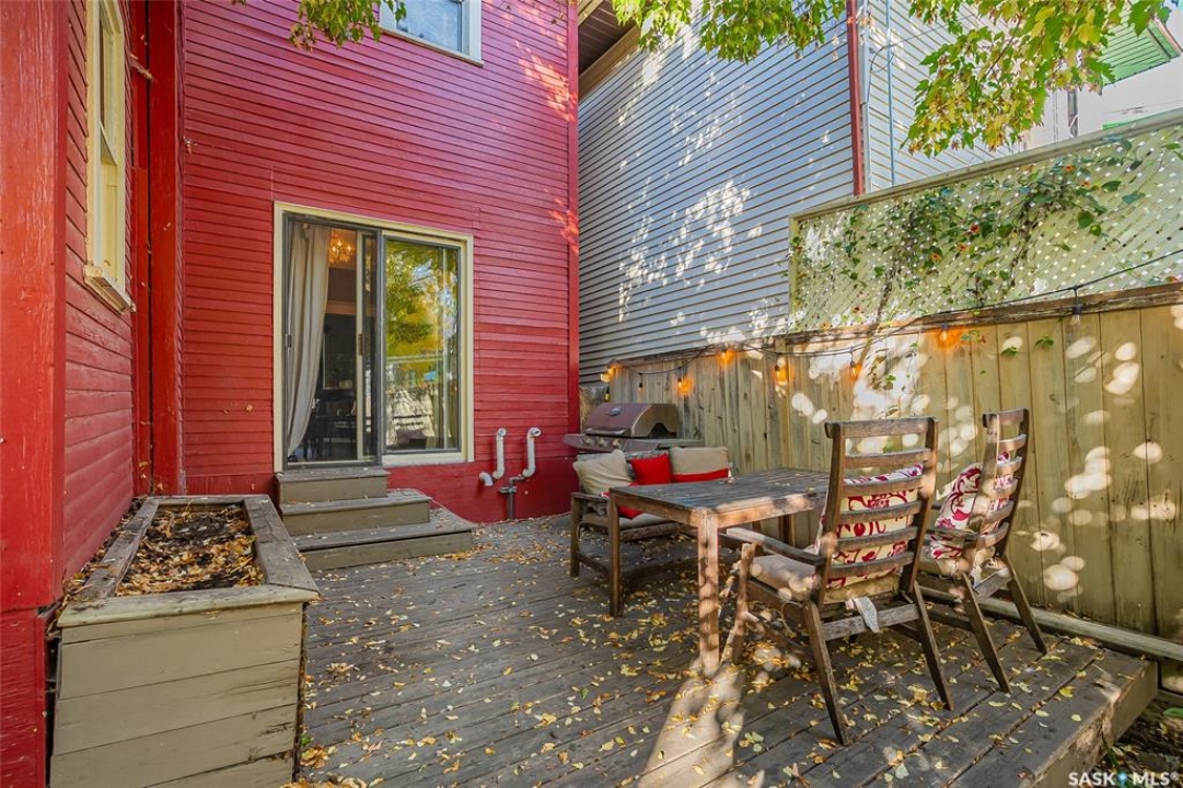 Welcome home to timeless charm in Buena Vista! Just a half block from Buena Vista Park, this century-old gem sits among mature trees and friendly neighbors, offering that perfect blend of history, comfort, and community. The sellers have cherished this home for its canopy of trees and unbeatable location within walking distance to the Broadway District and Downtown. The character is felt the moment you turn the corner onto this quiet, tree-lined street while its striking red exterior immediately draws you in. Inside, the welcoming porch sets the tone for what's to come — a home where time slows down and every detail tells a story. The charming entryway features a built-in bench and original staircase, setting off the warmth of the home. The living and dining rooms flow seamlessly together with high, detailed ceilings while the beautifully preserved hardwood floors reflect the artistry of a bygone era. The dining area opens onto a private back deck — perfect for gatherings — while the kitchen offers modern functionality with newer stainless-steel appliances with plenty of space to cook and create as well as direct access to the backyard. Upstairs, the primary bedroom provides not only two closets but also a unique bonus nook ideal for reading, a nursery, or creative space. Two additional bedrooms, each with their own character, and a full four-piece bathroom complete this level. Behind the charm lies peace of mind — with updated mechanical systems, newer roof, insulation and ventilation, as well all lead pipes have been replaced. Step into the established backyard and you'll discover a gardener's delight — bursting with perennials, Saskatoon berries, strawberries, and sour cherries — creating a private oasis to enjoy . This timeless Buena Vista home offers quick possession and the chance to settle in before the snow falls. It's more than a house — it's a piece of history, ready for its next chapter.