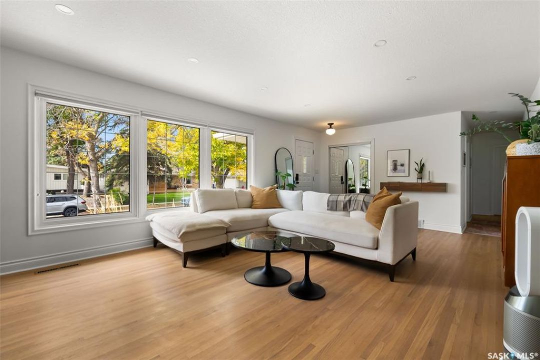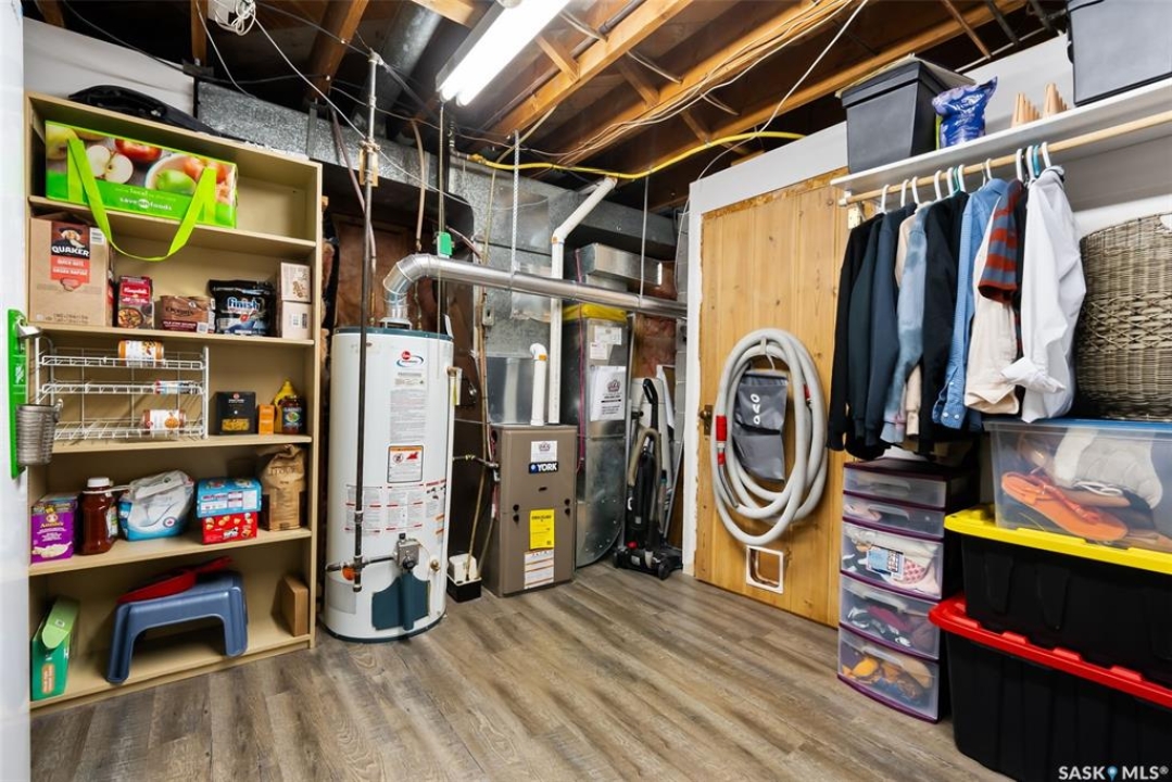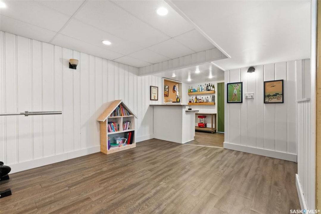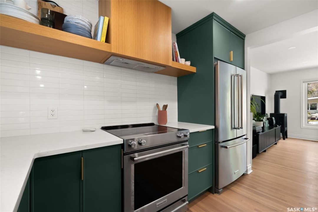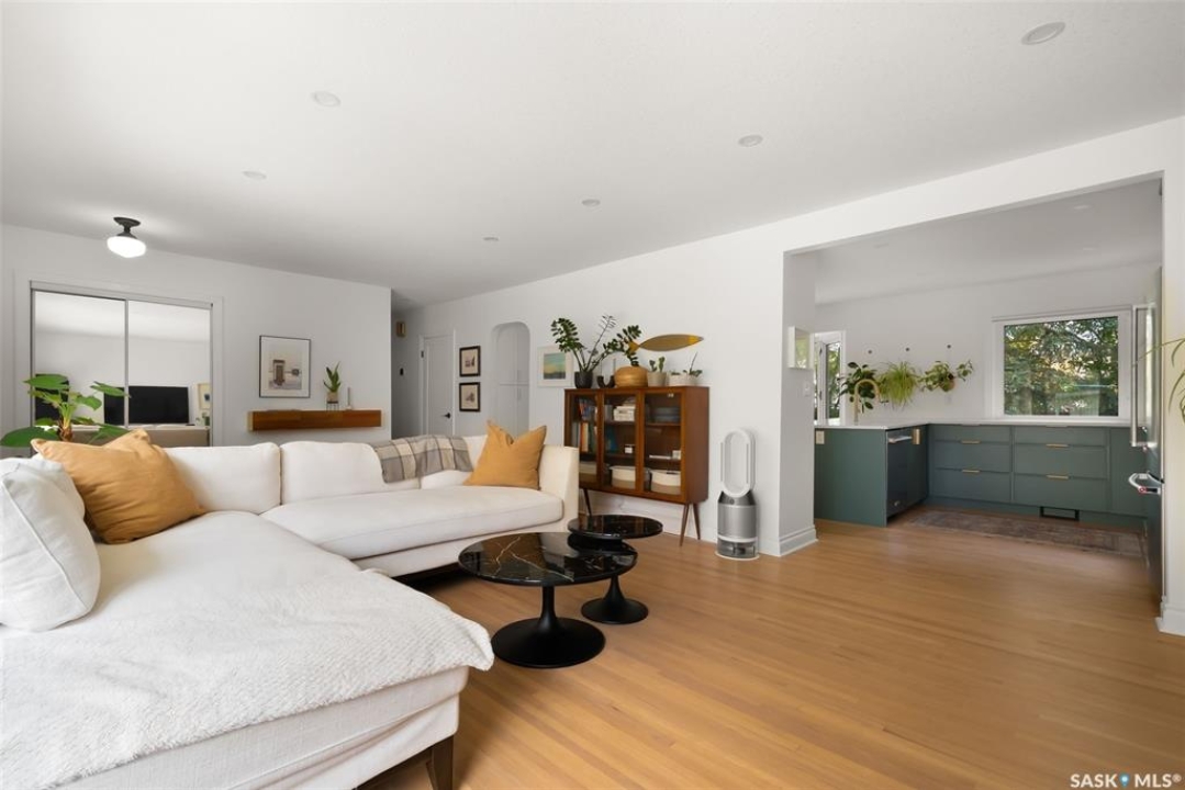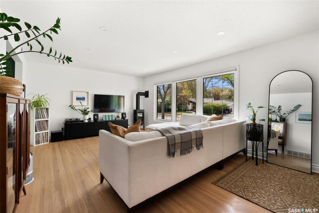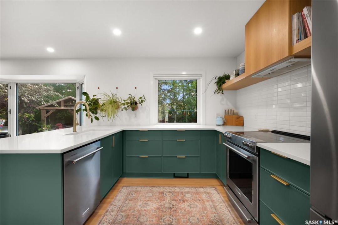 Welcome to this beautifully updated 1,196 sq ft bungalow tucked away on the highly desired Calder Crescent, just steps from schools, shopping, and all the conveniences Hillsdale has to offer. The main floor features three bedrooms and a stylishly renovated 4-piece bathroom. The heart of the home is the modern kitchen, designed with sophistication and function in mind—complete with quartz countertops, a sleek tile backsplash, smart built-in storage solutions, and an eat-up peninsula. The adjacent dining area is perfect for family meals or entertaining guests. A cozy living room with a unique gas fireplace complete this floor. Downstairs, the bright and inviting basement offers even more living space with another gas fireplace, wet bar, durable laminate flooring, a 3-piece bathroom, and a 4th bedroom with a custom built-in wardrobe—perfect for guests or teens. Step outside to your own backyard oasis. Mature trees frame a private setting featuring a custom gazebo and expansive deck, a built-in cook station with gas BBQ and quartz prep counter, along with a good size storage shed and underground sprinklers. The front yard is equally impressive, with lush perennial beds and underground irrigation for both the lawn and garden or enjoy the newly finished front patio offering Tyndall stone and cedar steps. Other updates to this home include: vinyl windows, newer shingles, newer high efficient furnace, radon mitigation system and 220 service electrical panel with plenty of room still future expansion. Complete with a single attached garage with more cabinets for storage, this home combines comfort, style, and functionality in one of Regina's most sought-after neighbourhoods. Don't miss your opportunity to own this stunning Hillsdale gem!