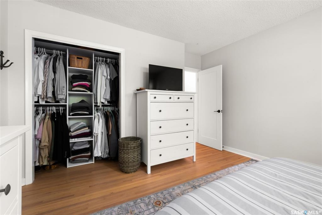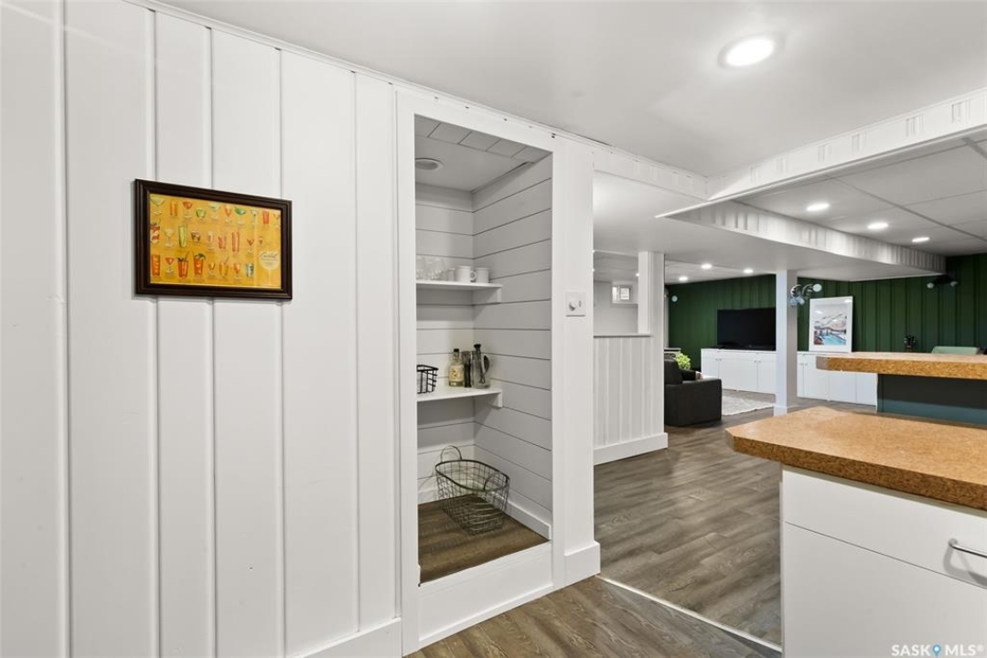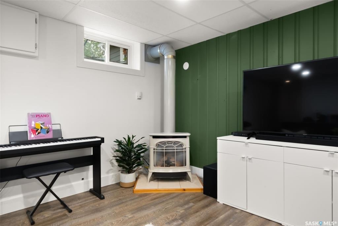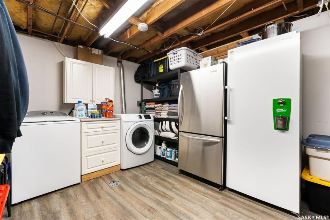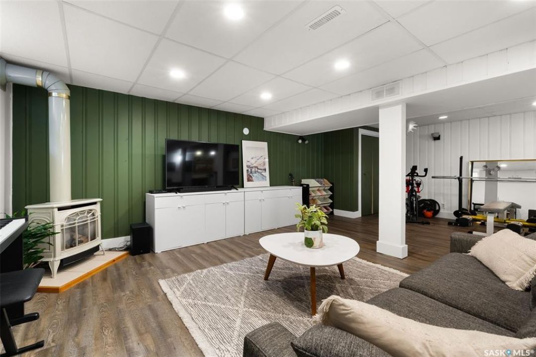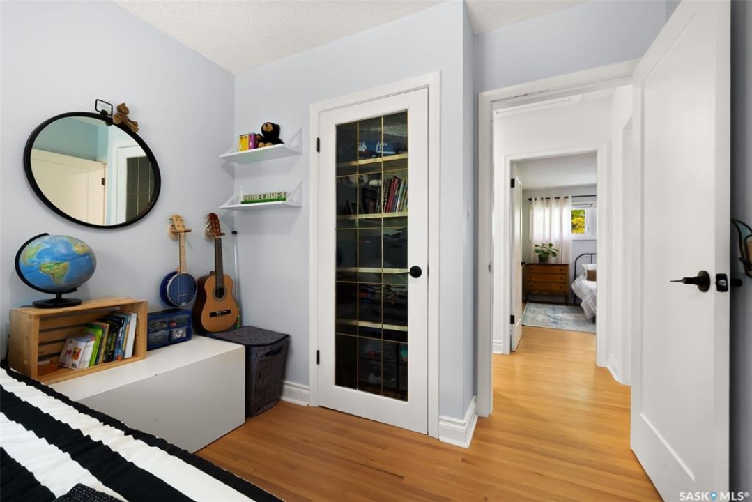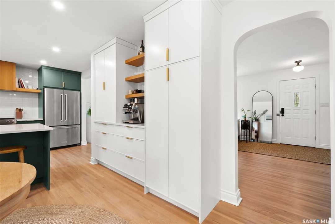 Welcome to this beautifully updated 1,196 sq ft bungalow tucked away on the highly desired Calder Crescent, just steps from schools, shopping, and all the conveniences Hillsdale has to offer. The main floor features three bedrooms and a stylishly renovated 4-piece bathroom. The heart of the home is the modern kitchen, designed with sophistication and function in mind—complete with quartz countertops, a sleek tile backsplash, smart built-in storage solutions, and an eat-up peninsula. The adjacent dining area is perfect for family meals or entertaining guests. A cozy living room with a unique gas fireplace complete this floor. Downstairs, the bright and inviting basement offers even more living space with another gas fireplace, wet bar, durable laminate flooring, a 3-piece bathroom, and a 4th bedroom with a custom built-in wardrobe—perfect for guests or teens. Step outside to your own backyard oasis. Mature trees frame a private setting featuring a custom gazebo and expansive deck, a built-in cook station with gas BBQ and quartz prep counter, along with a good size storage shed and underground sprinklers. The front yard is equally impressive, with lush perennial beds and underground irrigation for both the lawn and garden or enjoy the newly finished front patio offering Tyndall stone and cedar steps. Other updates to this home include: vinyl windows, newer shingles, newer high efficient furnace, radon mitigation system and 220 service electrical panel with plenty of room still future expansion. Complete with a single attached garage with more cabinets for storage, this home combines comfort, style, and functionality in one of Regina's most sought-after neighbourhoods. Don't miss your opportunity to own this stunning Hillsdale gem!