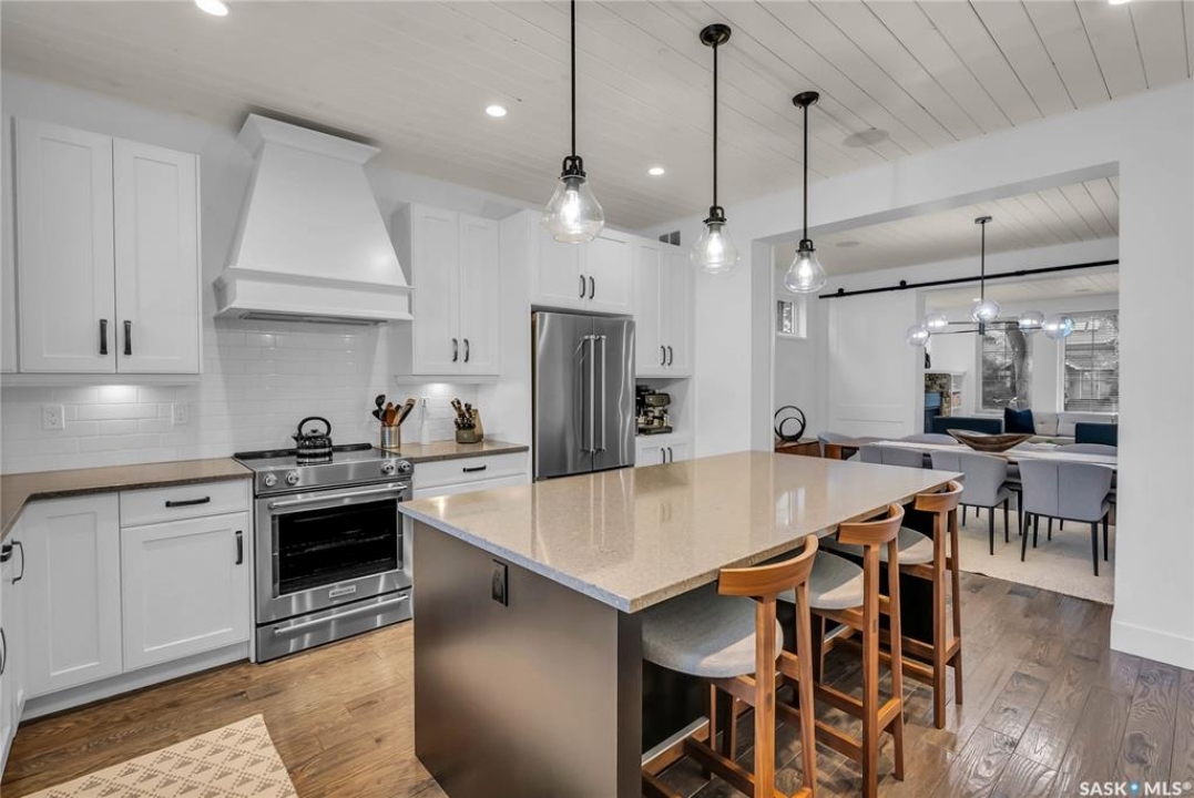 Located in Nutana, this beautifully designed 2 � storey home is just steps from the Meewasin Valley, Broadway Avenue, and the University of Saskatchewan. With 4 spacious bedrooms and 4 luxurious bathrooms, this home is designed for family living with the luxury finishes you love. The sun-filled kitchen, custom 8-foot barn doors, and open-concept living areas create an inviting space for both everyday living and entertaining. A flexible top-floor family room and fully developed basement with custom cabinetry offer flexible spaces for relaxation and entertainment. The attention to detail doesn't end there - the the professionally landscaped backyard adds the finishing touch to this exceptional home.