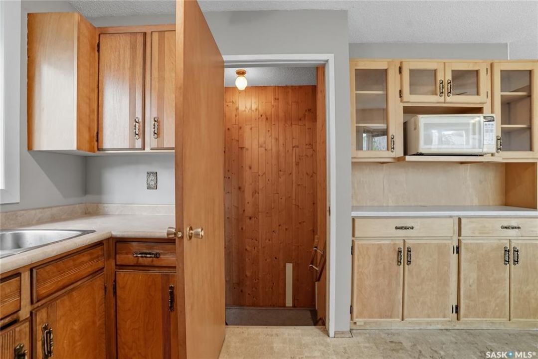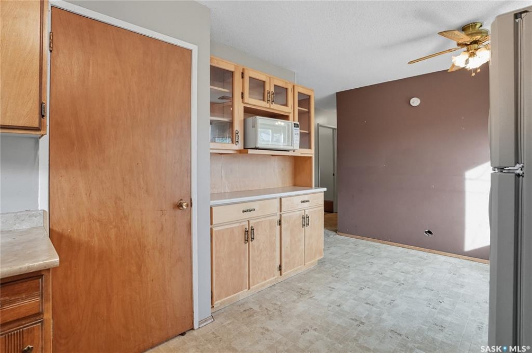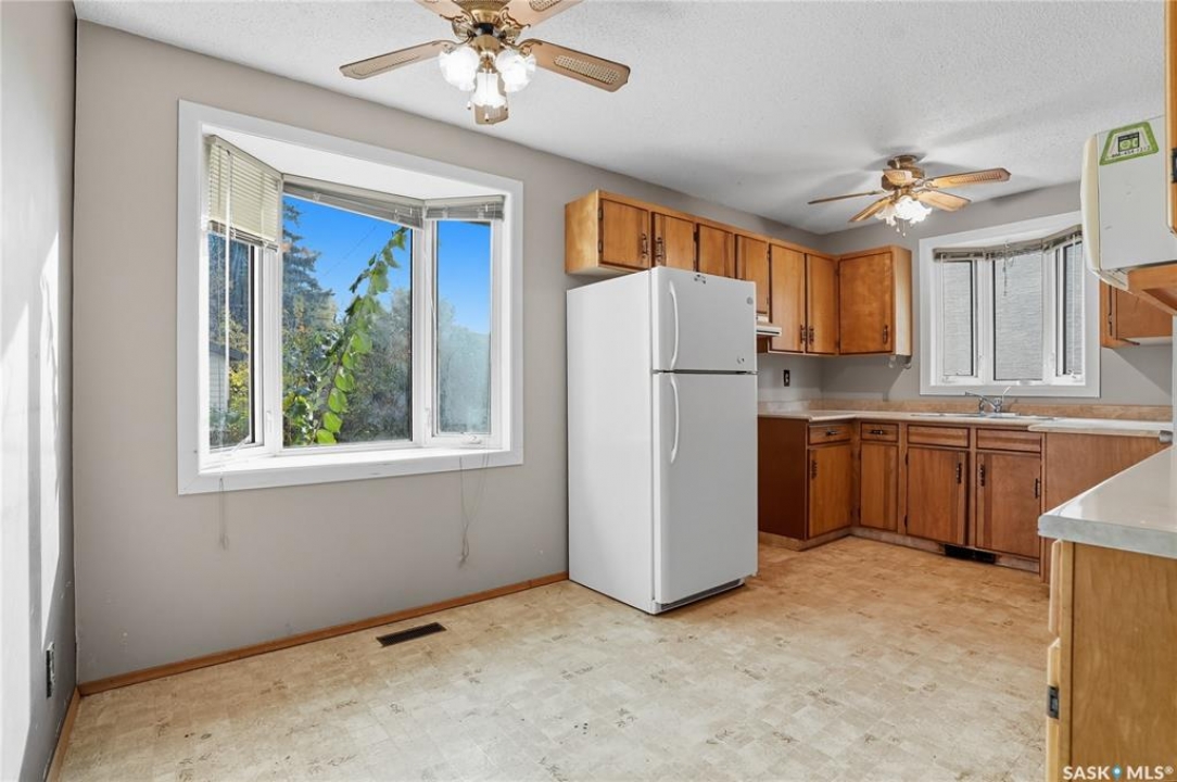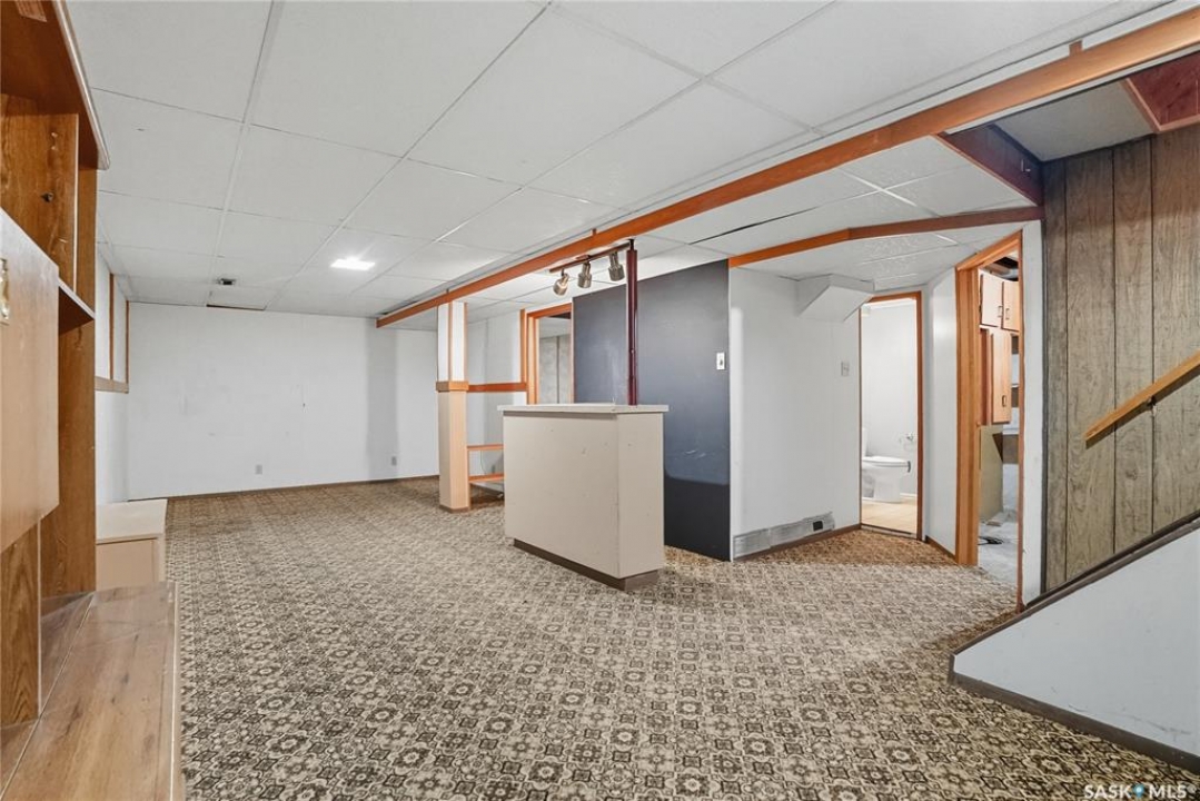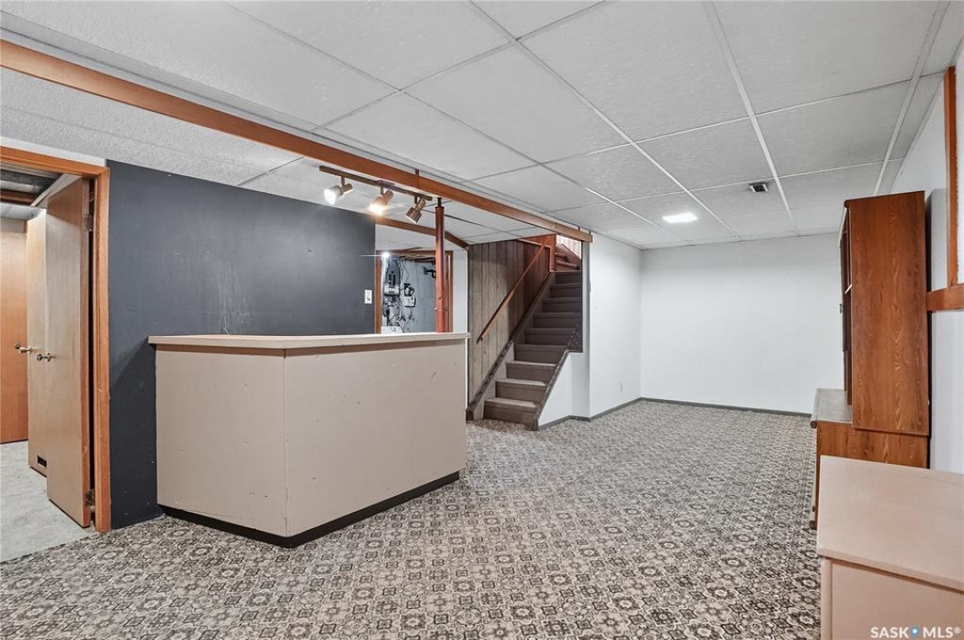 Attention renovators, investors or anyone looking to create their dream home in a prime location! Situated on a 50' x 114' ft lot, this property boasts an oversized double detached garage. Step inside to a spacious living room that flows into the dining area and kitchen. Down the hall, you'll find a 4-piece bathroom and three bedrooms. The basement offers additional living space with a built-in bar area, another bedroom, and a 2-piece bathroom. A large utility and storage area complete with laundry provides plenty of functionality. Equipped with a separate side entrance, this home offers endless potential to create value in the highly sought-after neighborhood of Haultain.