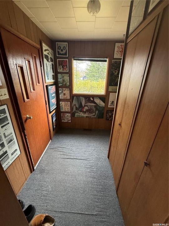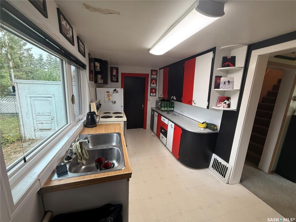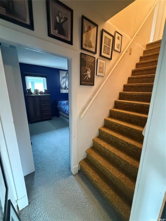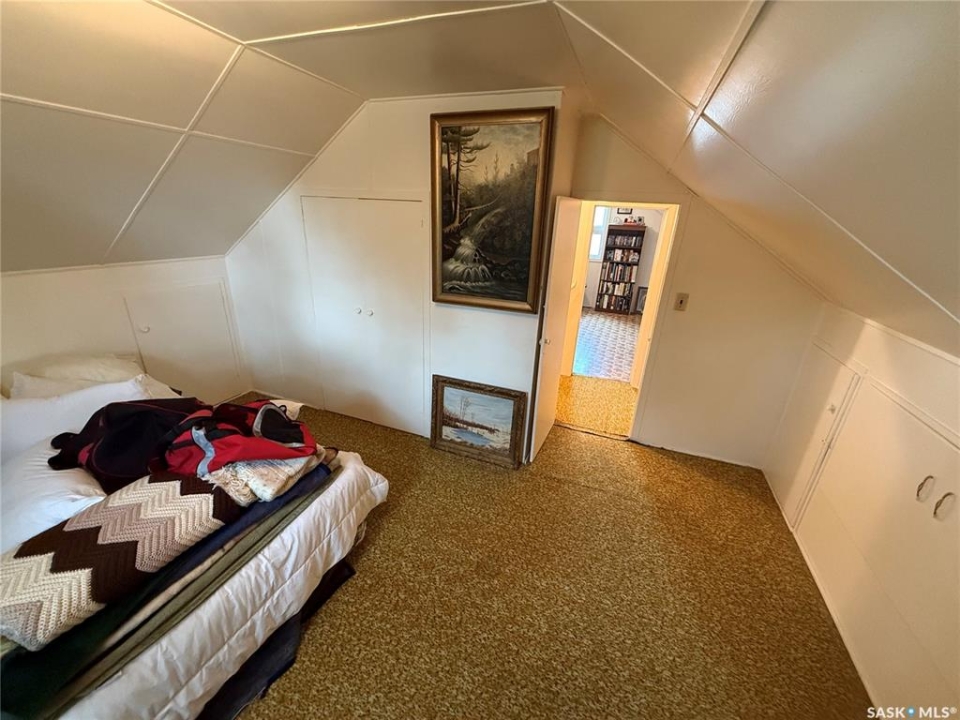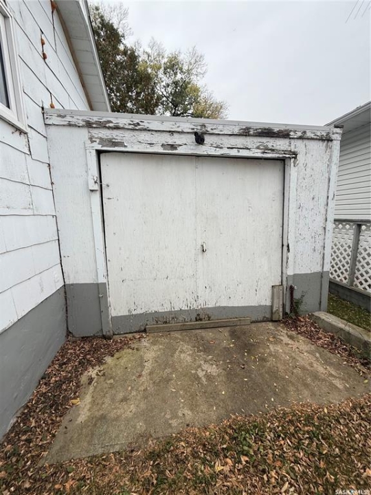 Charming 4 bedroom home that won't break the bank! This character home offers a large foyer, 2 main floor bedrooms, spacious living room with patio doors that face east. It has a galley style kitchen and dining room with a large window that looks out to the backyard. Just off the kitchen is the main floor 4 piece bathroom/laundry. Upstairs offers 2 spacious bedrooms with tons of storage areas. The basement is concrete and has a room perfect for storing your seasonal items. The outside yard is very private with a mature shelter belt and a attached garage. The garage has a concrete floor. You won't find a more affordable 4 bedroom home on the market!
