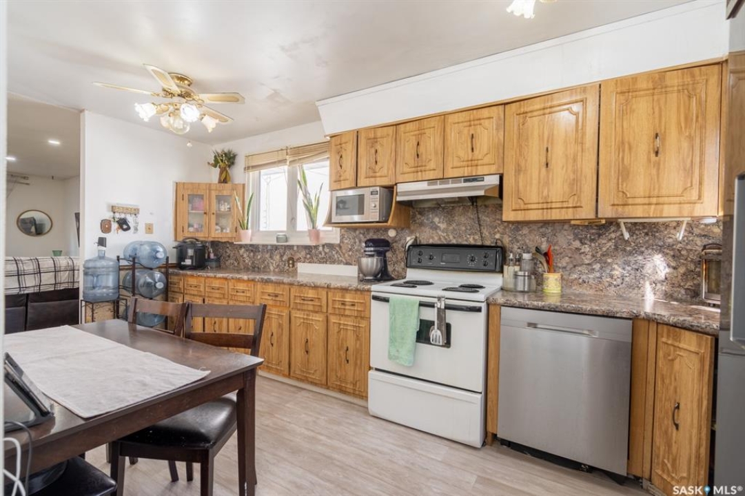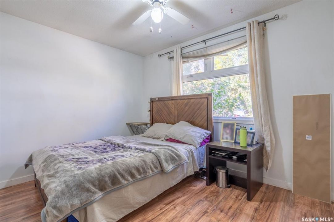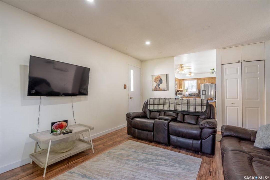 Welcome to this well-maintained 4-bedroom, 2-bathroom bungalow located on a quiet street in Regina's desirable east end – Glencairn. This home offers a great blend of comfort, updates, and functionality. Step inside to a bright, west-facing living room that fills with natural light. The spacious kitchen offers ample cabinetry, perfect for family meals and entertaining. Three well-sized bedrooms and a refreshed 4-piece bathroom complete the main floor, which also features updated laminate flooring throughout most of the level. The solid and inviting basement includes a large rec room, a fourth bedroom, a 3-piece bathroom, and a dedicated furnace/storage area. New carpet adds comfort and warmth to the lower level. Recent updates include: Laminate flooring on most of the main floor Renovated main floor bathroom New carpet in the basement Updated windows throughout A new back deck The fully fenced yard is perfect for kids, pets, or summer gatherings, and includes a double detached garage with convenient access from the rear alley. Situated just minutes from East End amenities and with quick access to Ring Road, this home is ideal for families or anyone seeking a move-in-ready property in a well-established neighbourhood. Contact the listing agent today for more information or to schedule your private viewing!