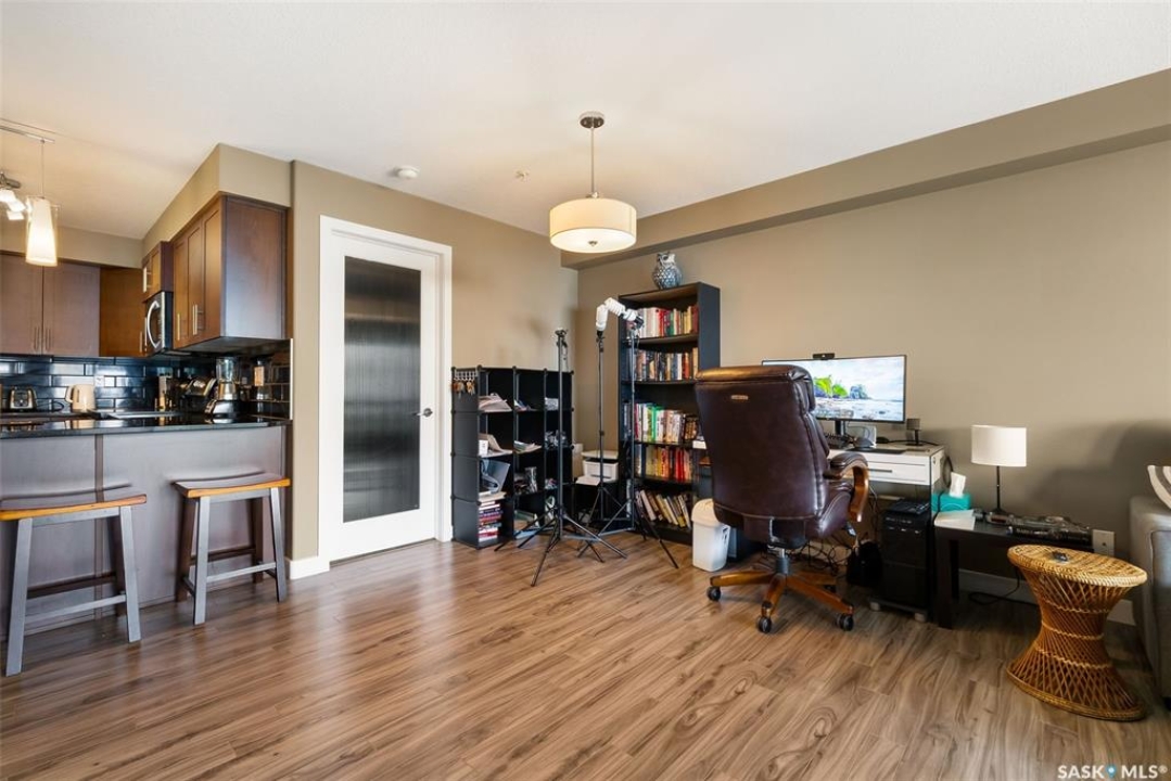 This modern 829 sq. ft. condo in Windsor Park offers a bright, open layout and stylish finishes in a well-managed low-rise building. Perfect for first-time buyers, downsizers, or investors, this home blends comfort and convenience with a prime east-end location. The spacious living room features large windows and direct access to a private balcony, filling the suite with natural light. The kitchen is thoughtfully designed with granite countertops, tile backsplash, stainless steel appliances, rich cabinetry, and a centre island with seating—ideal for entertaining or casual meals. The open dining area flows seamlessly from the kitchen, making the space warm and inviting. This unit includes a primary bedroom with generous closet space, a versatile den that works as a home office or guest room, and a full 4-piece bathroom. In-suite laundry with upgraded washer and dryer adds extra convenience. Other highlights include laminate flooring in the main living areas, carpet in the bedrooms, and central air conditioning. The unit comes with one underground parking stall and access to building amenities such as an elevator, secure entry, and guest parking. Condo fees cover water, heat, common area maintenance, exterior upkeep, reserve fund, snow removal, lawn care, and building insurance—providing peace of mind and low-maintenance living. Located close to parks, shopping, restaurants, schools, and all east-end amenities, this home delivers both lifestyle and location.